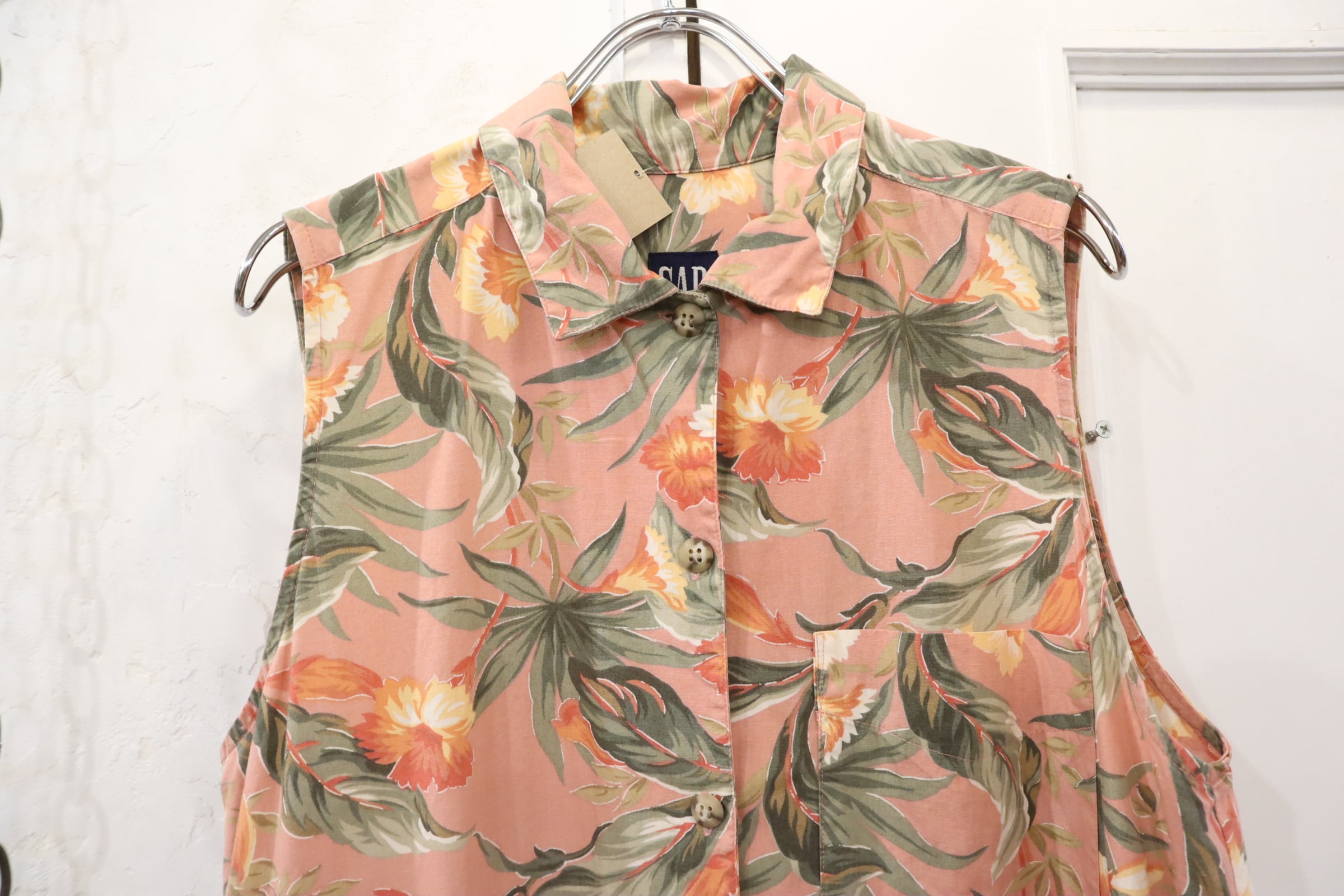 old GAP pink×green×orange flower pattern sleeveless dress [l-4029]