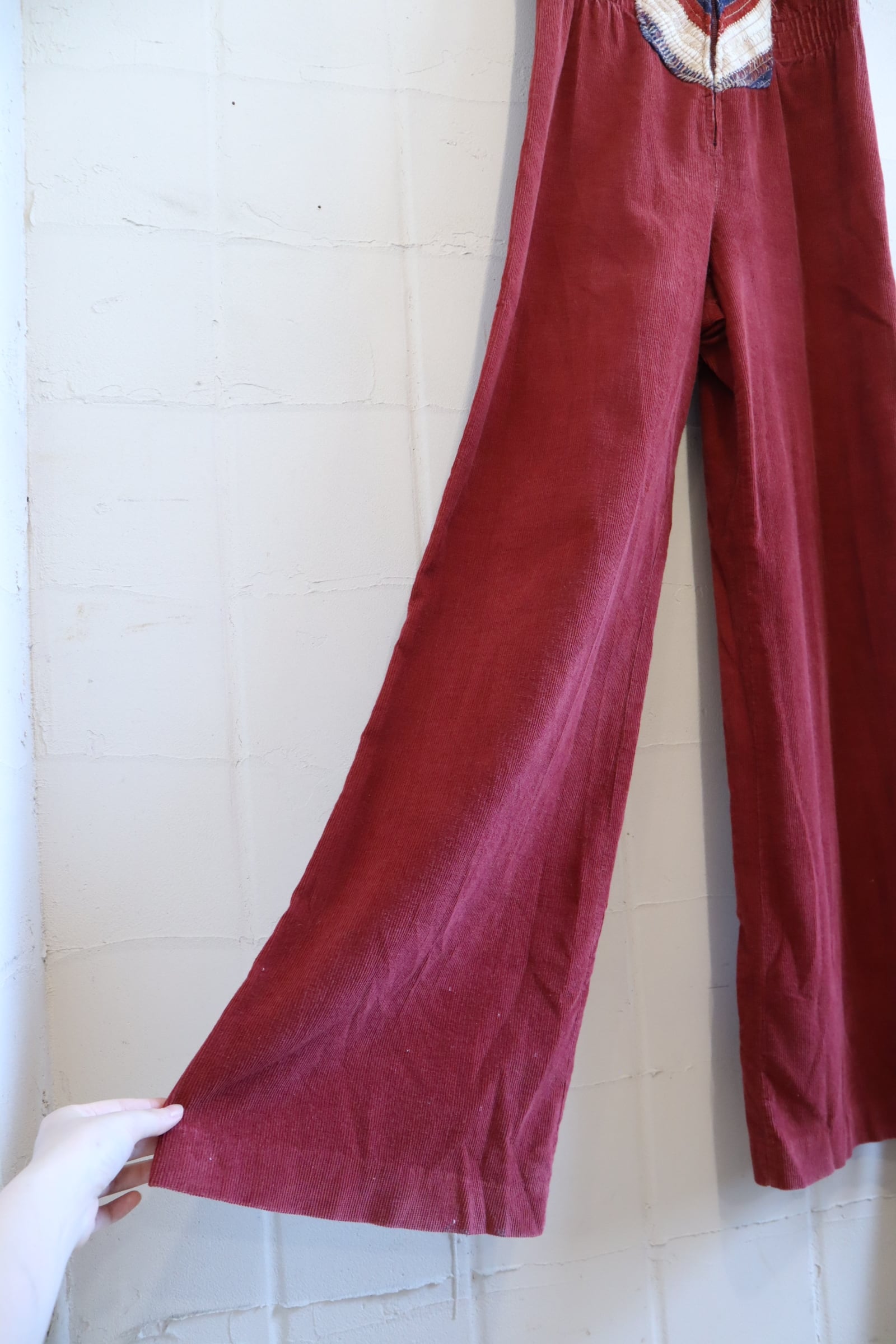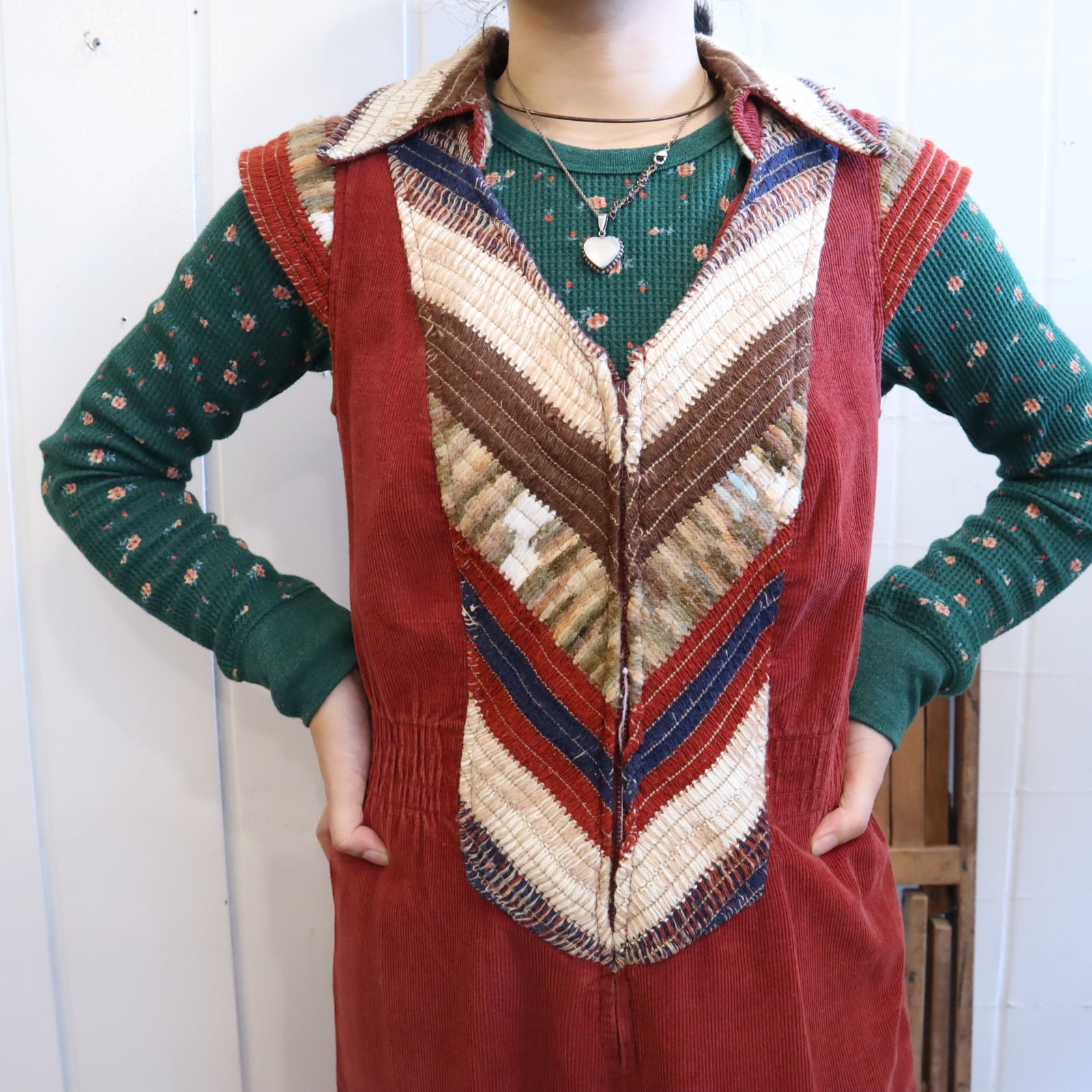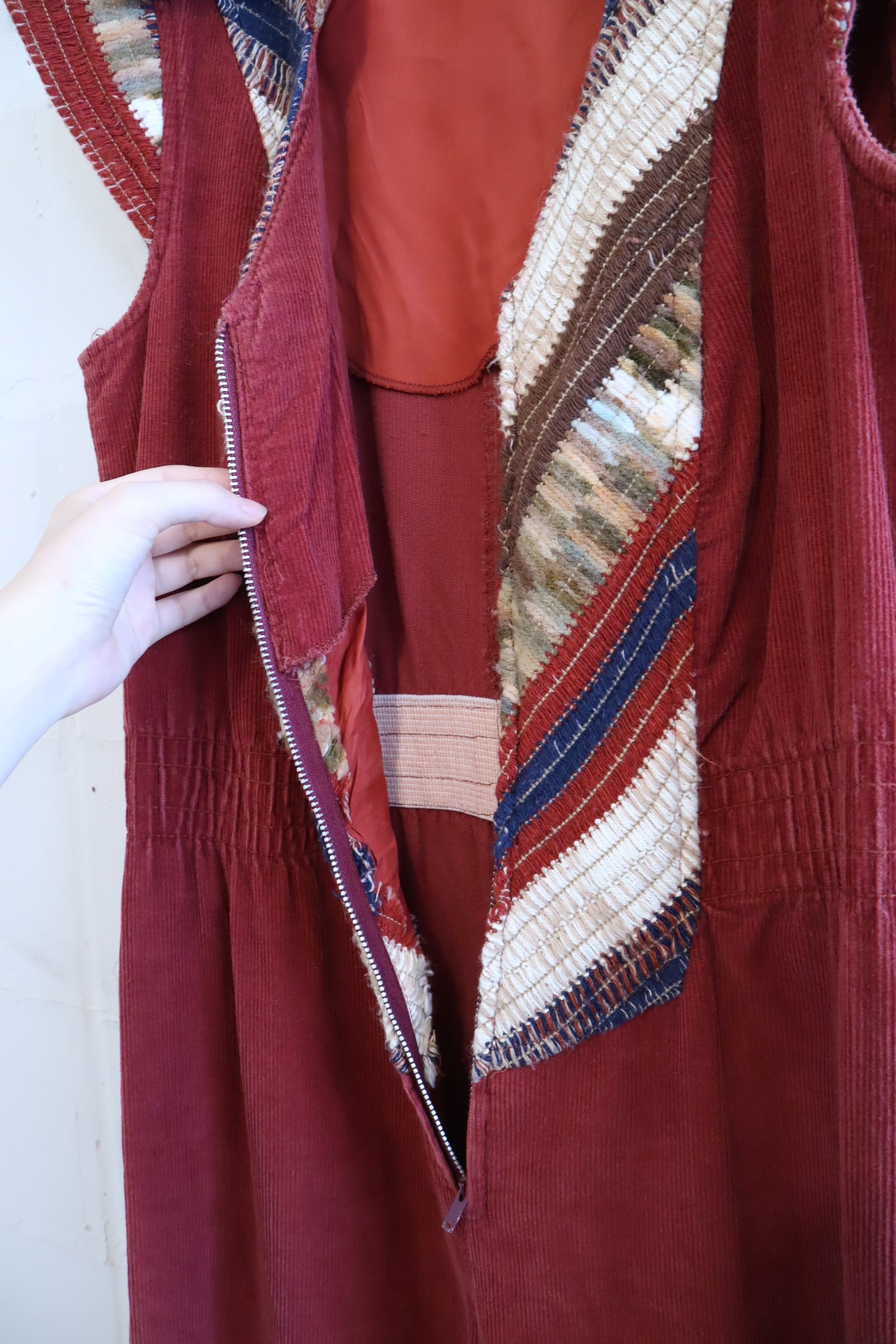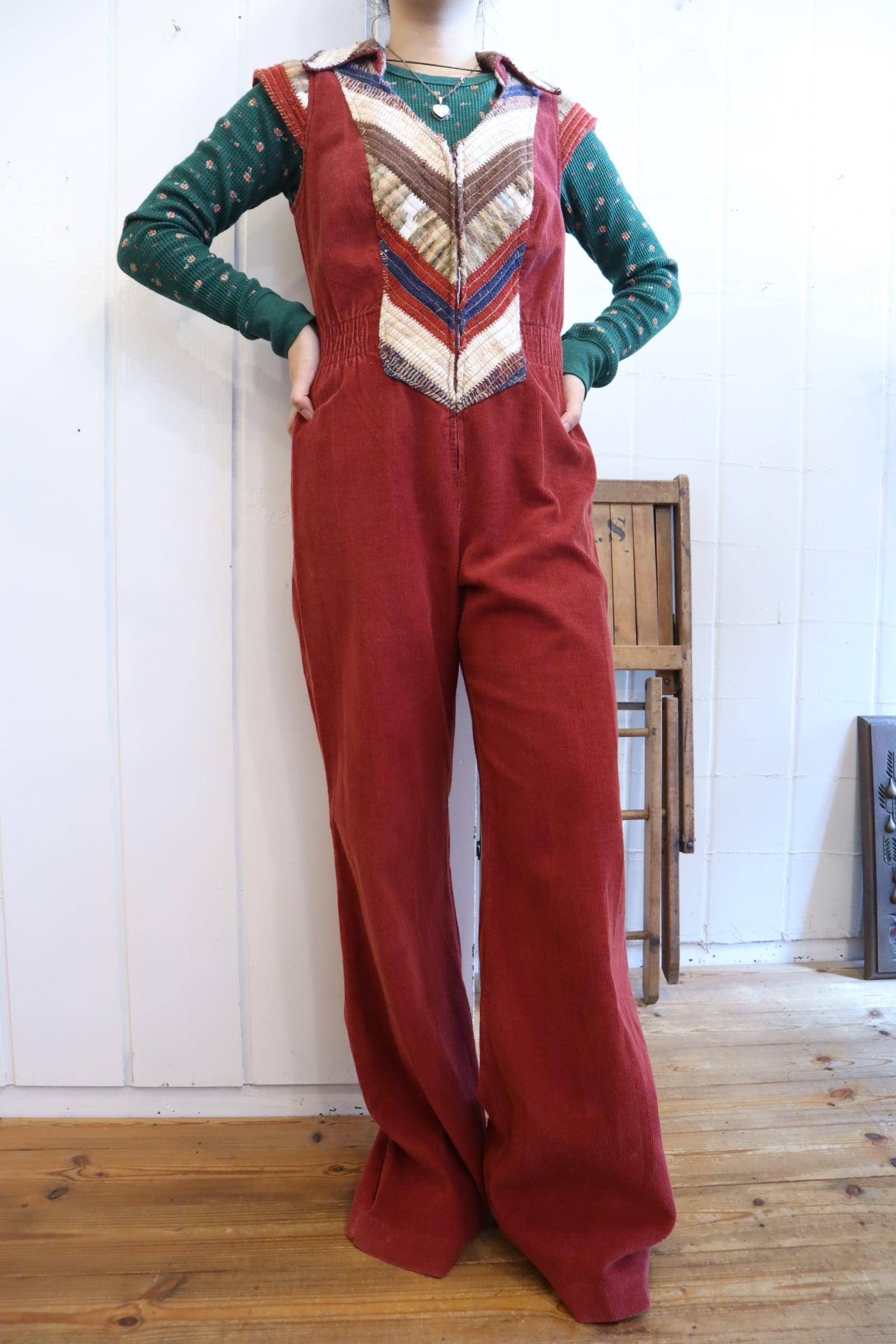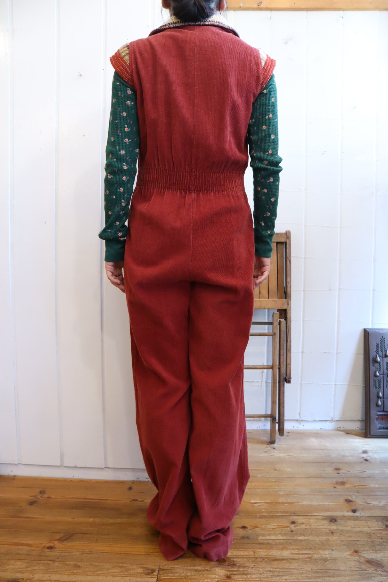 えんじ色のコーデュロイ生地がとっても可愛い70sオールインワン。