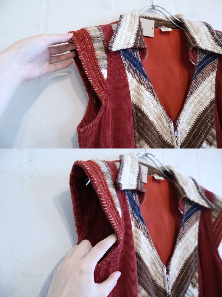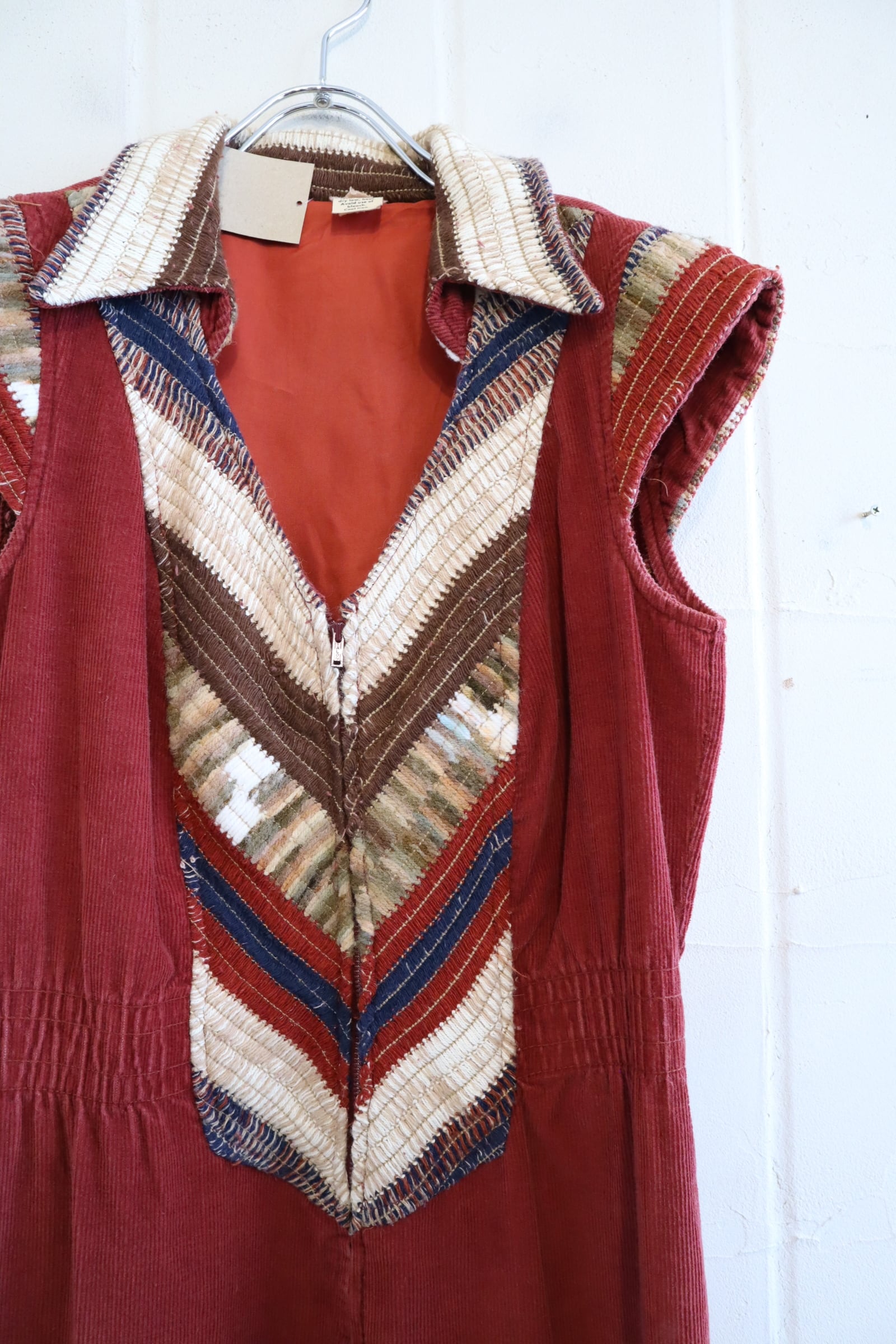 70s darkred×brown corduroy half zip all-in-one [l-4032]