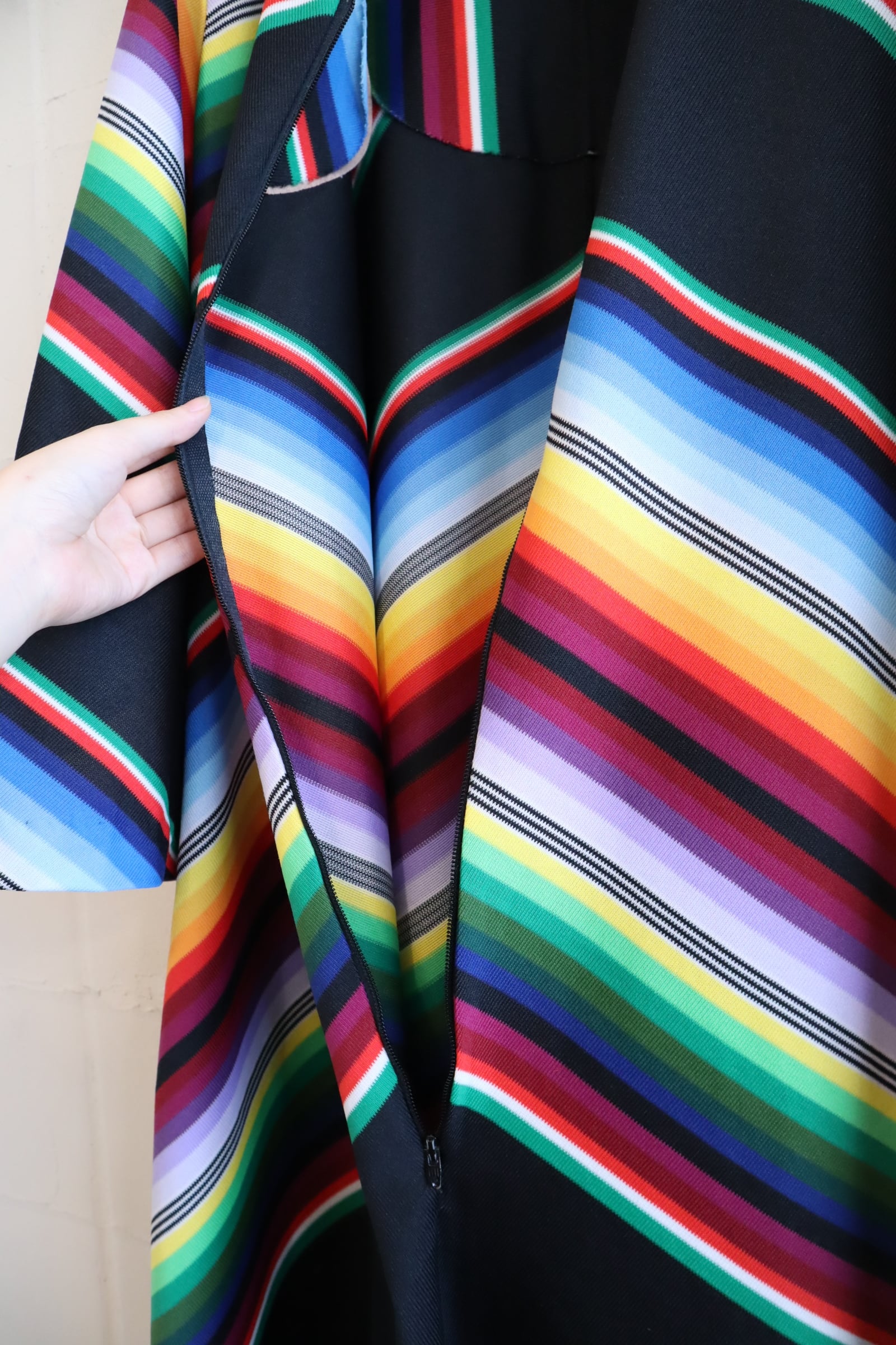 70s black×rainbow bordar harf zip dress [l-4033]