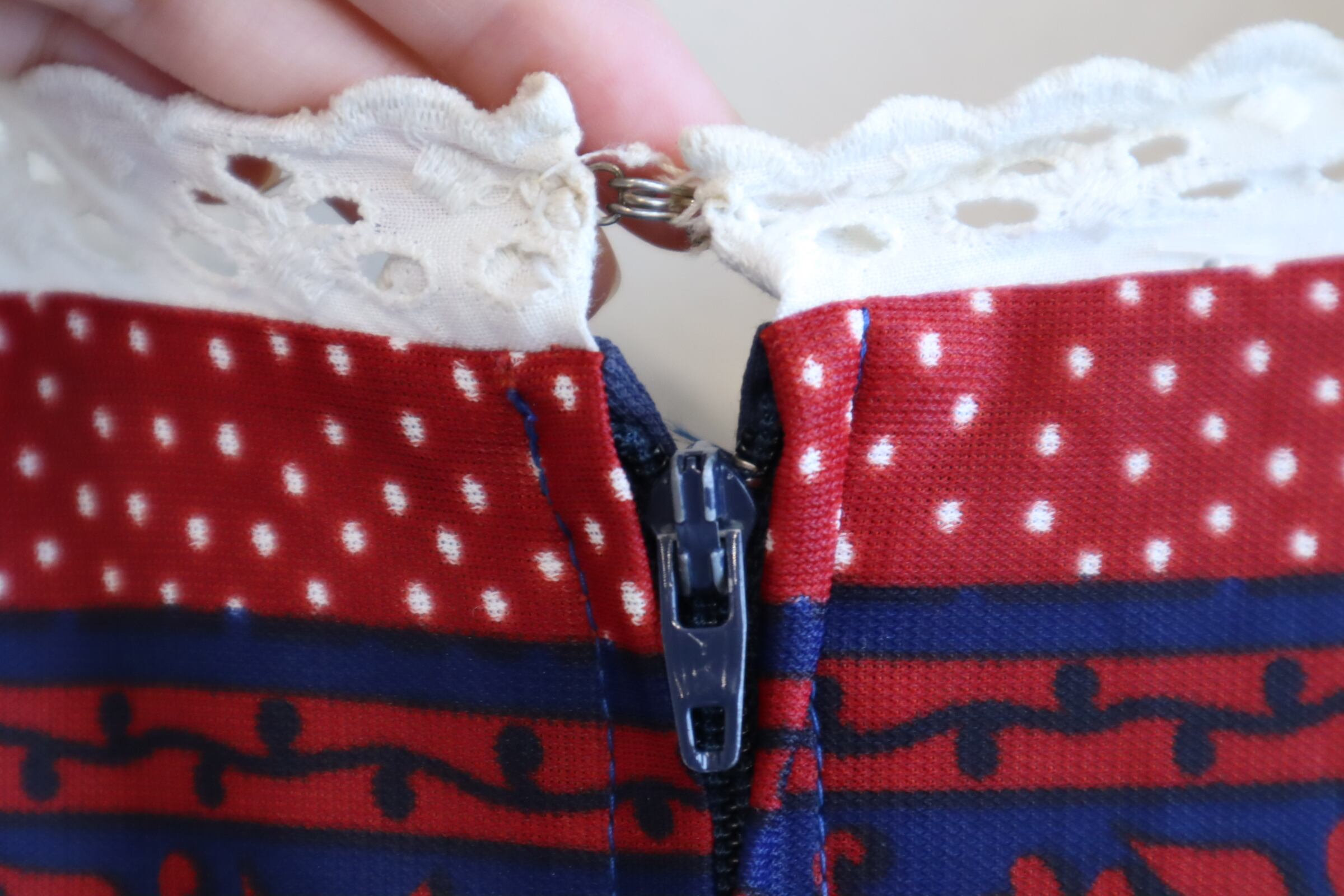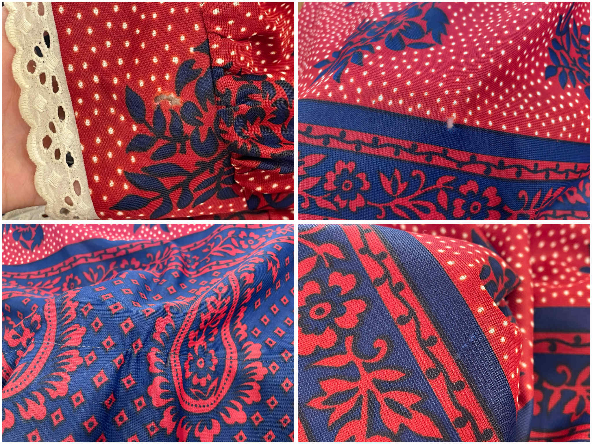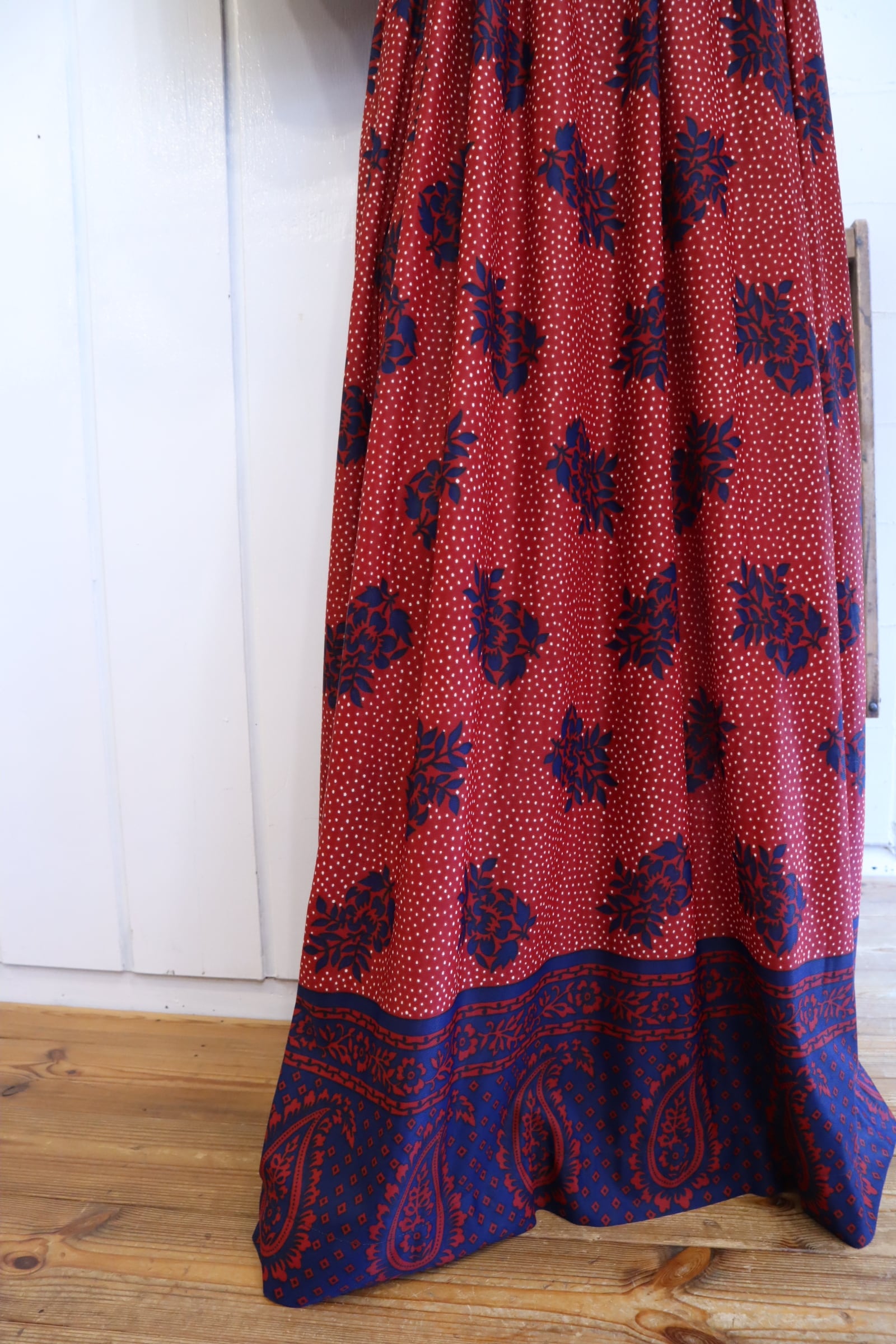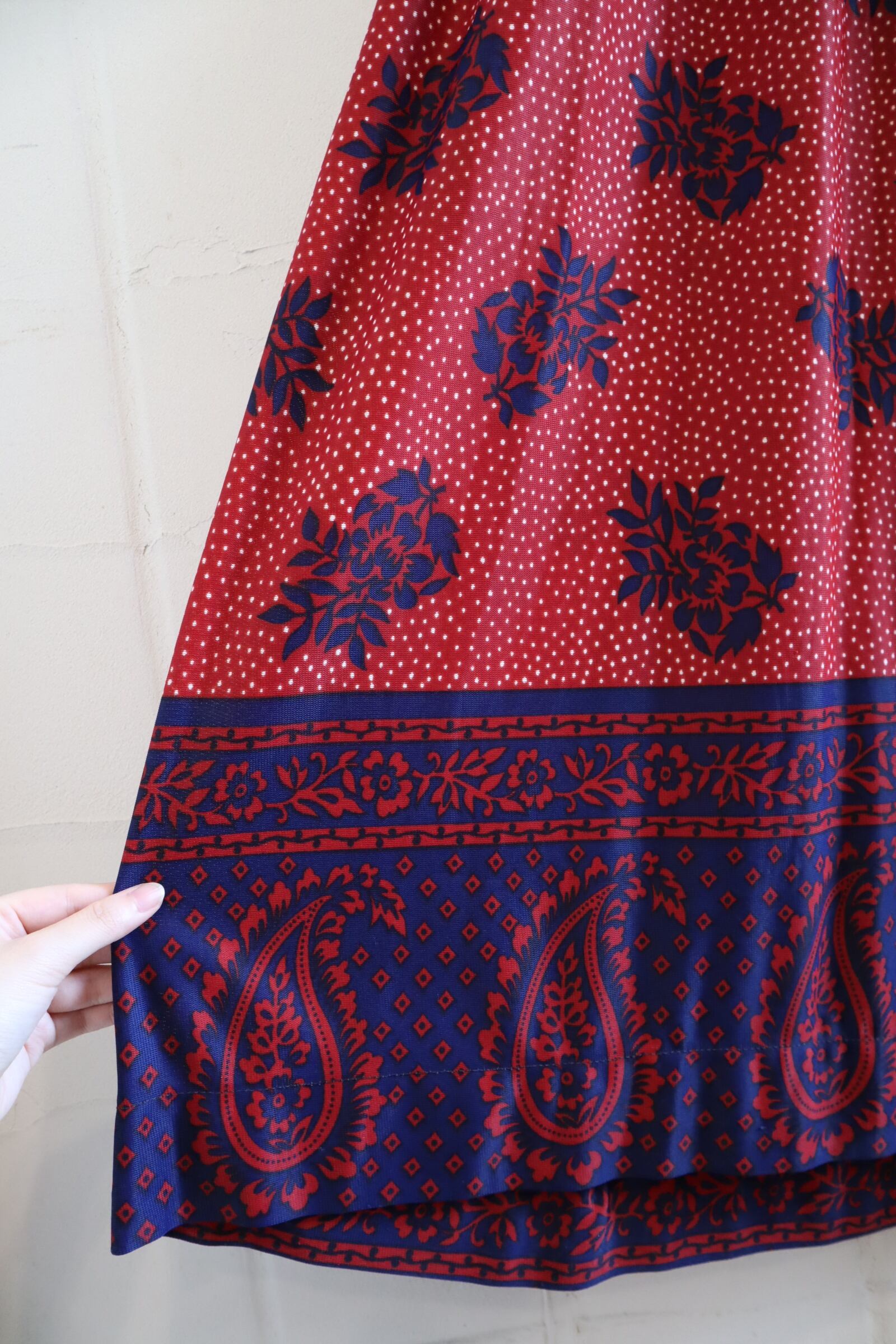 少しいびつなドットにお花とペイズリー柄がとっても可愛いです。