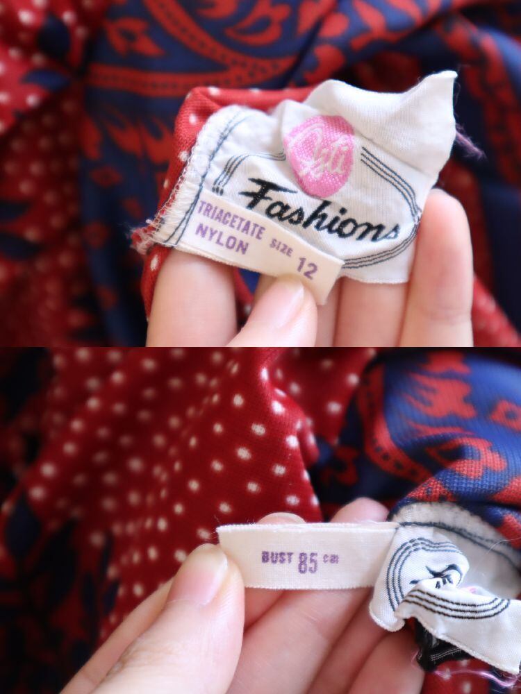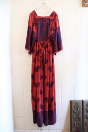 70s darkred×navy wide sleeve dress [l-4036]