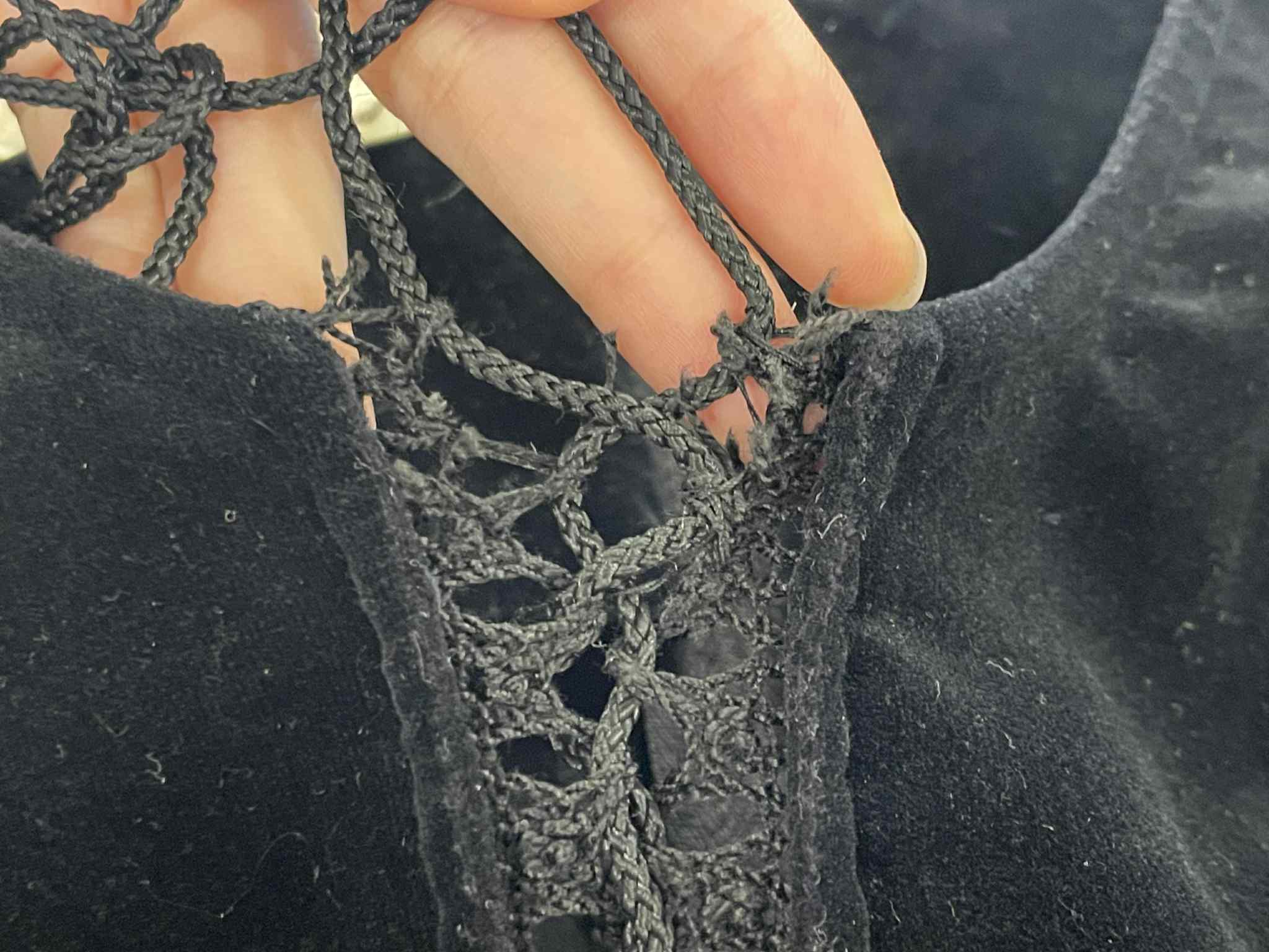 レースアップ部分のかぎ編みに若干ホツレが見受けられますが、解ける心配はないかと思います。