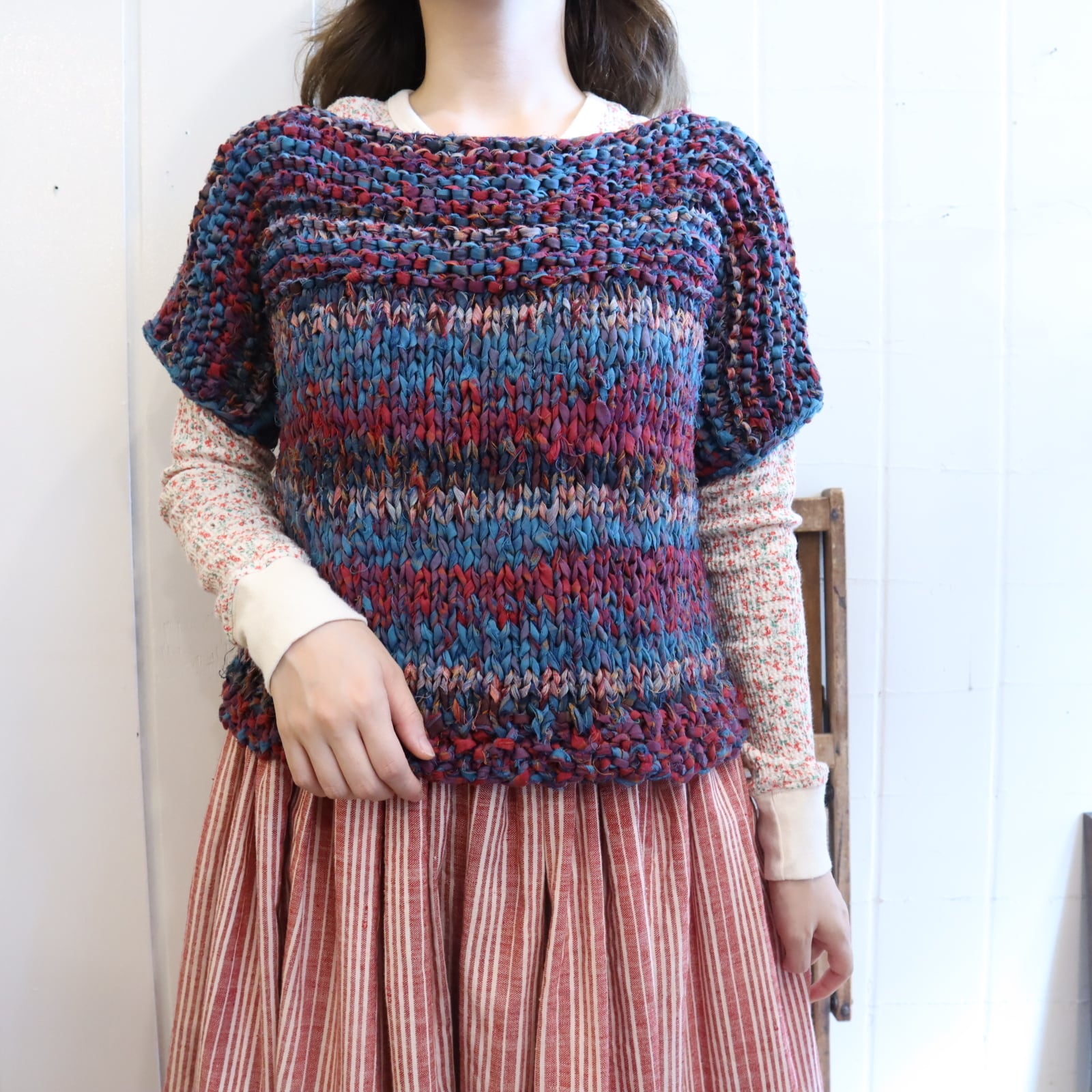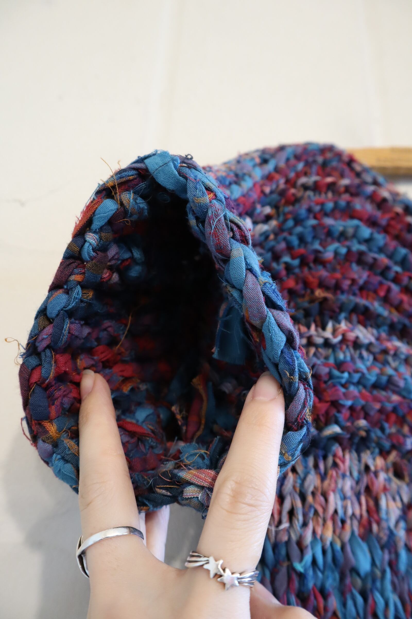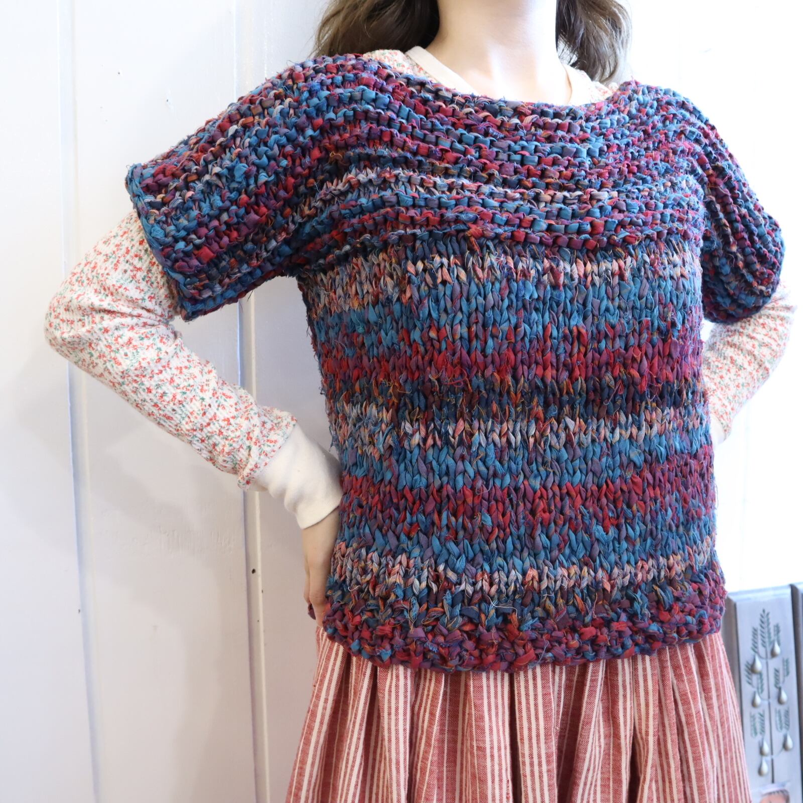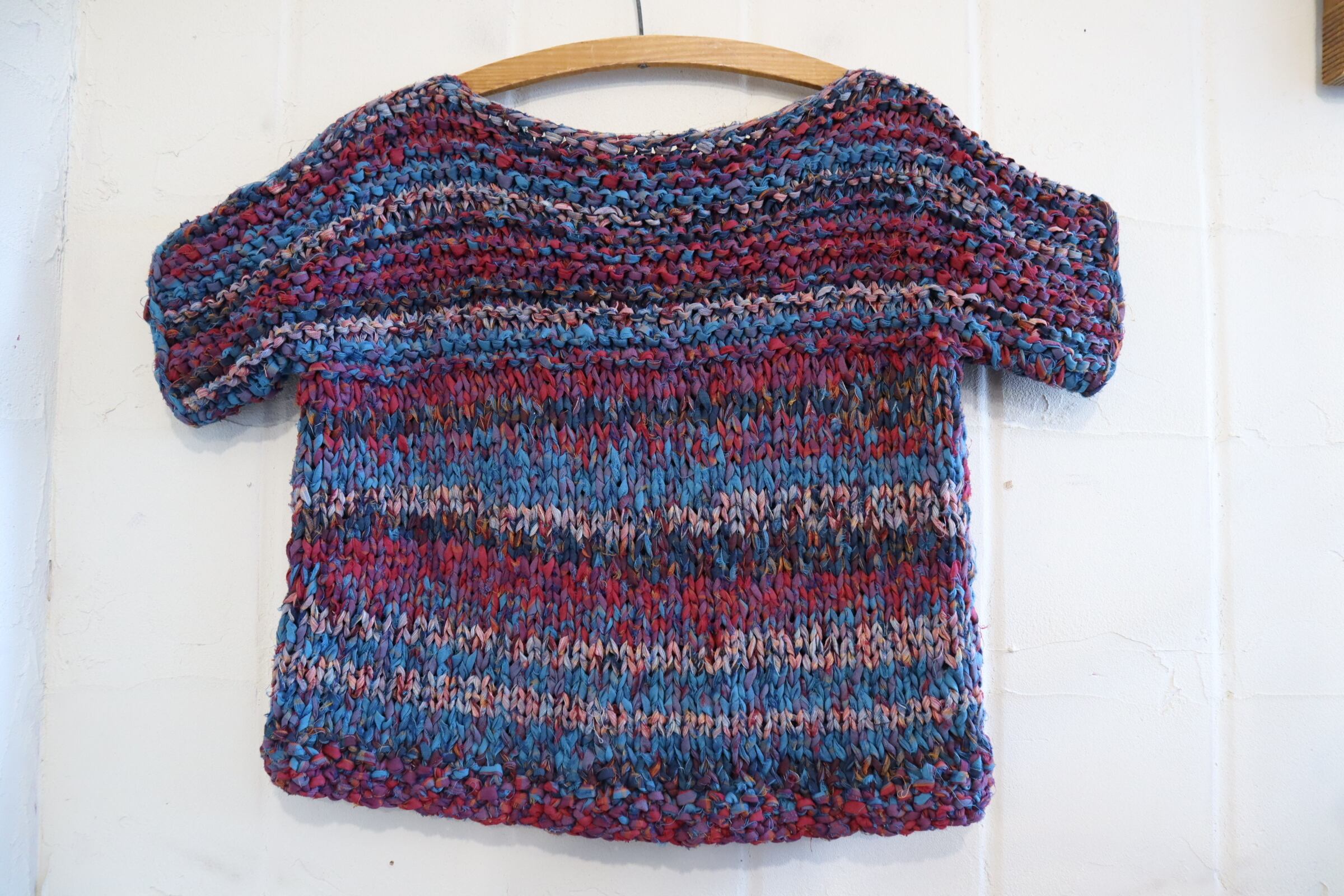 深みのあるお色味が可愛い布テープで編まれたトップス。