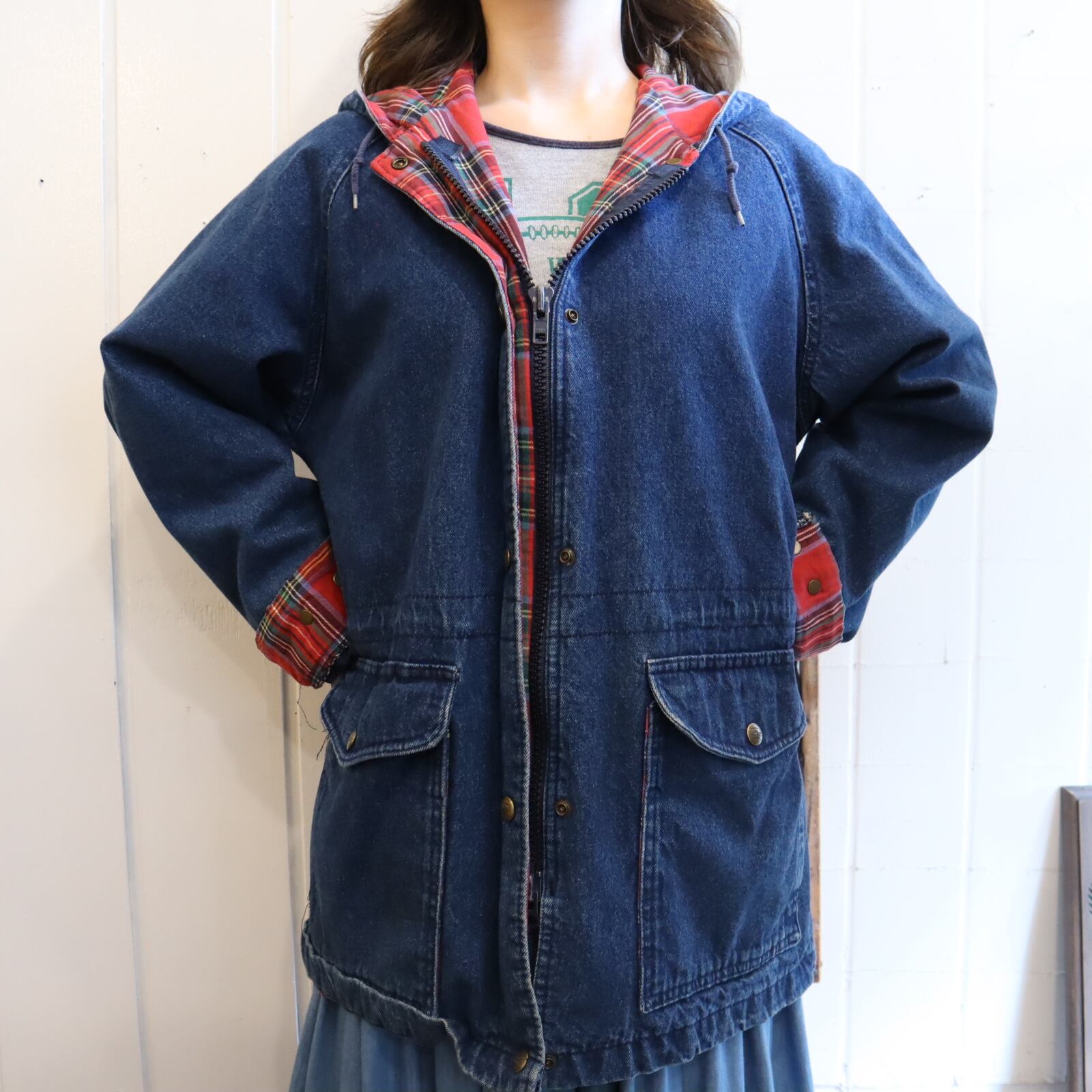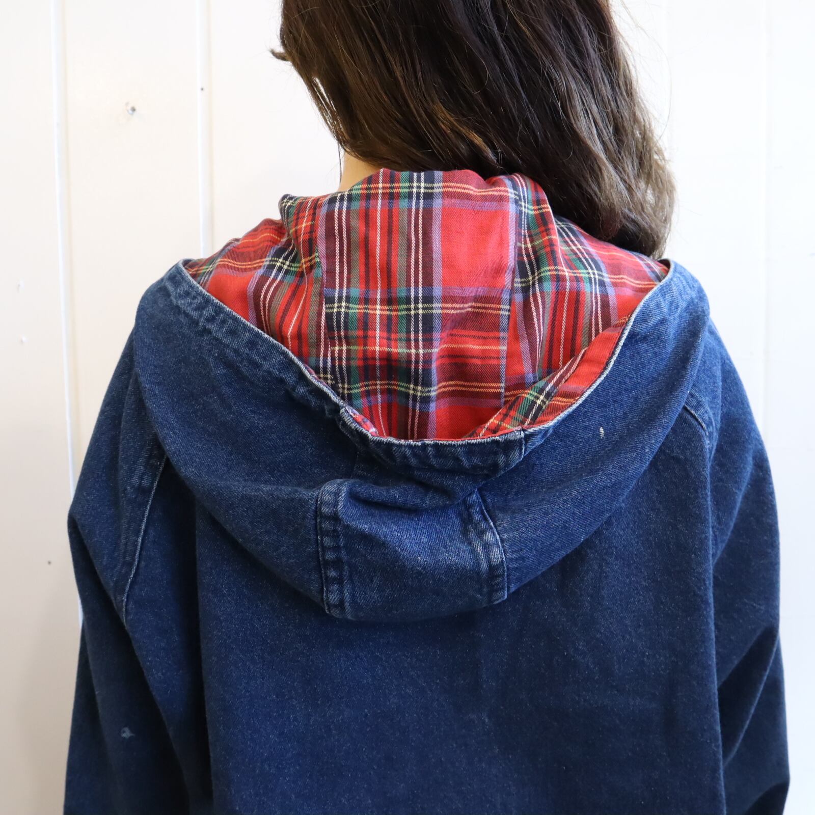 made in USA L.L.Bean indigoblue×red×green denim jacket [l-4048]