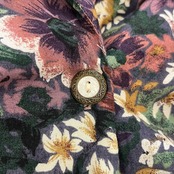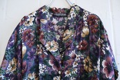 made in USA darkpurple×darkgreen flower dress [l-4058]