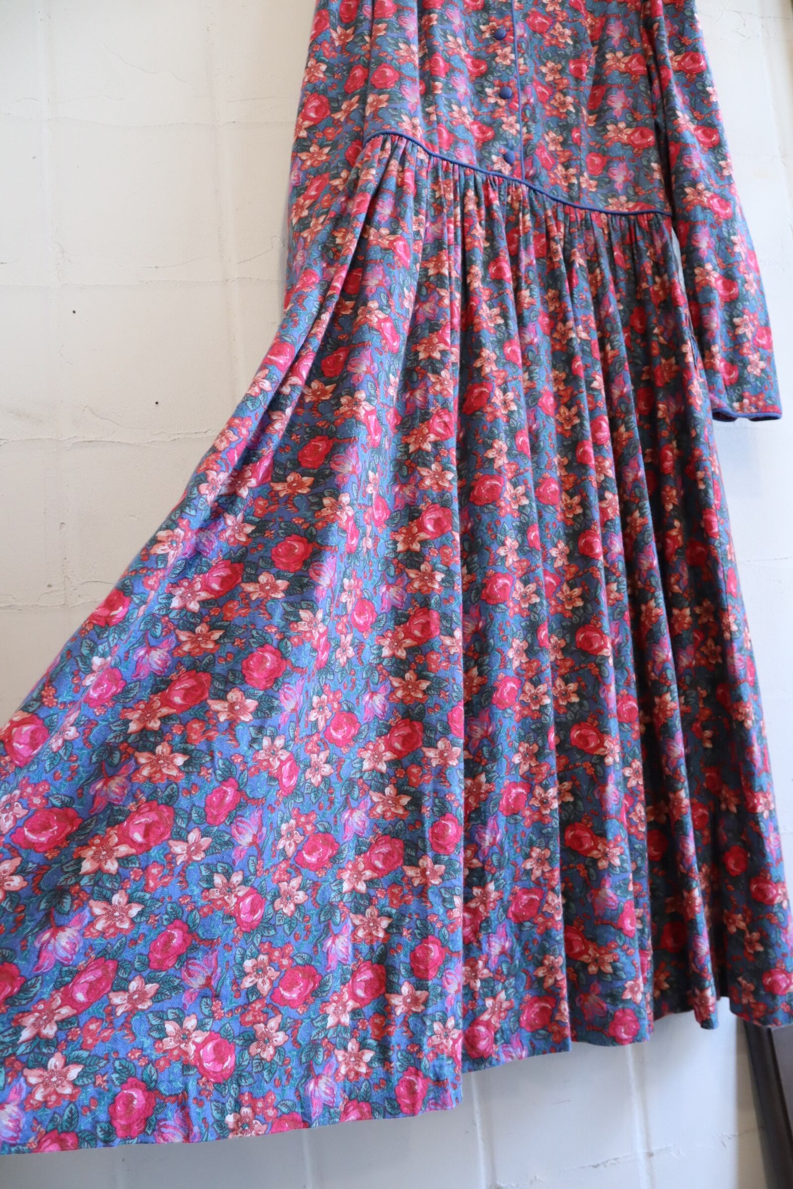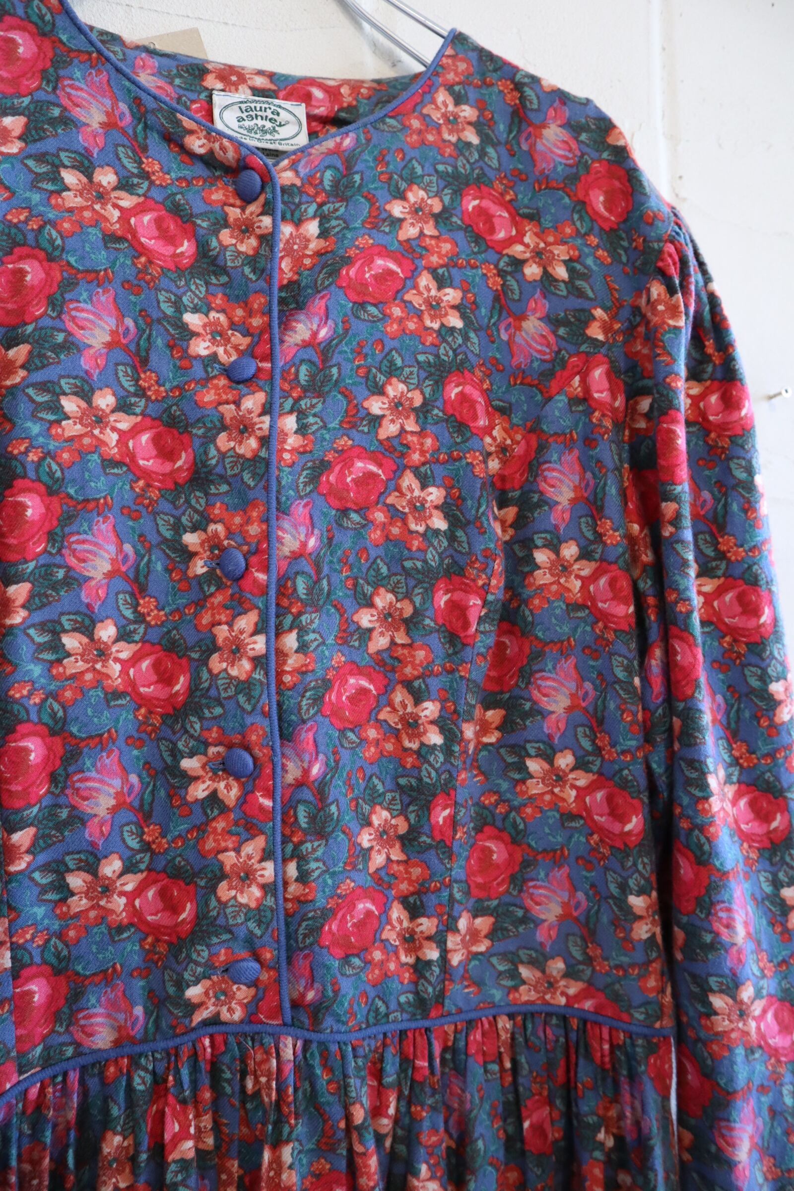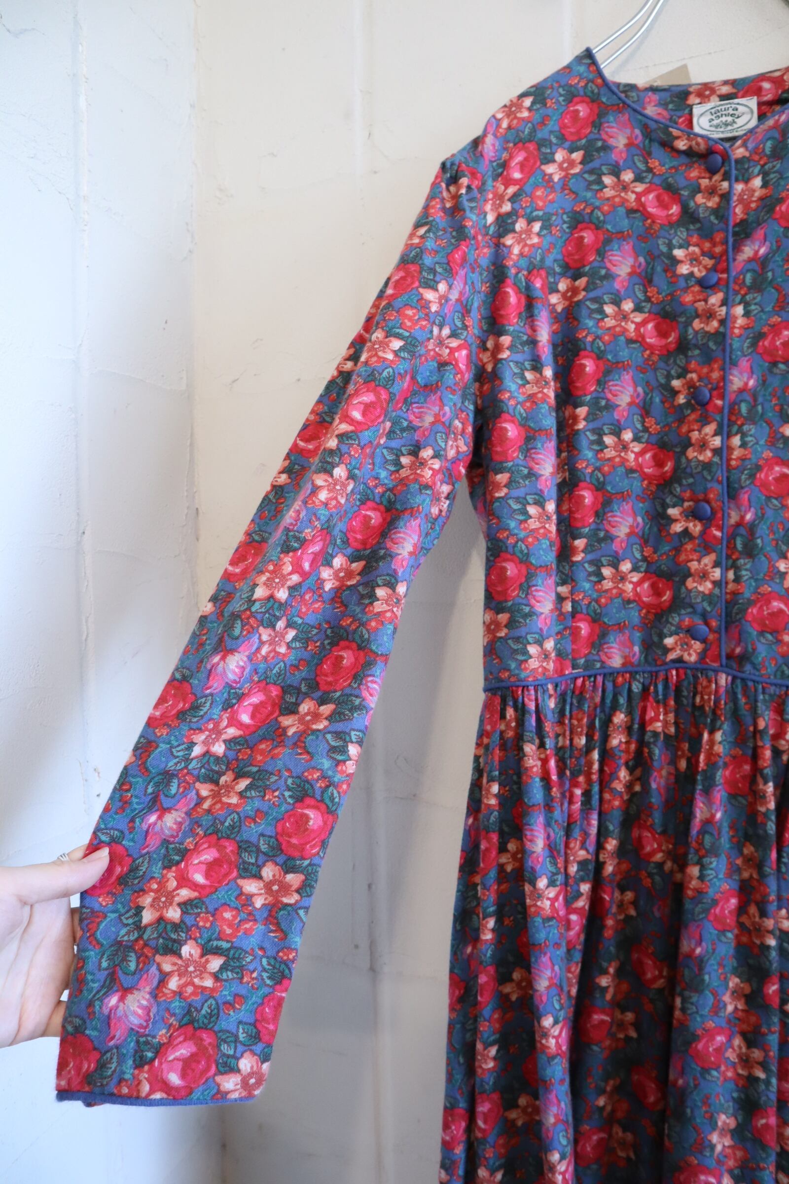 Laura Ashley saxblue×pink flower dress [l-4059]