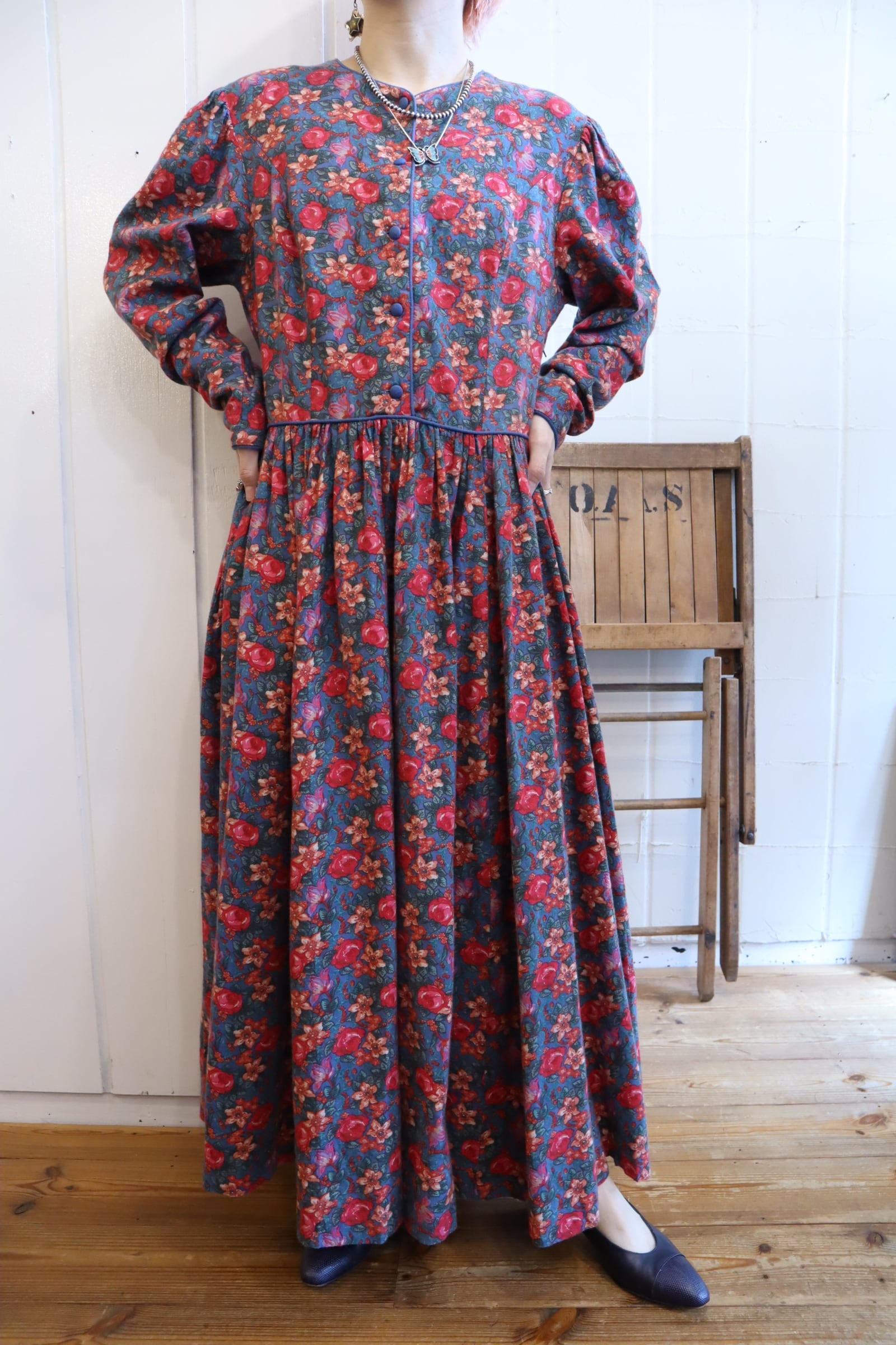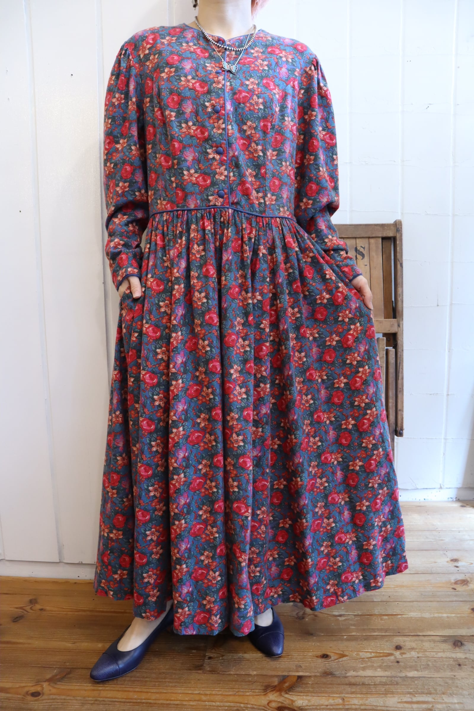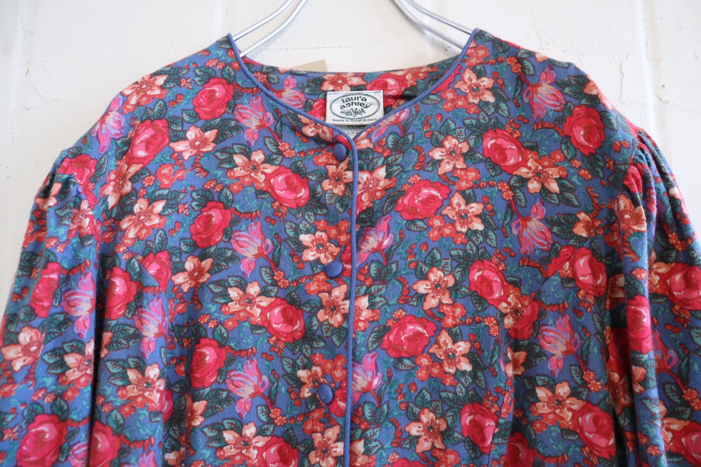 Laura Ashley saxblue×pink flower dress [l-4059]