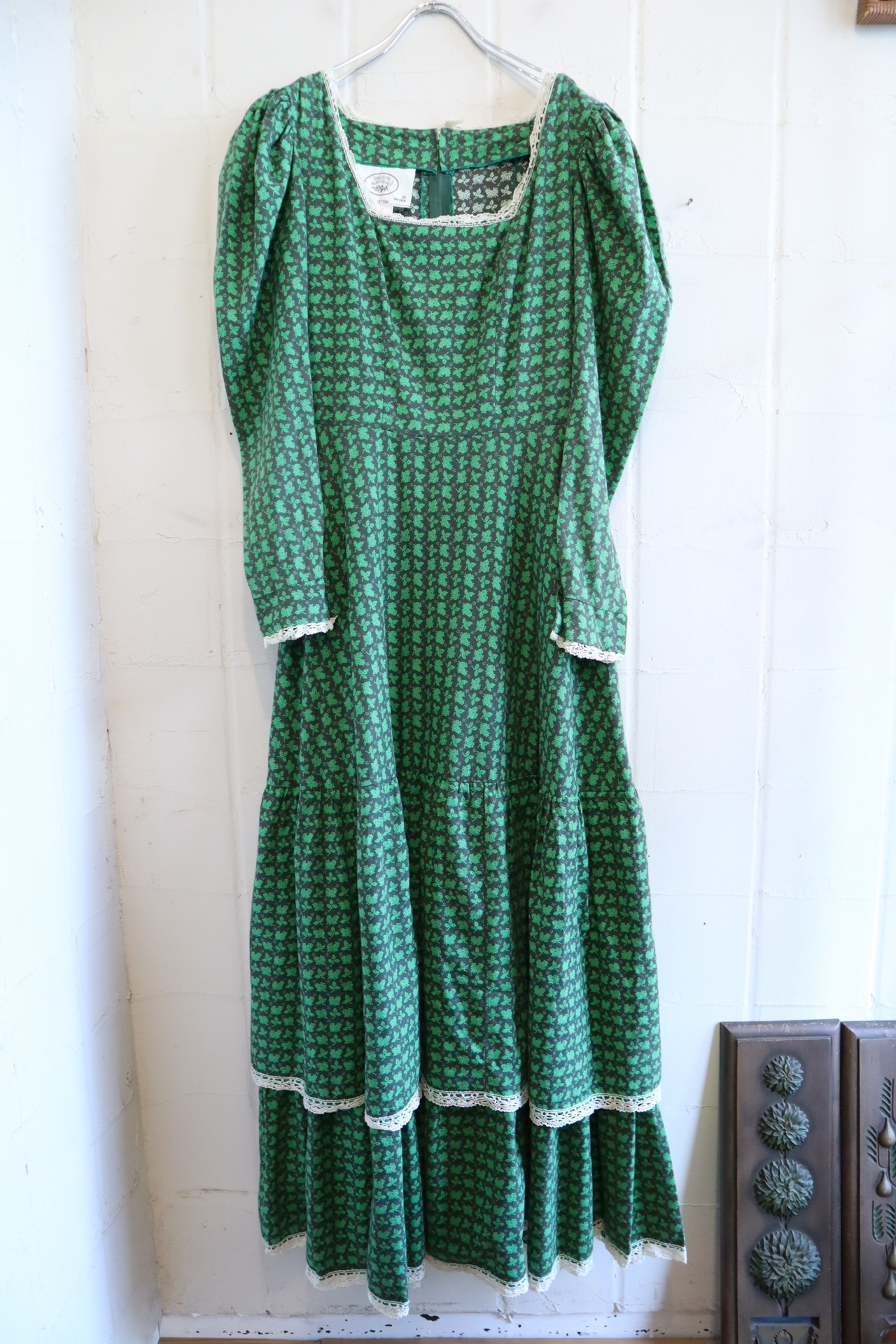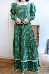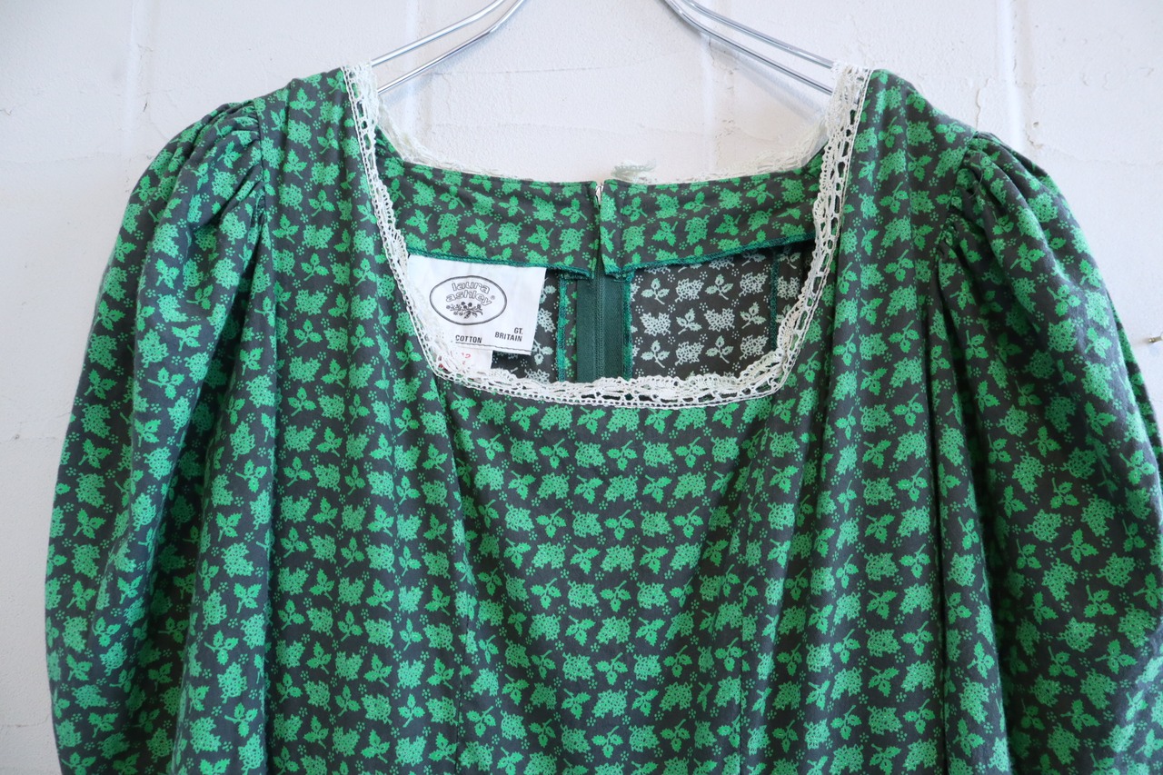 ブラック×グリーンの大人なお色味が素敵な70sローラアシュレイのドレスです*