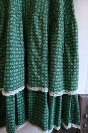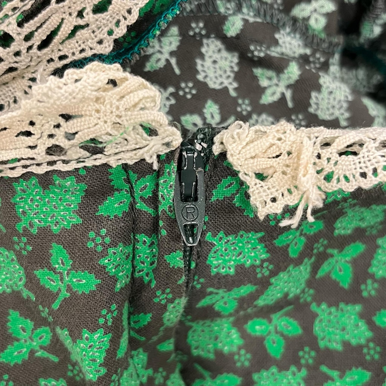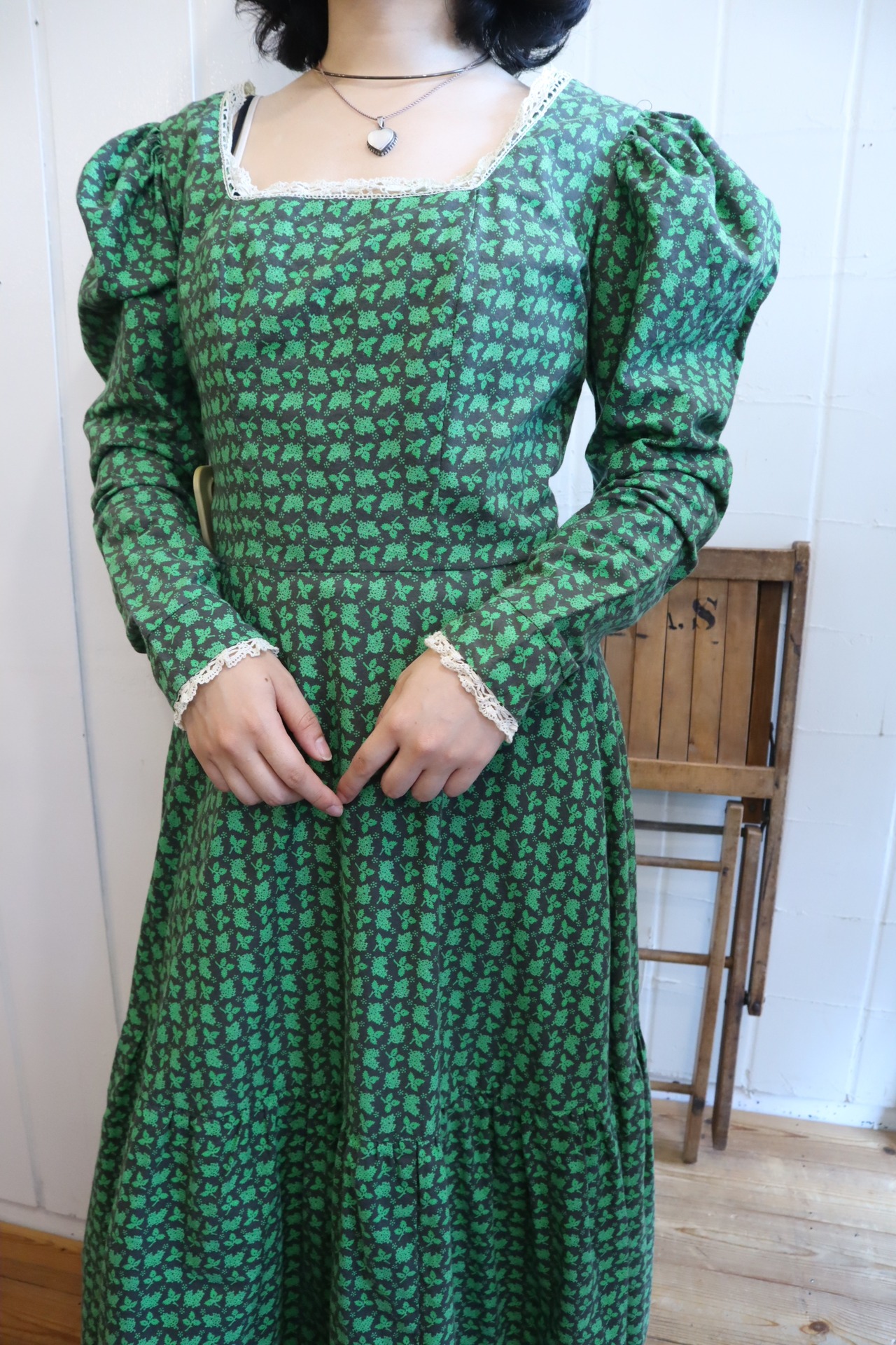 70s Laura Ashley black×green leaf tiered dress [l-4060]