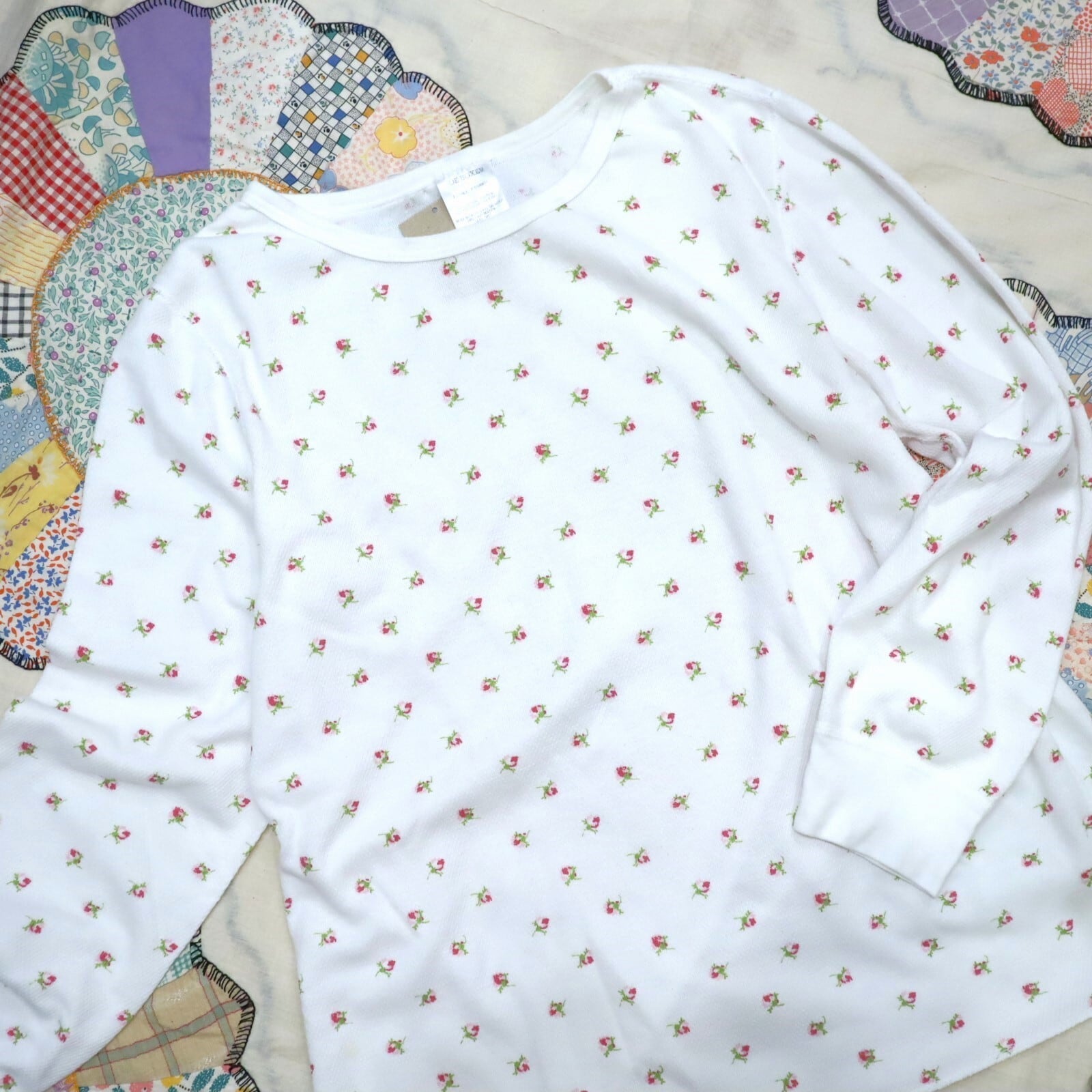 ほどよく散りばめられたお花が可愛いサーマルトップス。