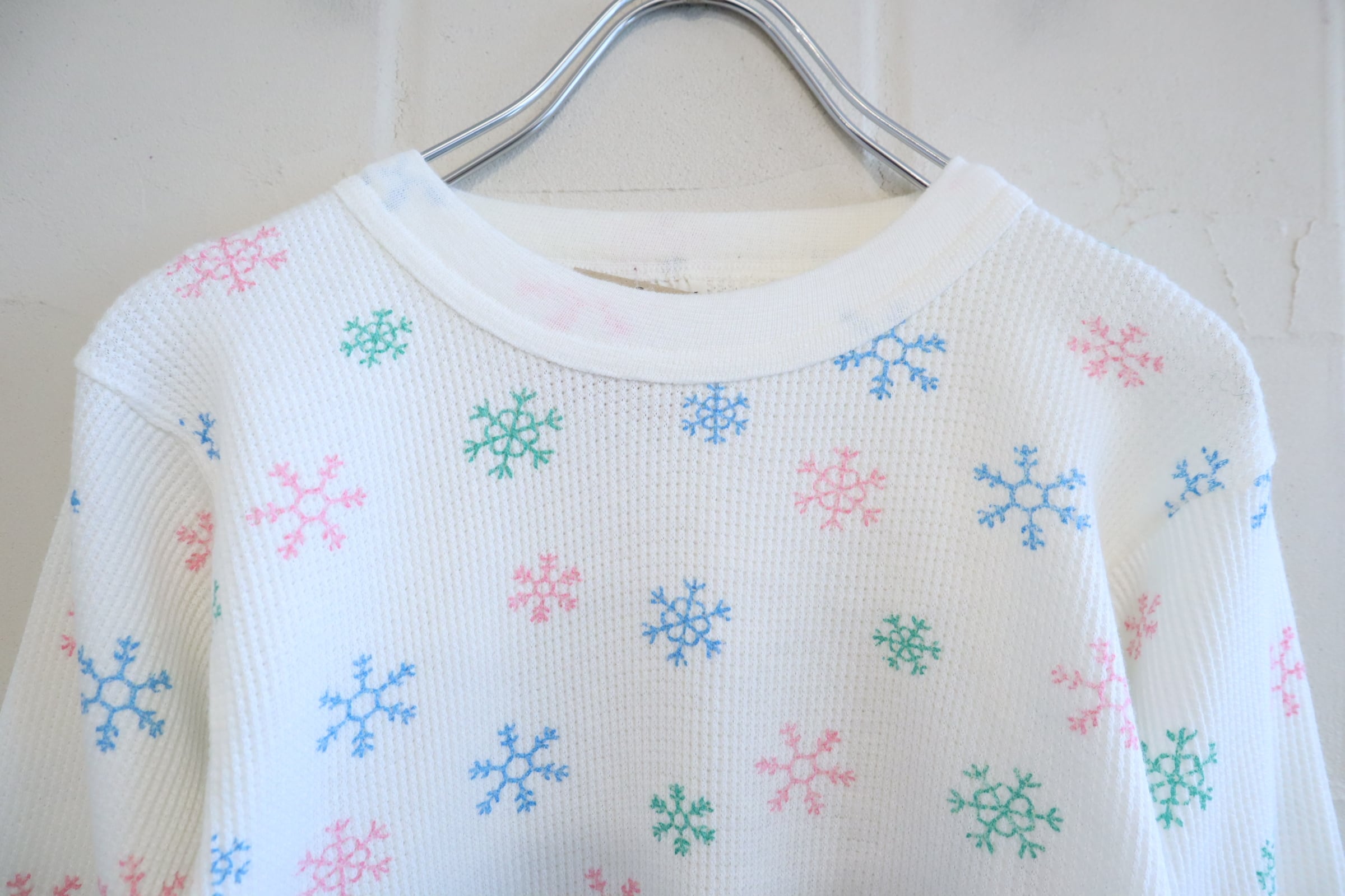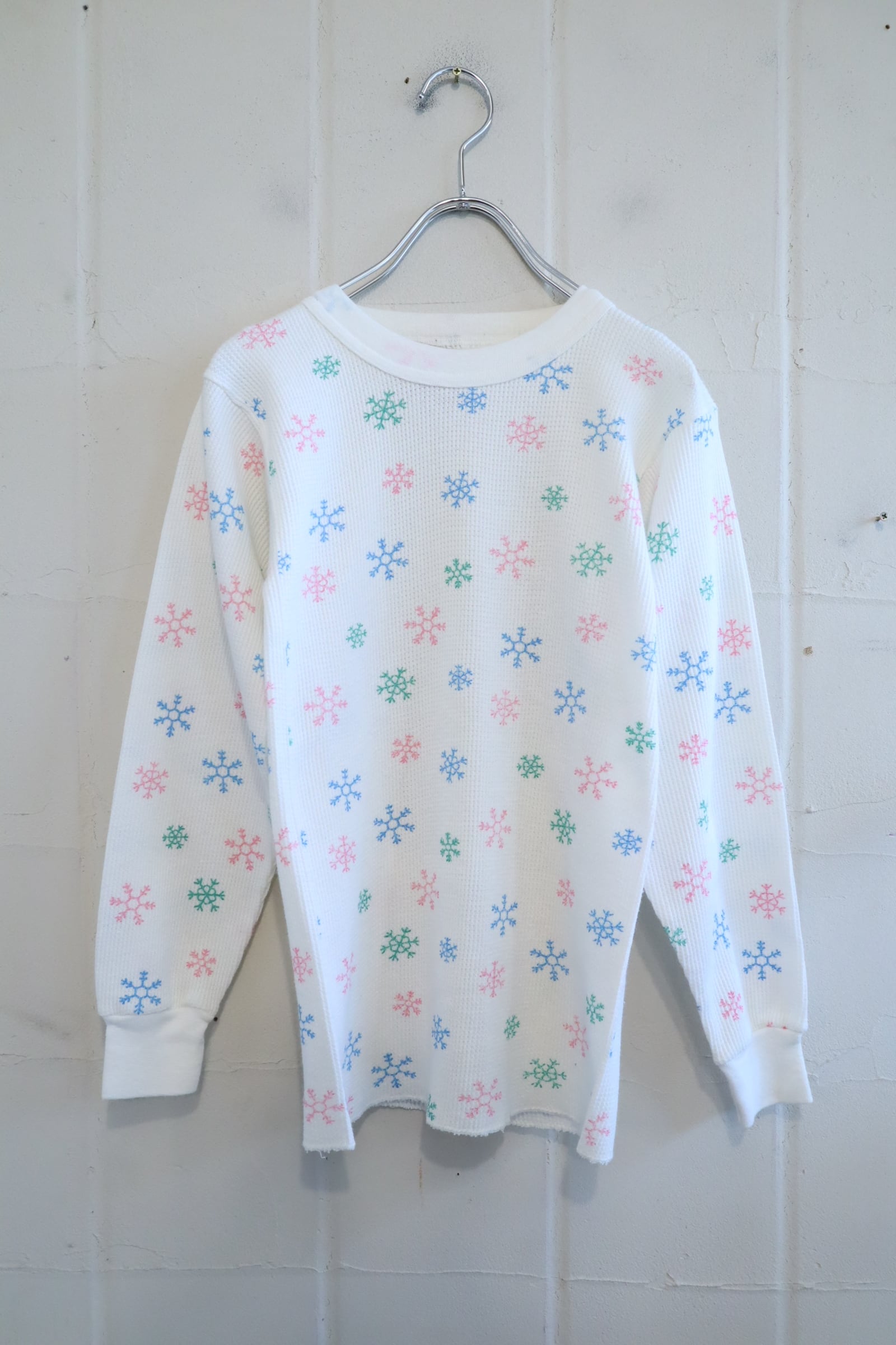 -80s white×colorful snowflake pattern thermal tops [l-4065]