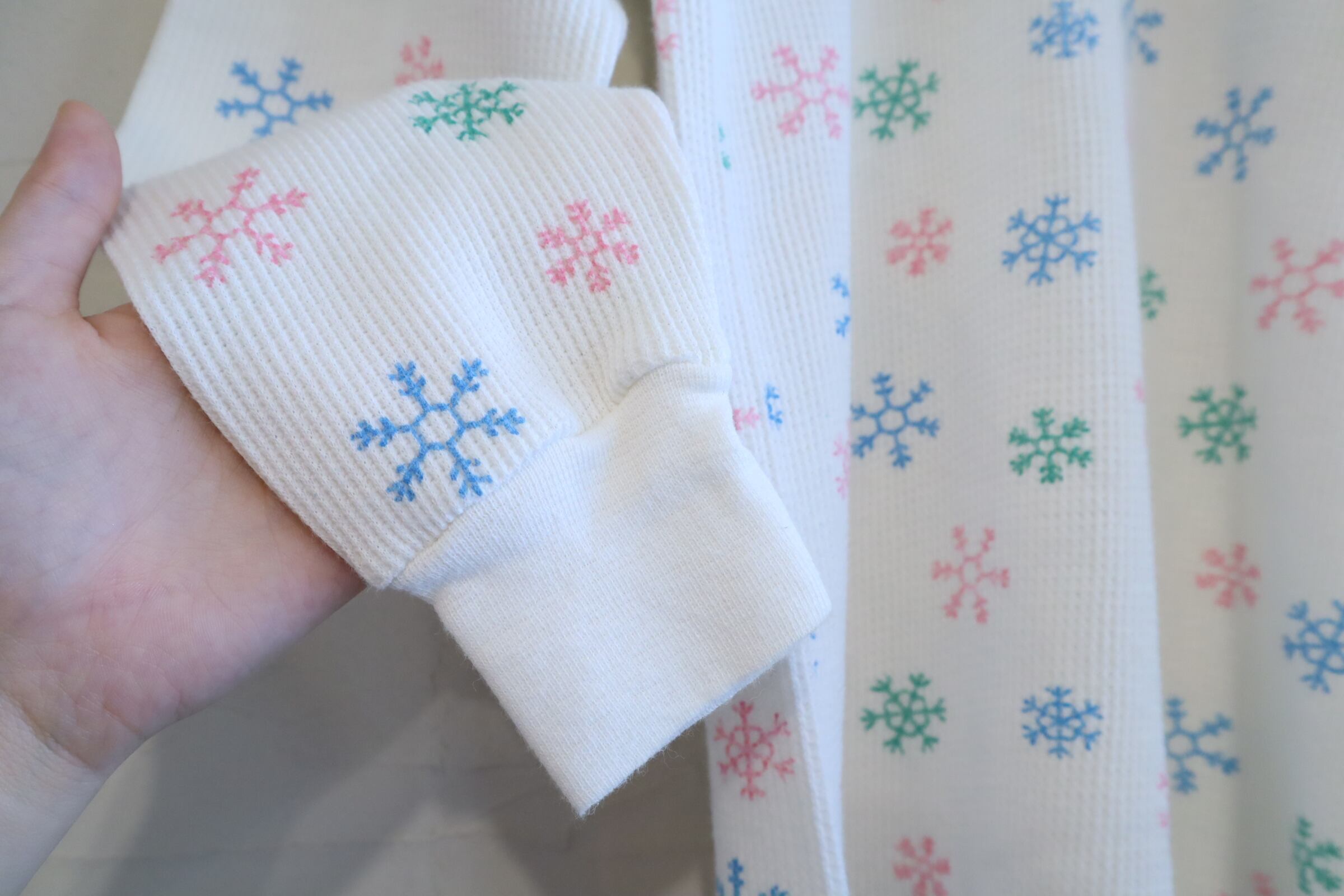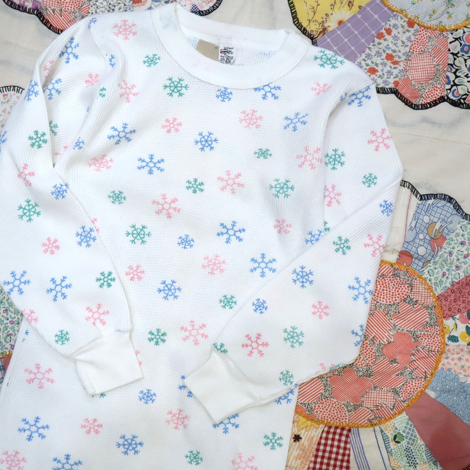 雪の結晶柄がとっても可愛いサーマルトップス。