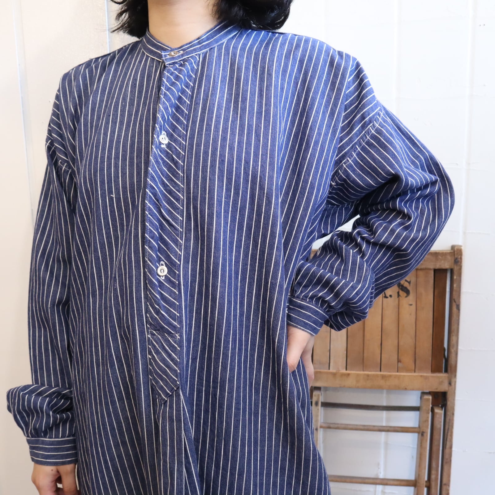 blue×white stripe long sleeve dress [k-4066]