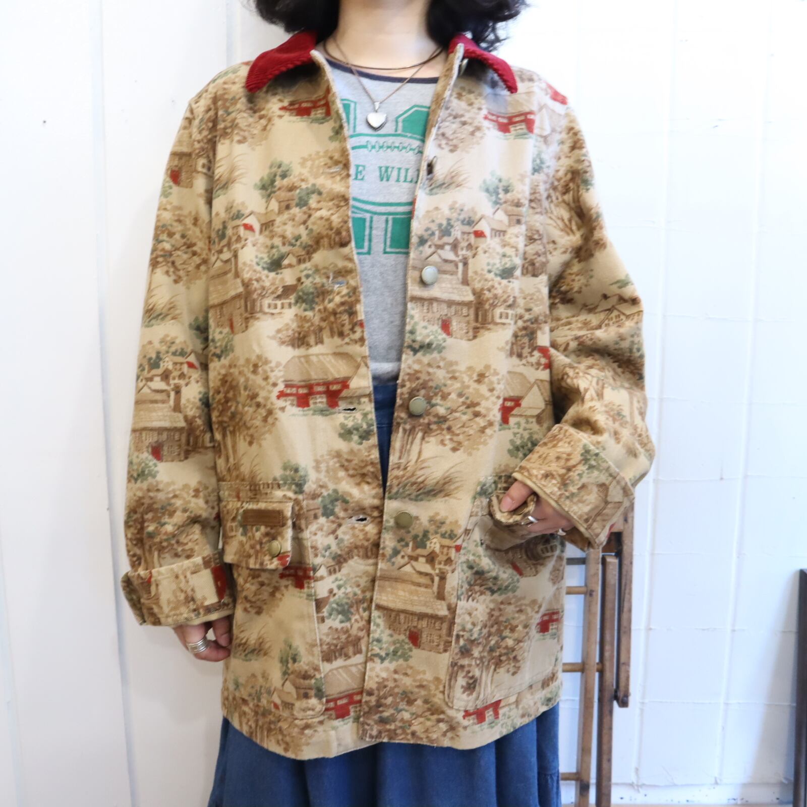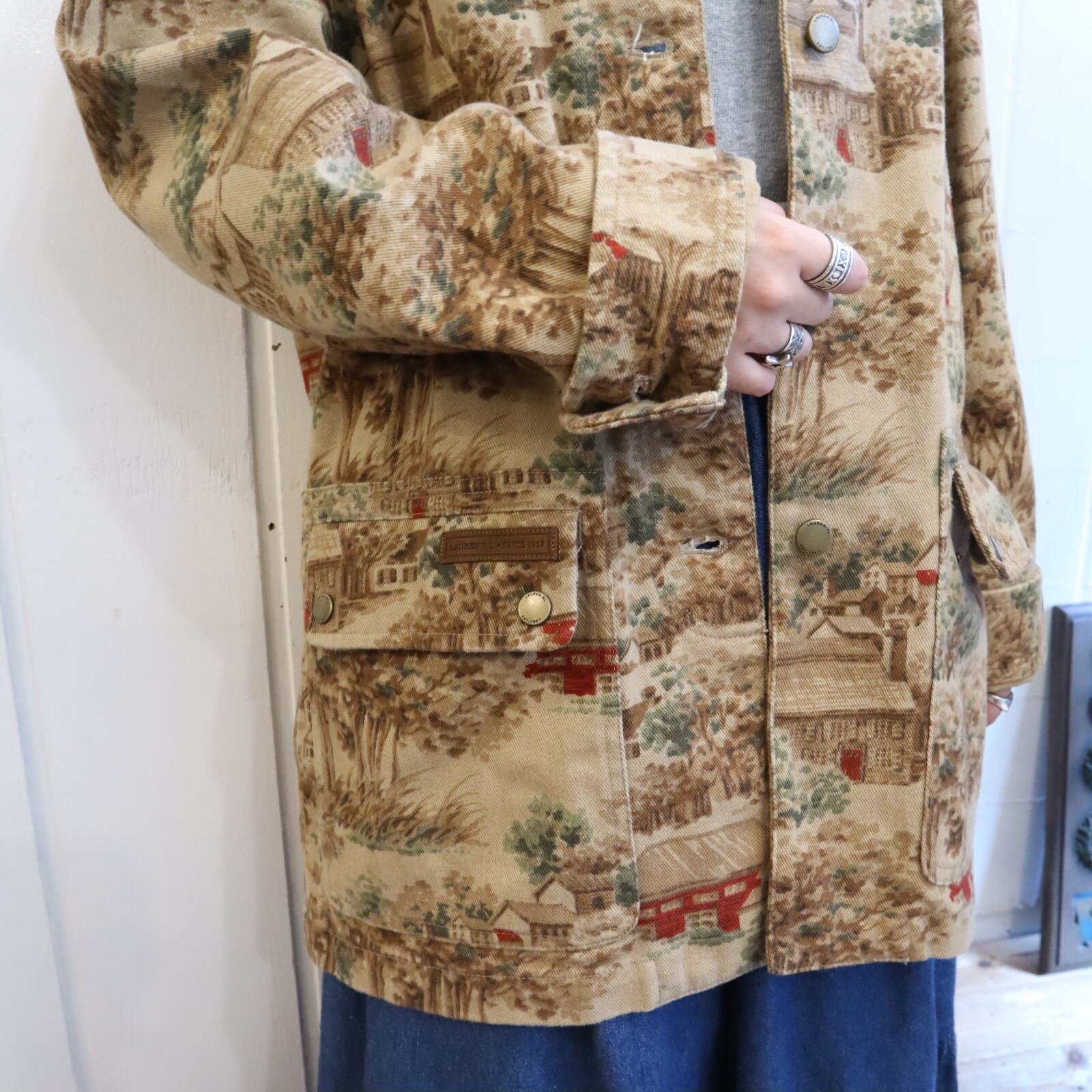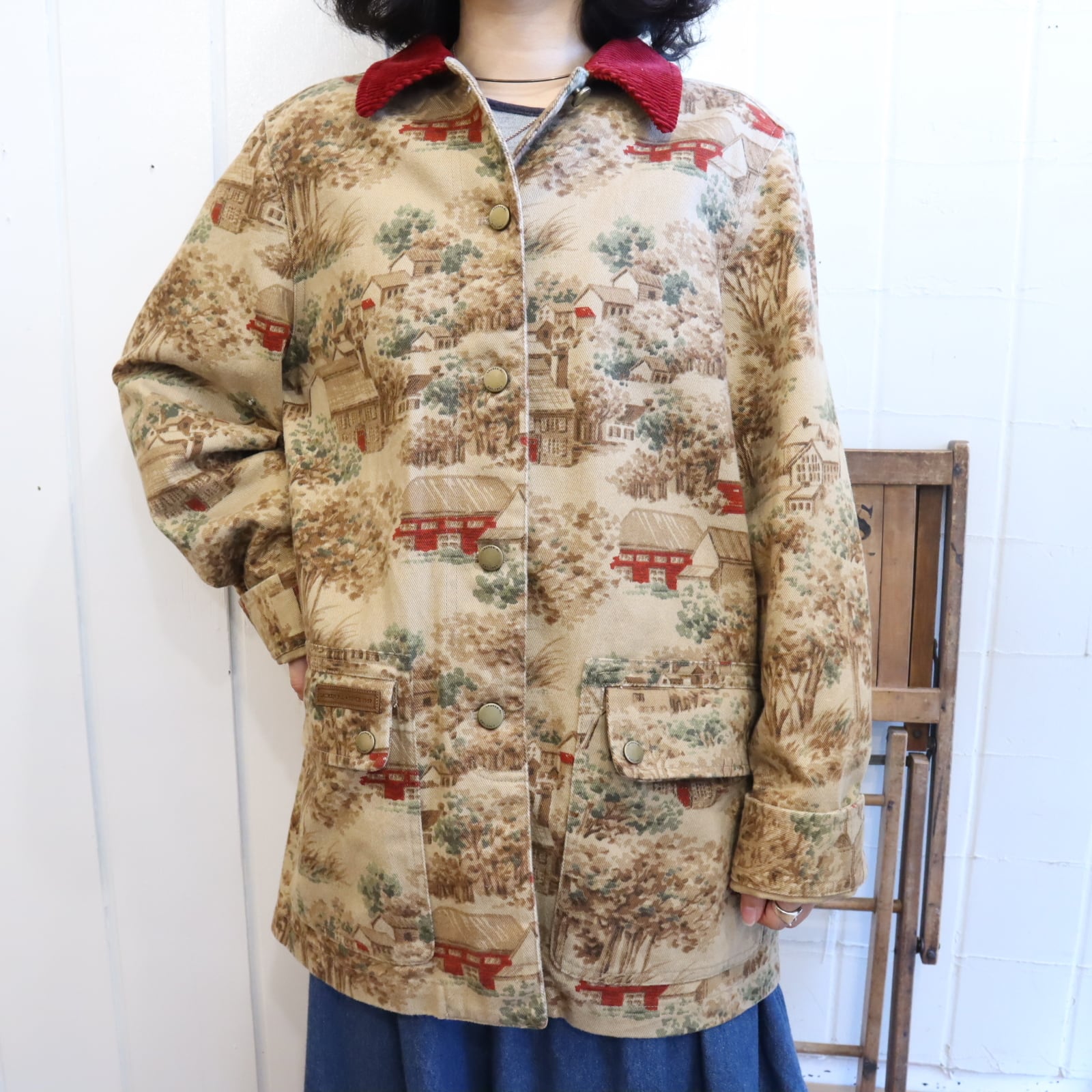 Ralph Lauren beige×brown×red landscape pattern jacket [k-4068]
