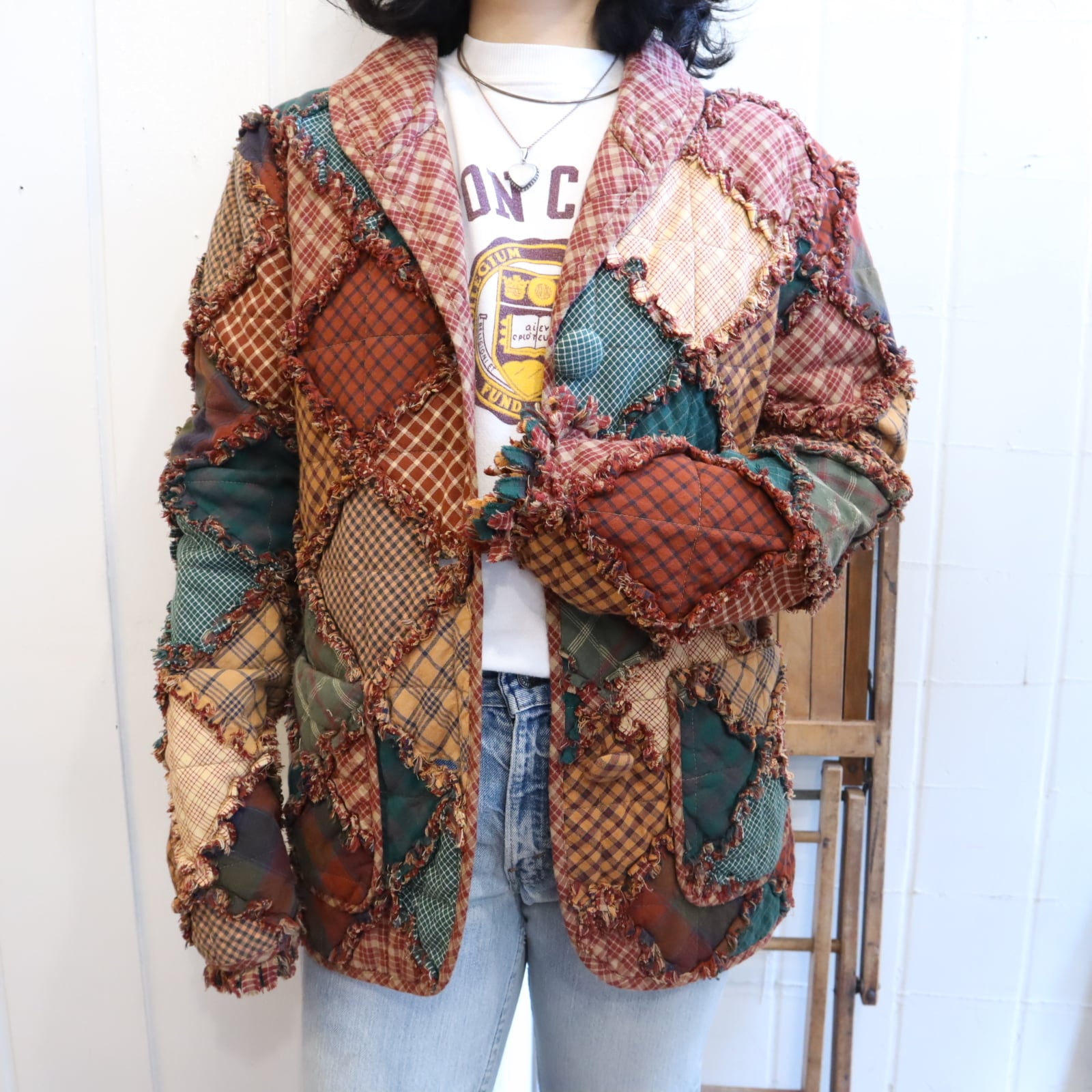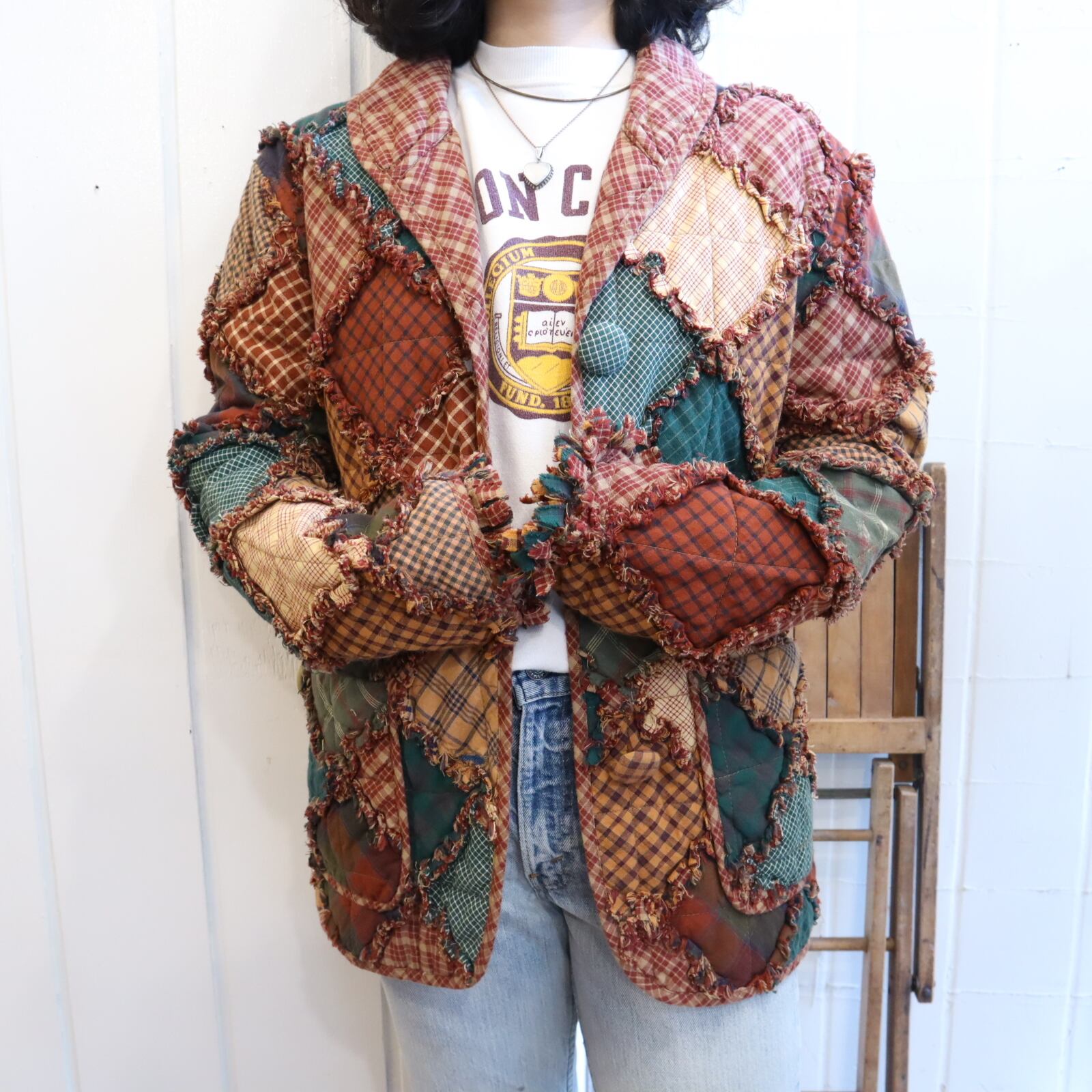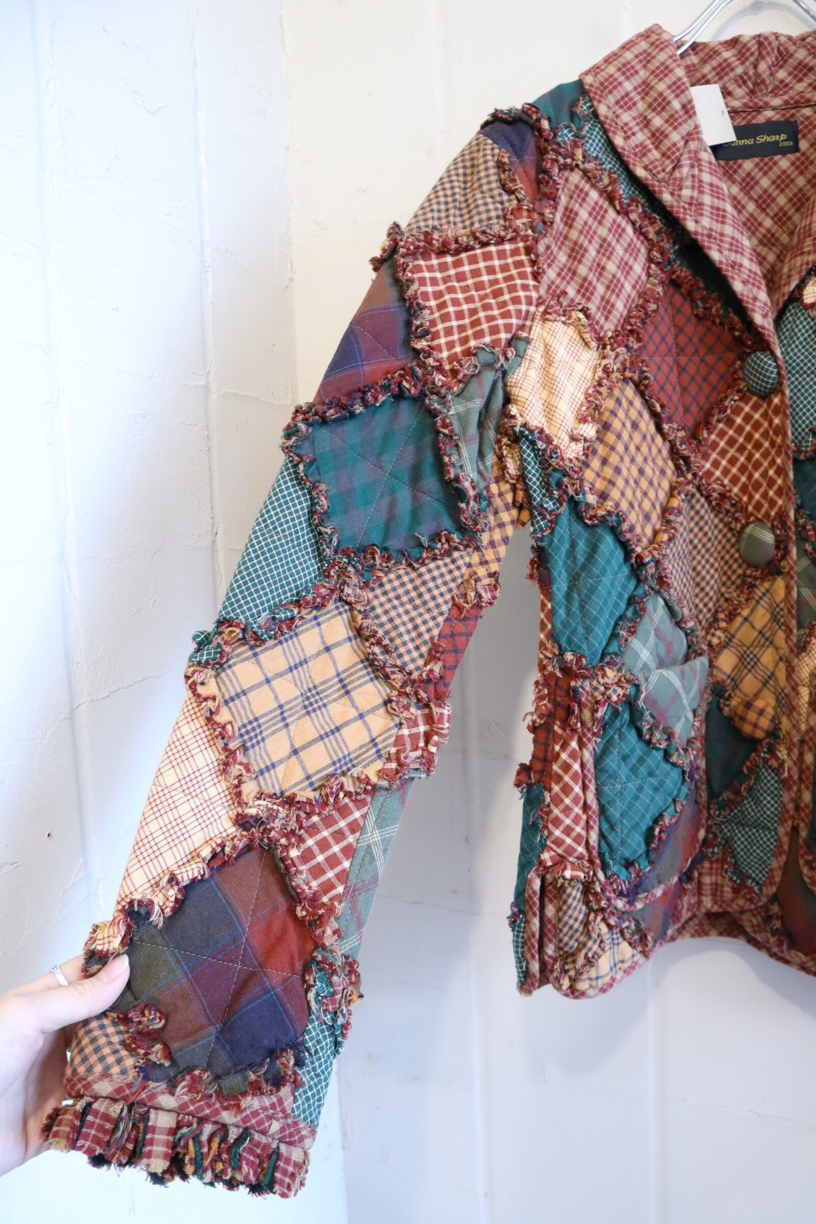 布端部分がフリンジのようになった、とても可愛いパッチワークジャケット。