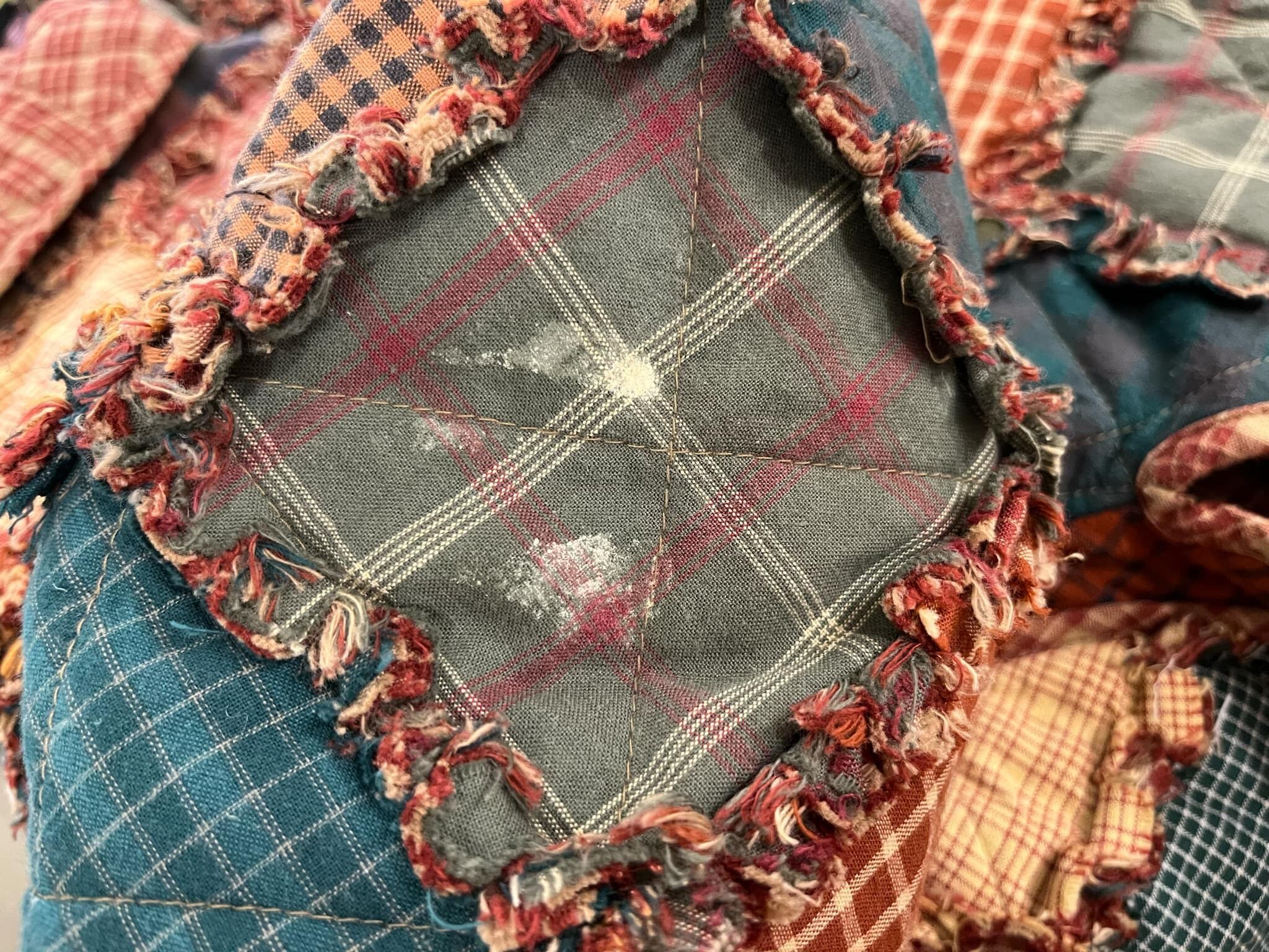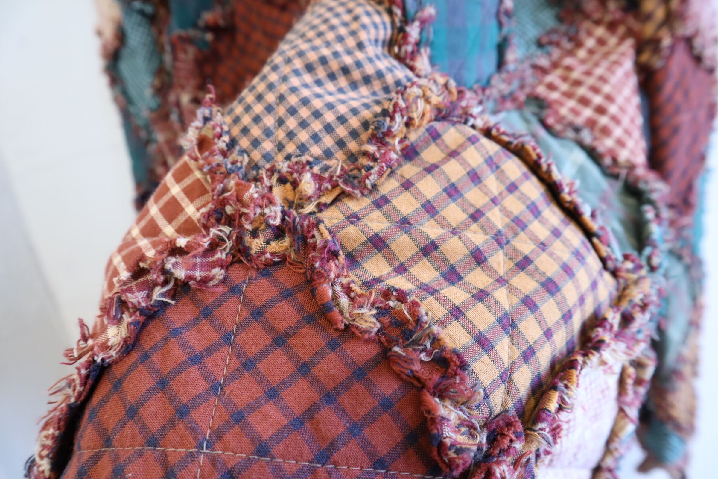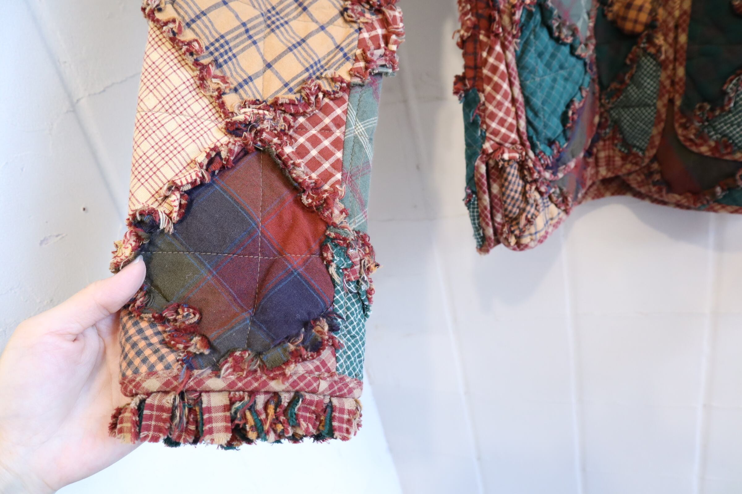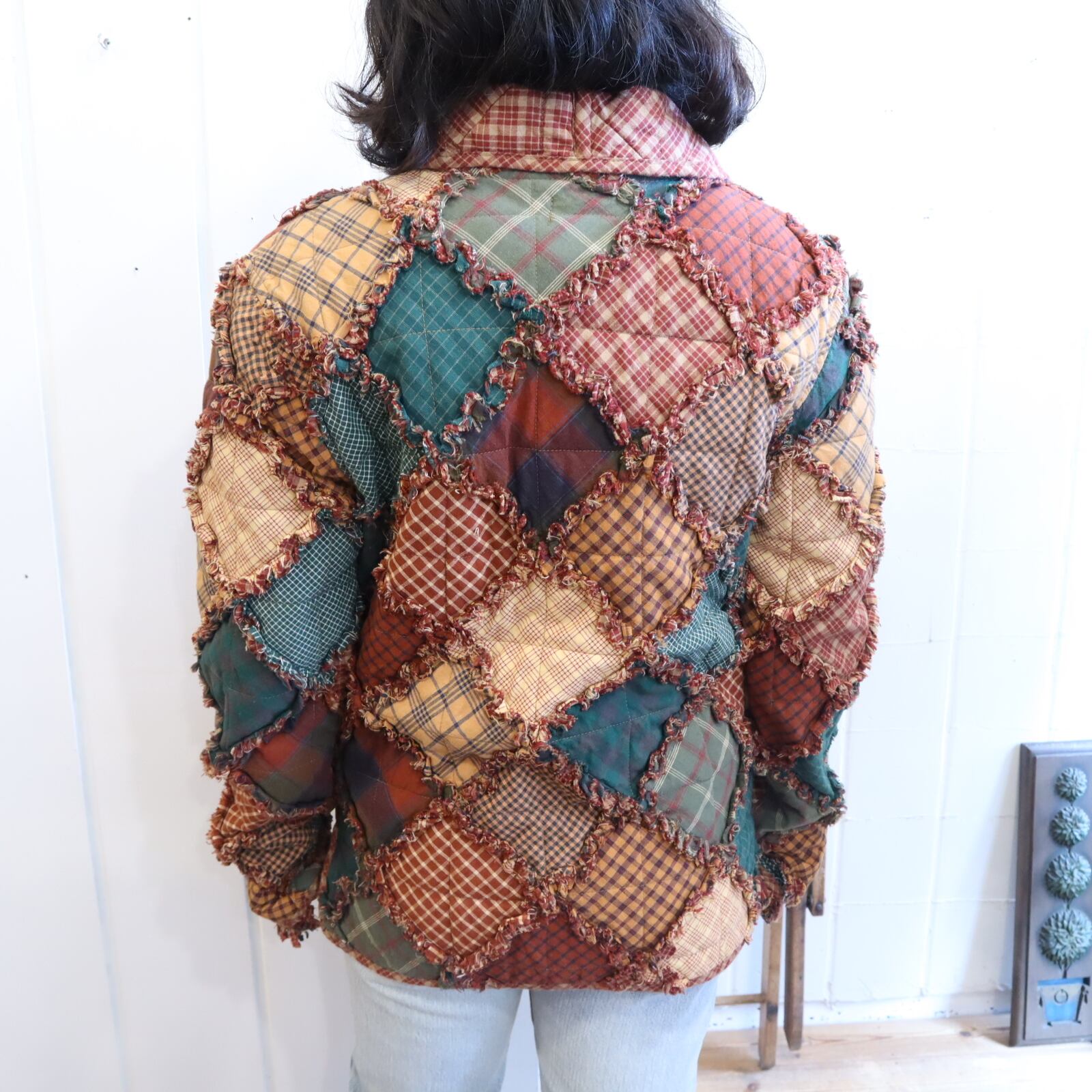 布端部分がフリンジのようになった、とても可愛いパッチワークジャケット。