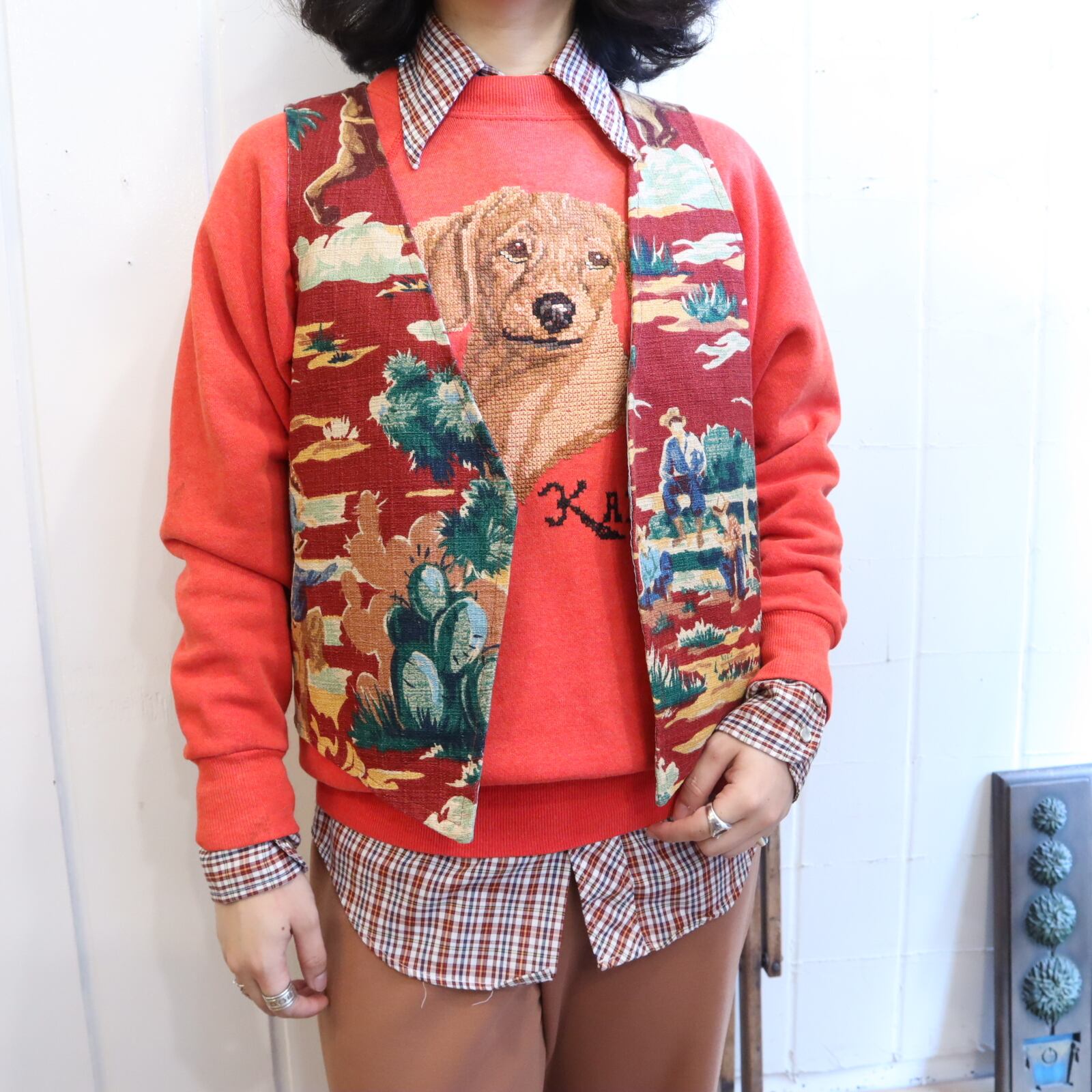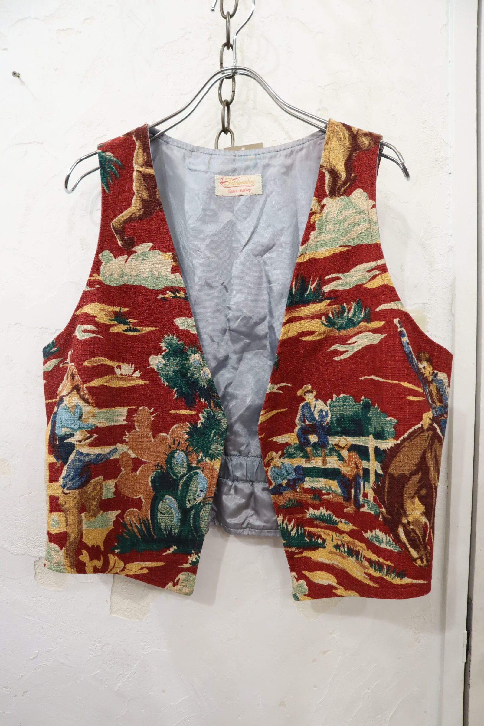 red×green×yellow western pattern vest [l-4072]