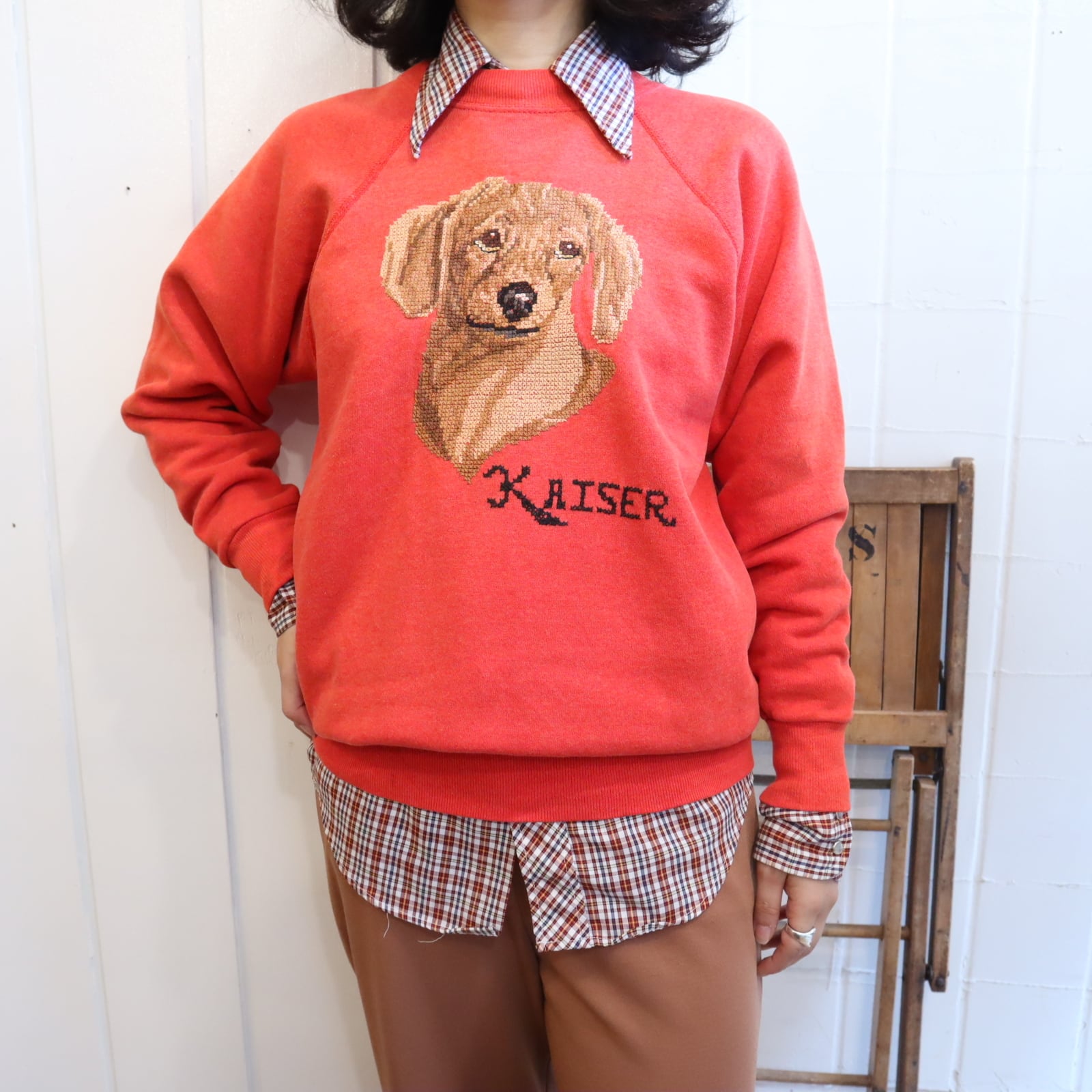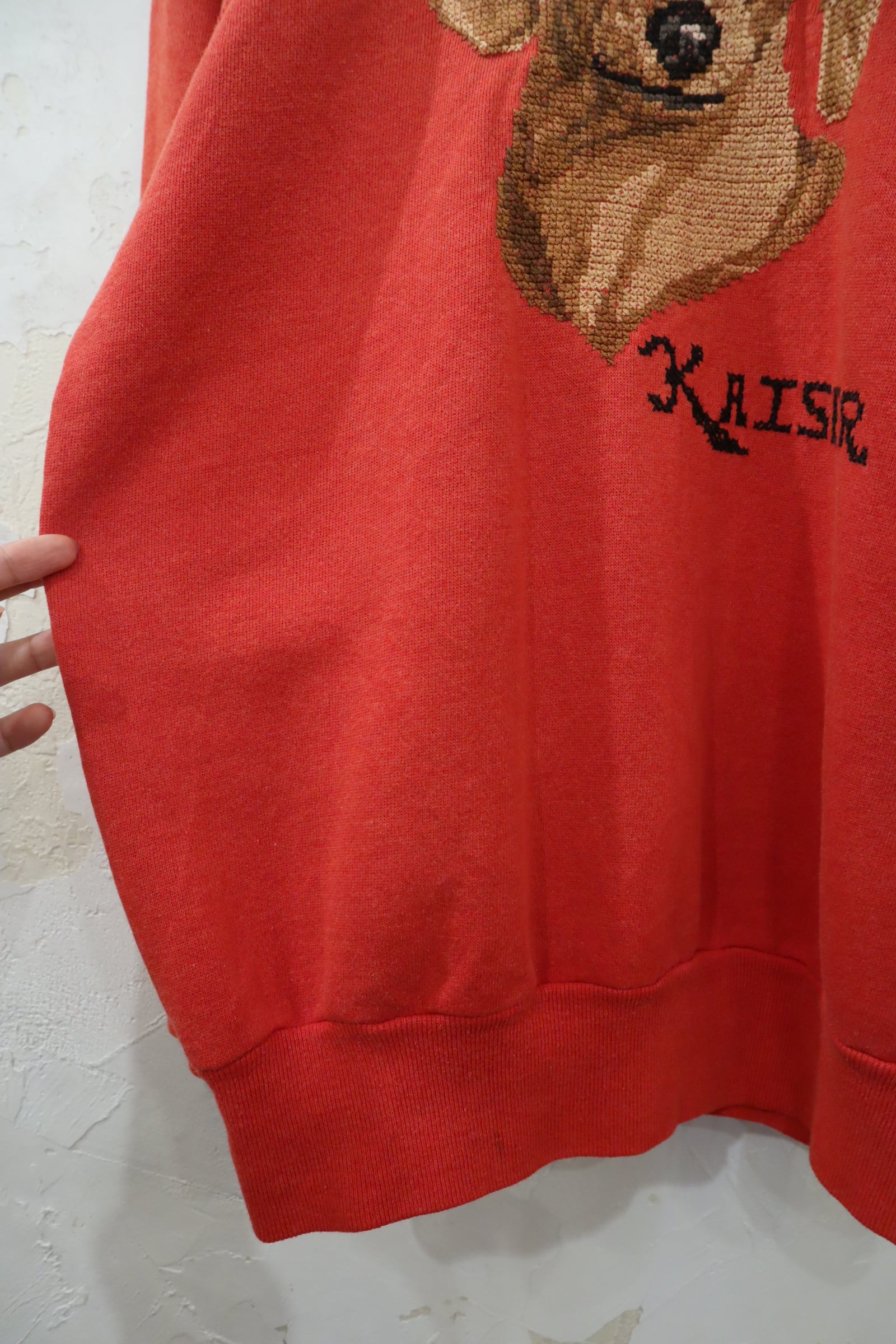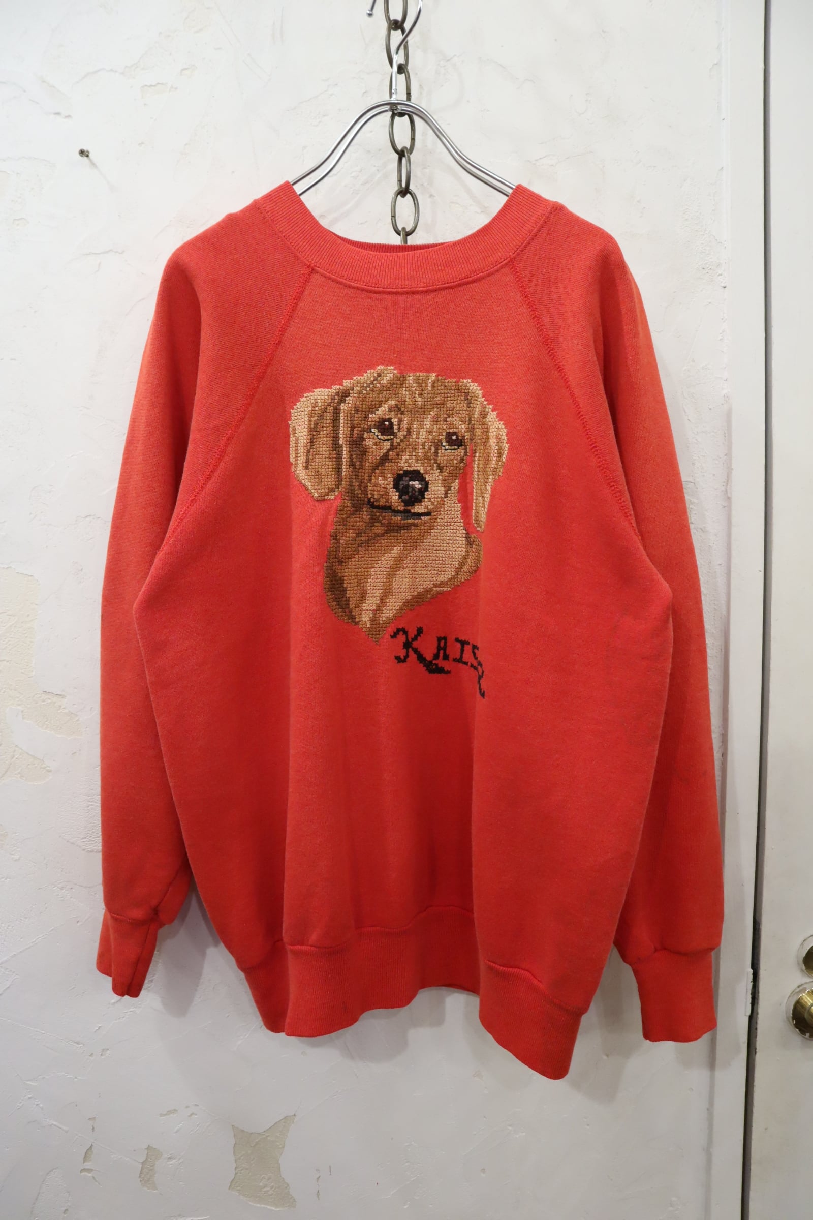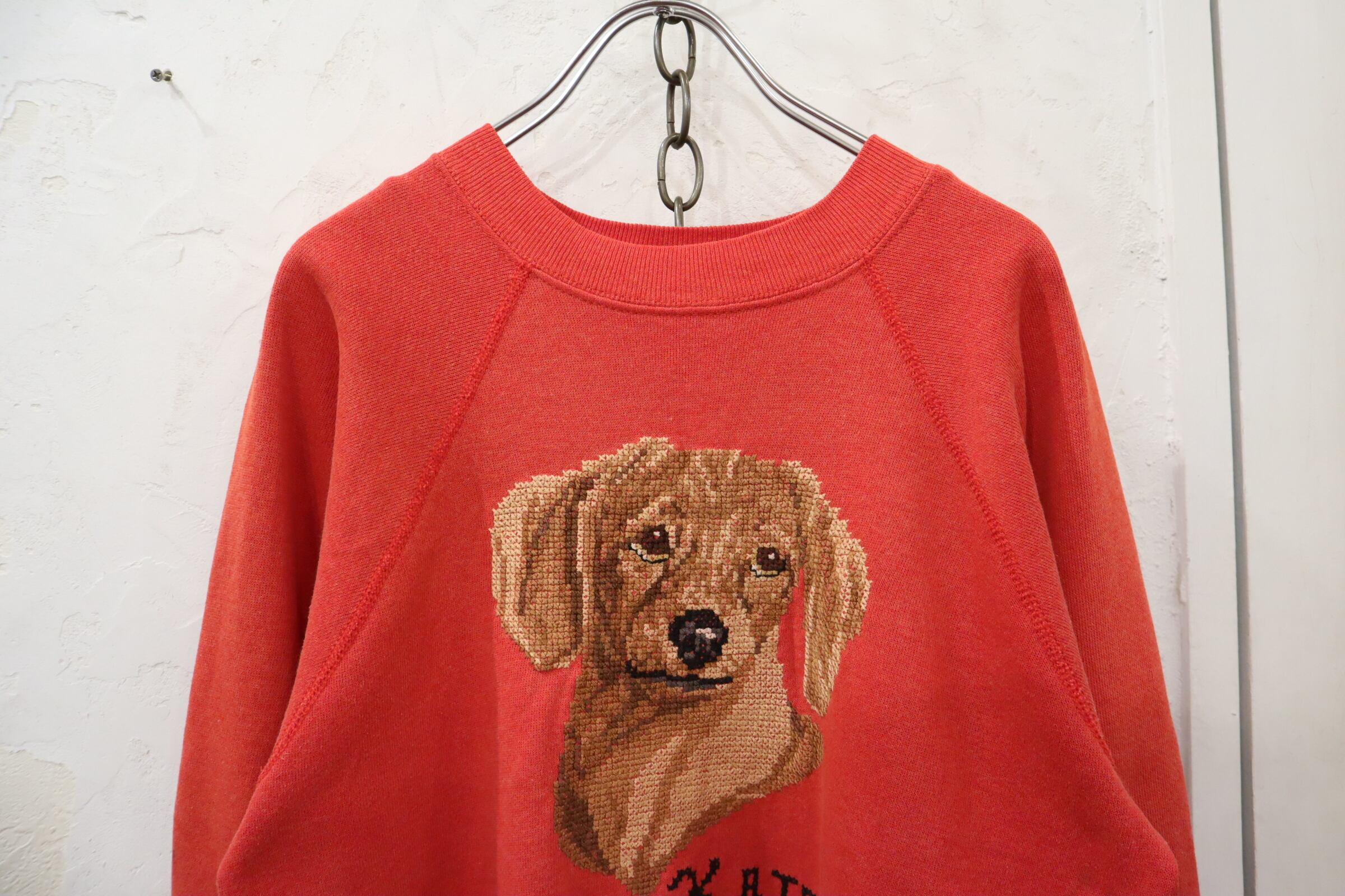 made in USA red×brown×black dog embroidery sweat [l-4073]