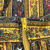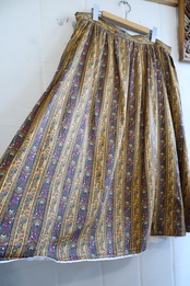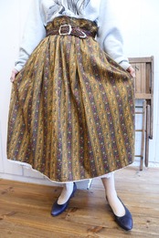 mustard×brown stripe & flower pattern tyrol skirt [l-4076]