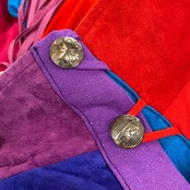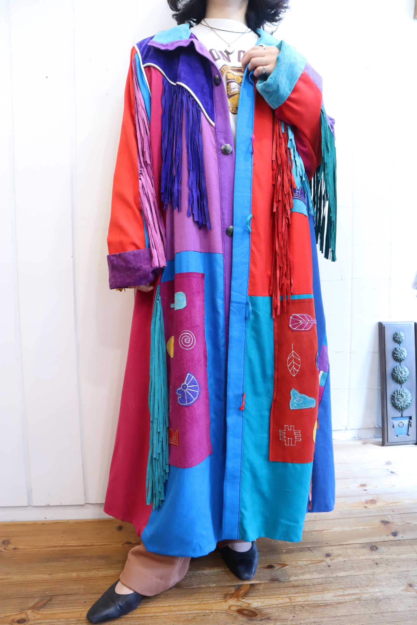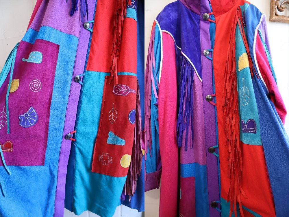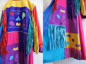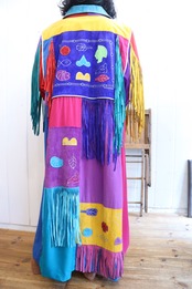 ところどころレザーが混ざっている素材の違い・フリンジデザイン・パッチ・それぞれ柄の違うコンチョボタンなど遊び心のあるディテールが詰まった一着です*