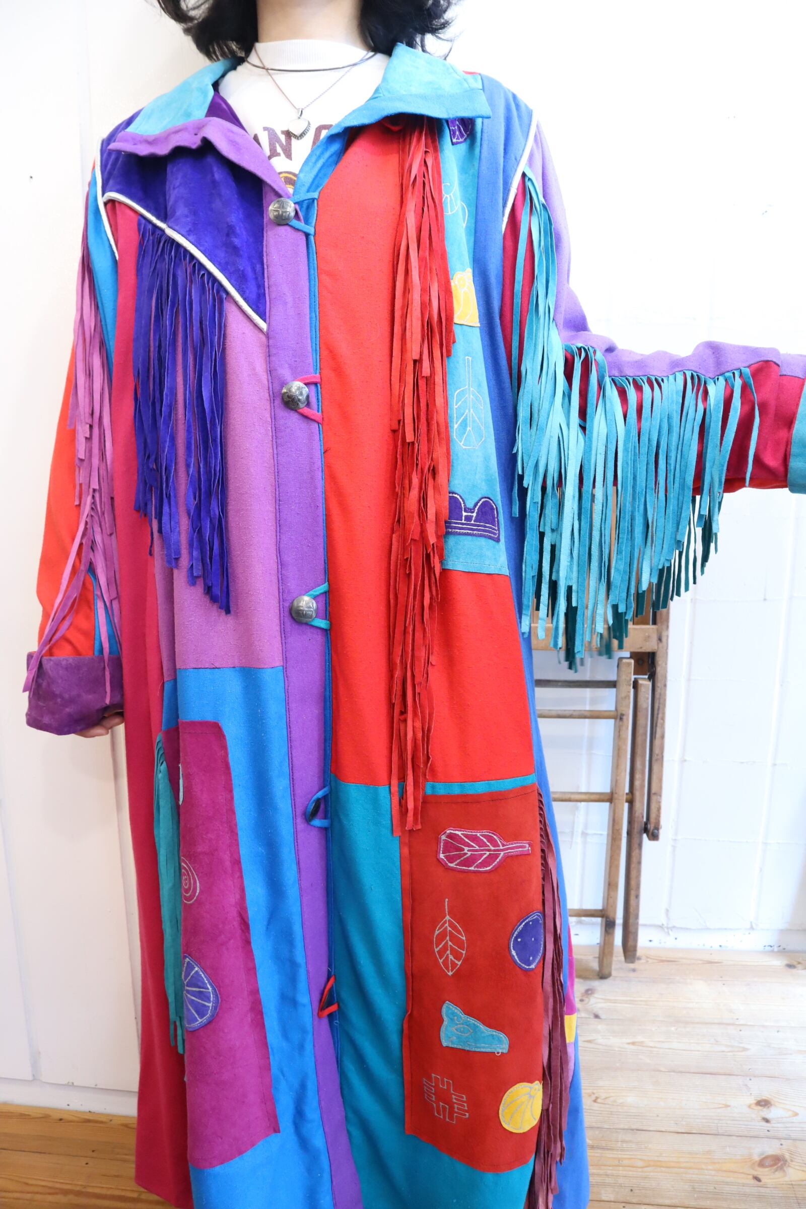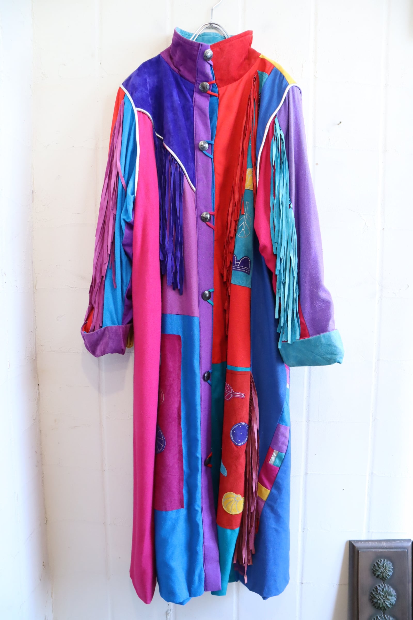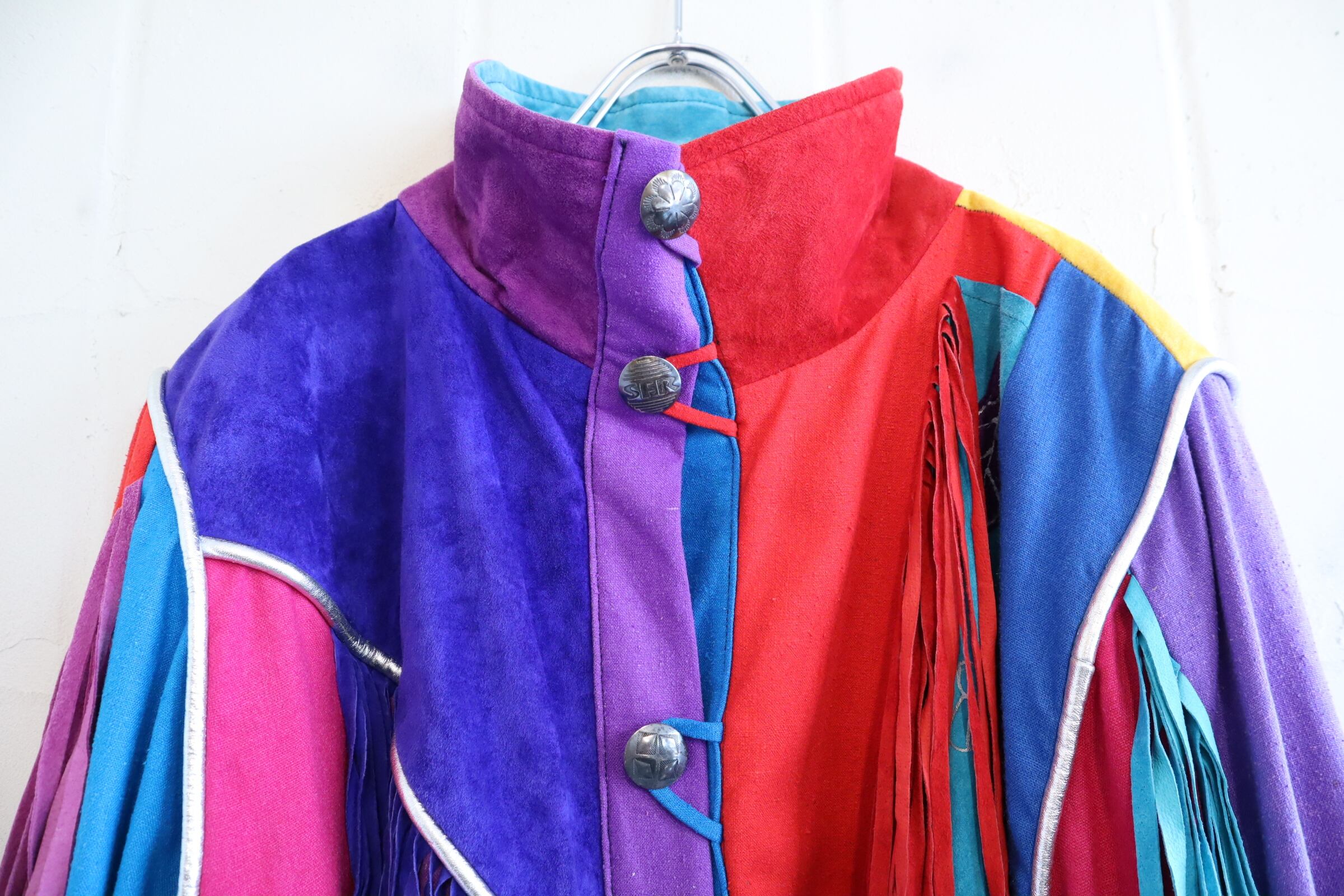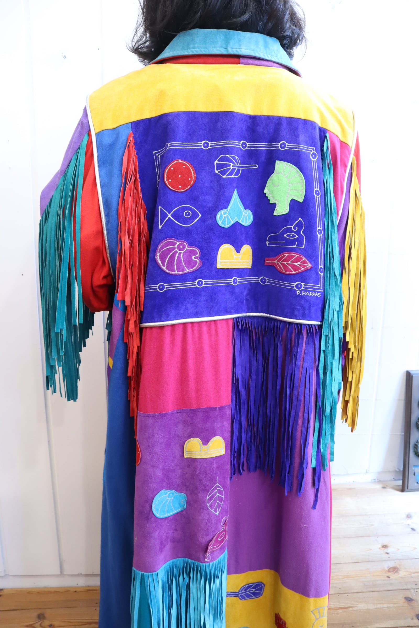 made in USA colorful leather switch fringe patchwork coat [l-4082]
