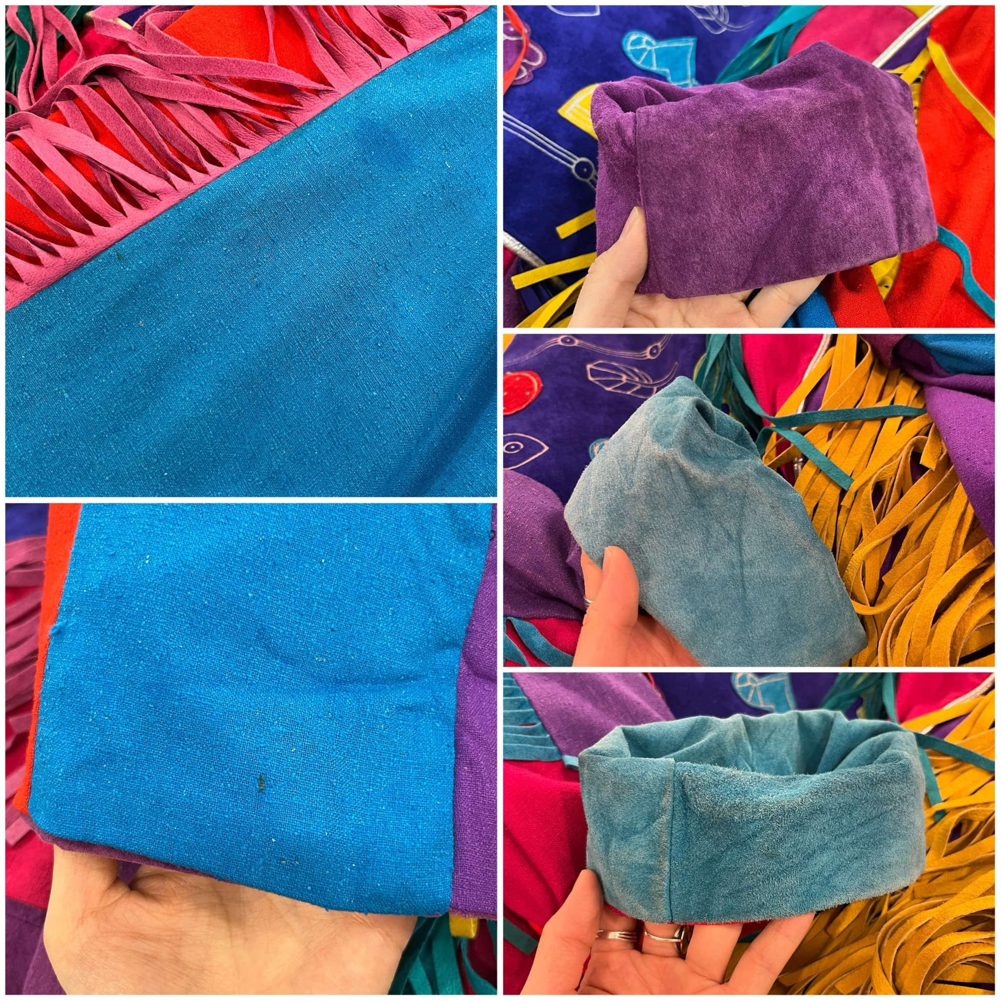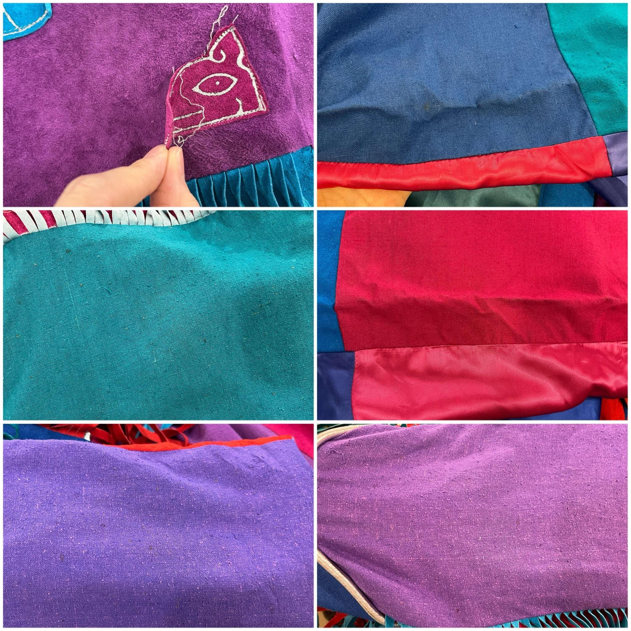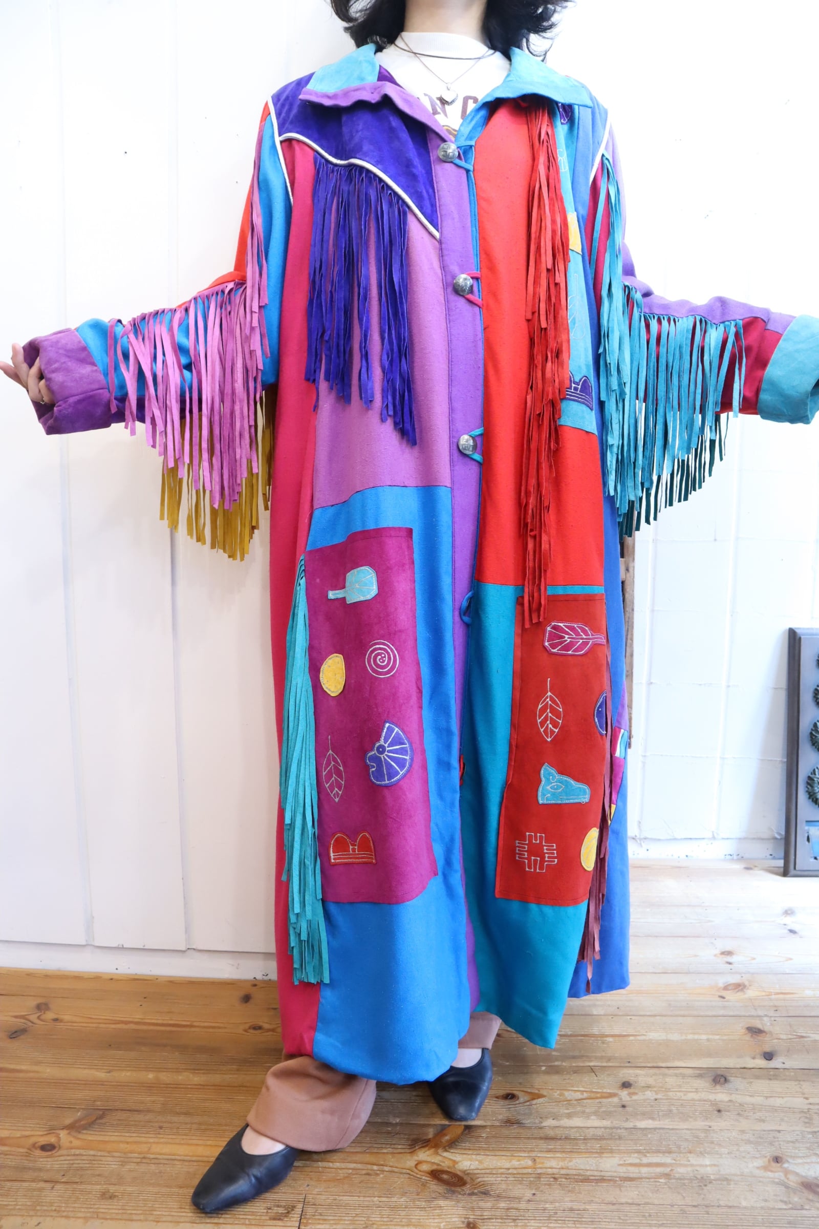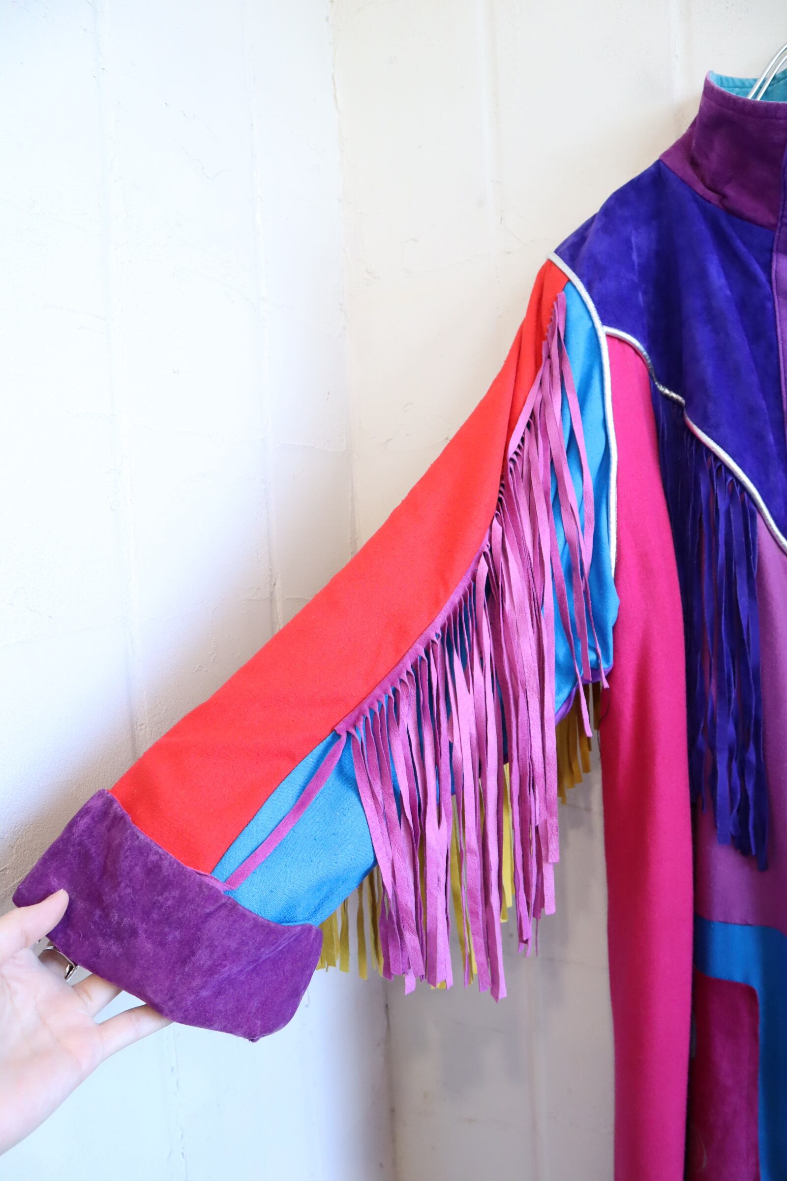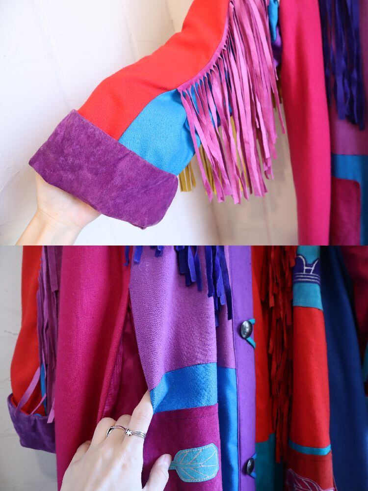 made in USA colorful leather switch fringe patchwork coat [l-4082]