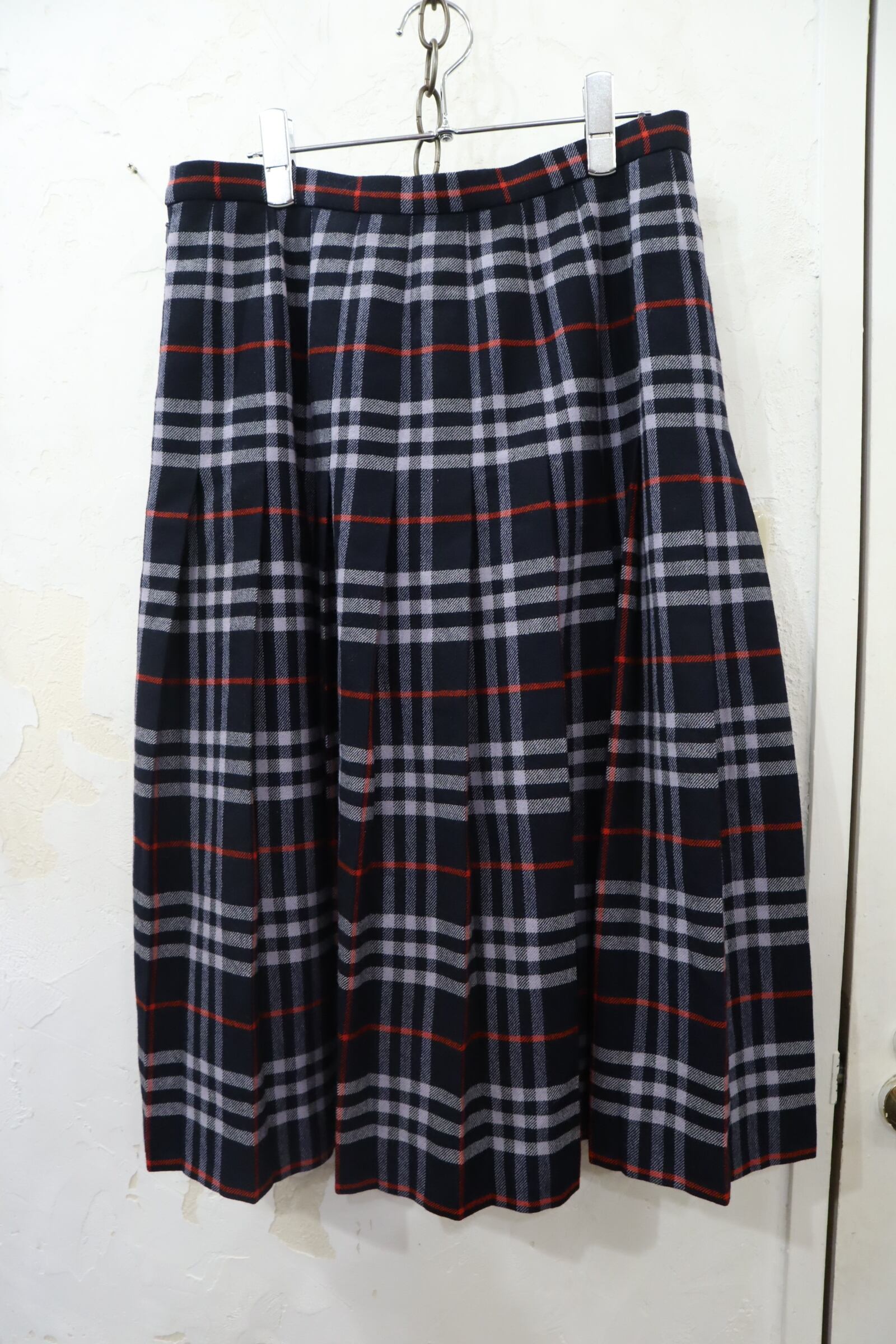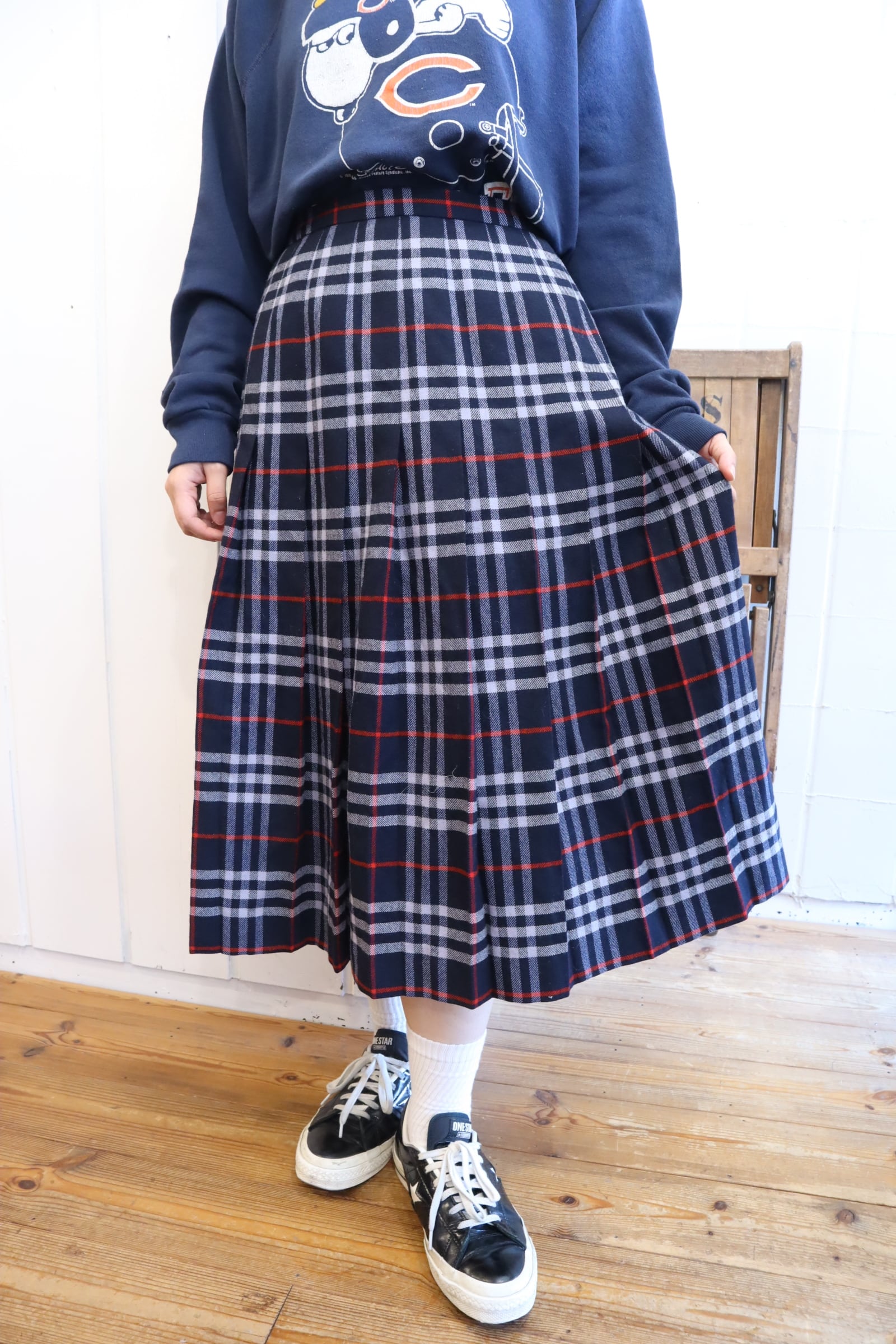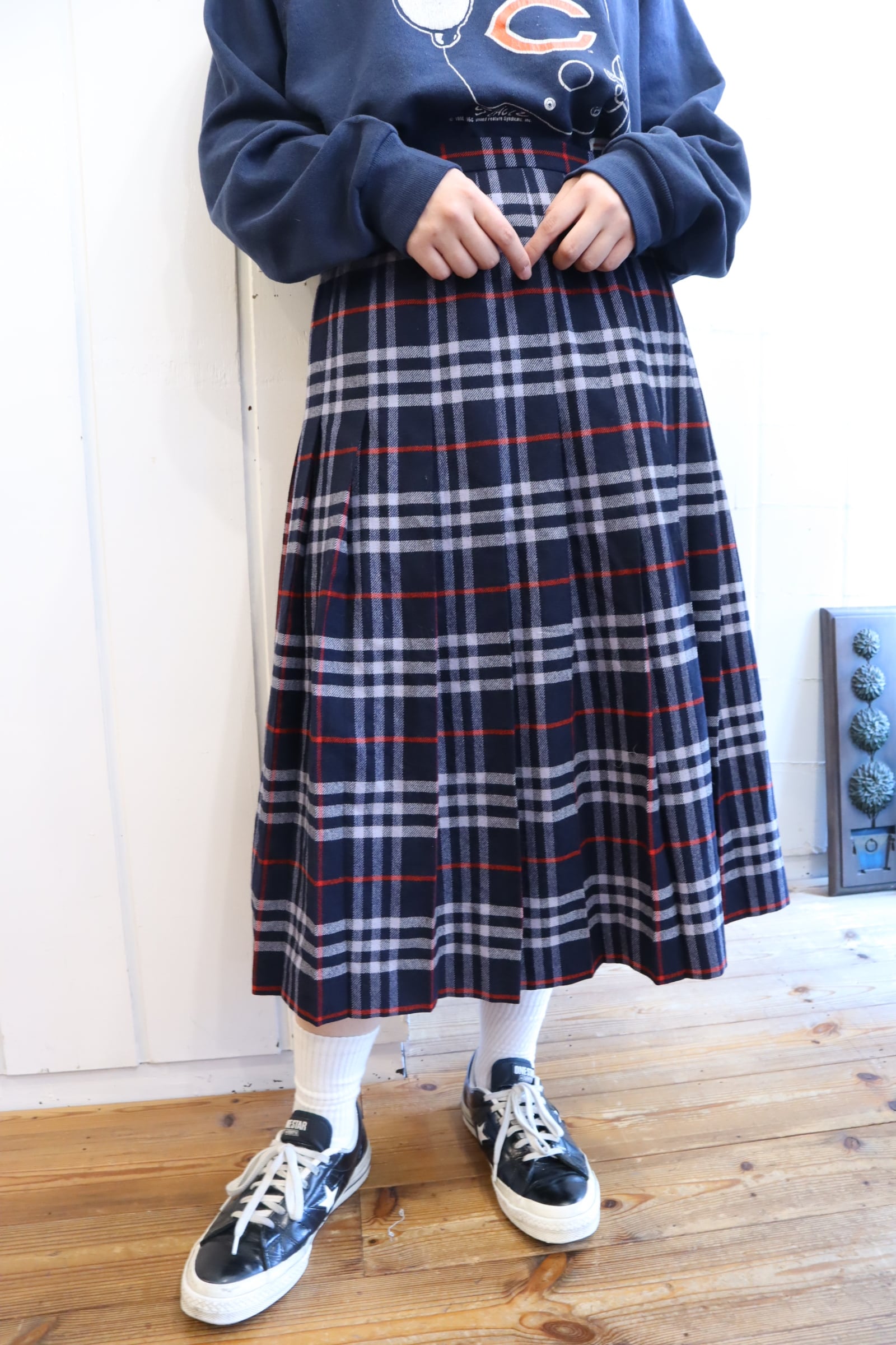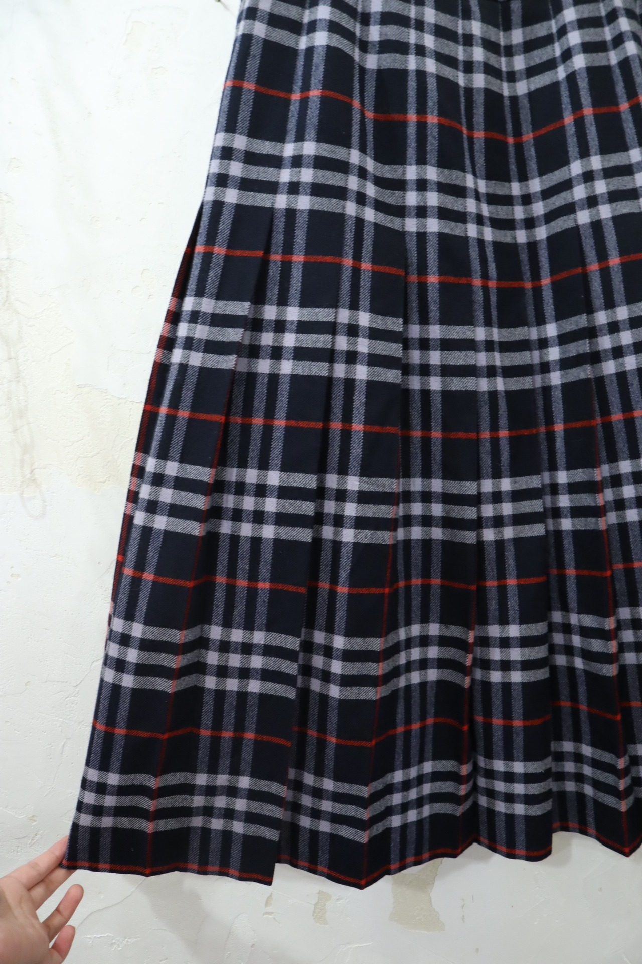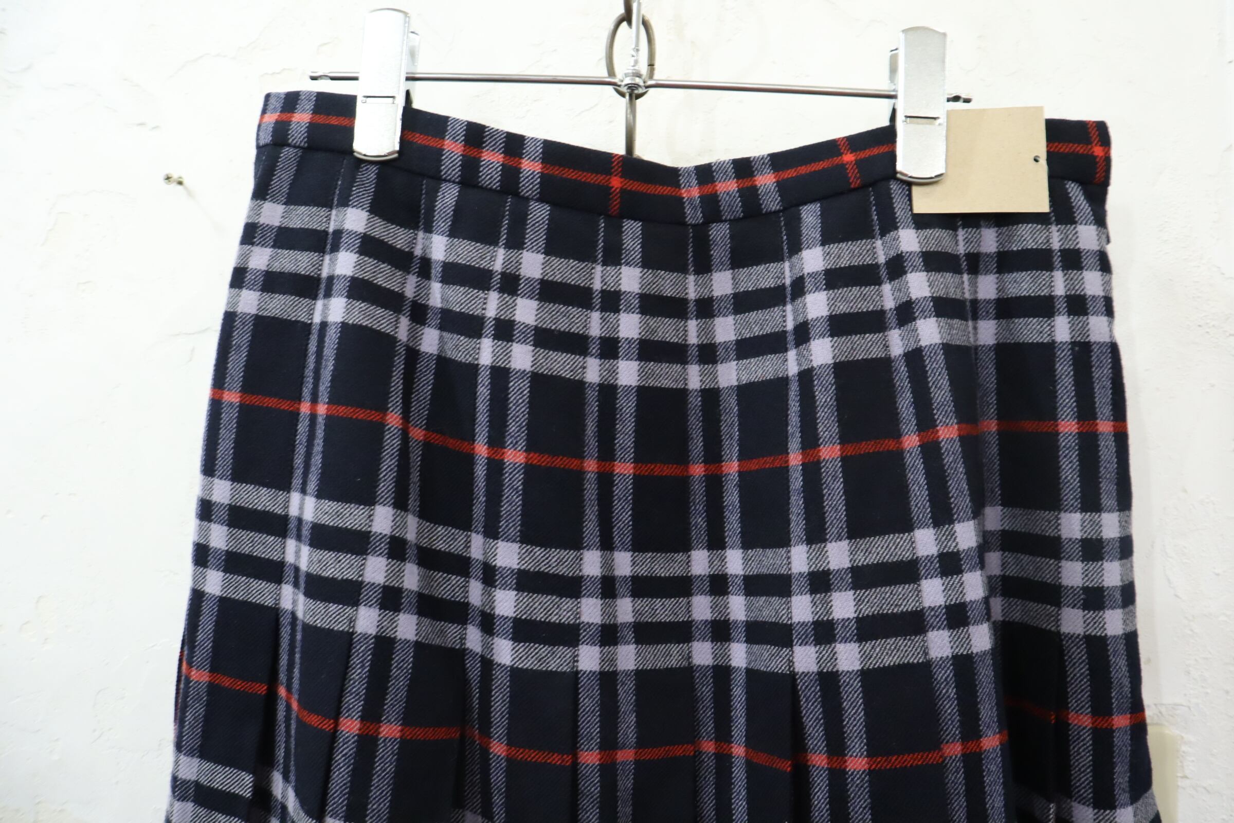 Burberry navy×red×gray plaid pleats wool skirt [k-4084]