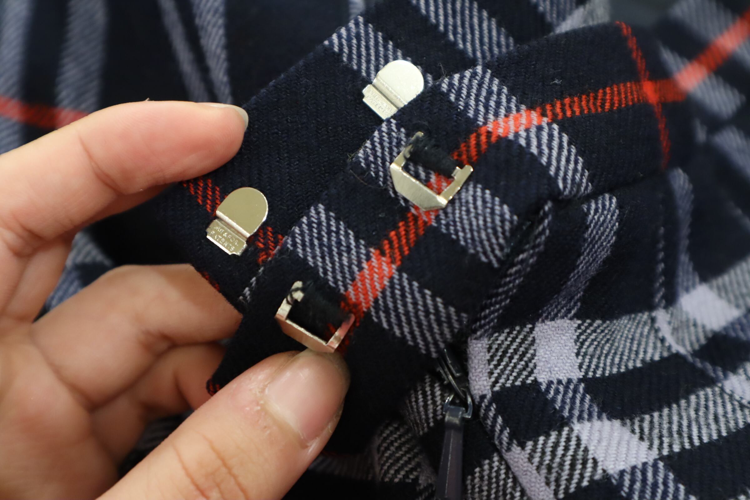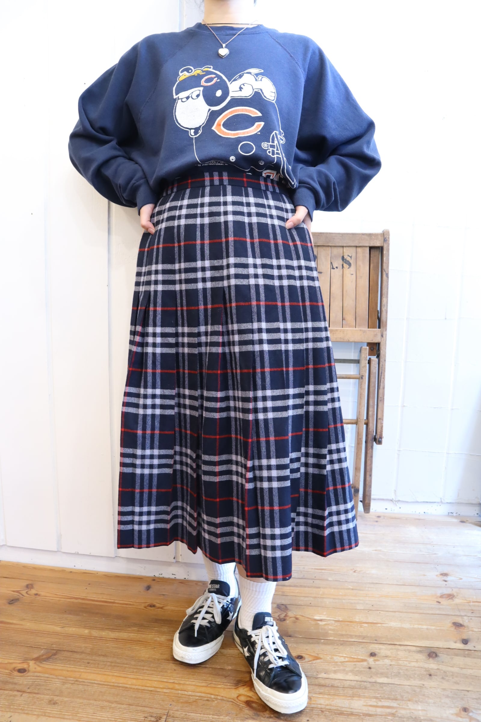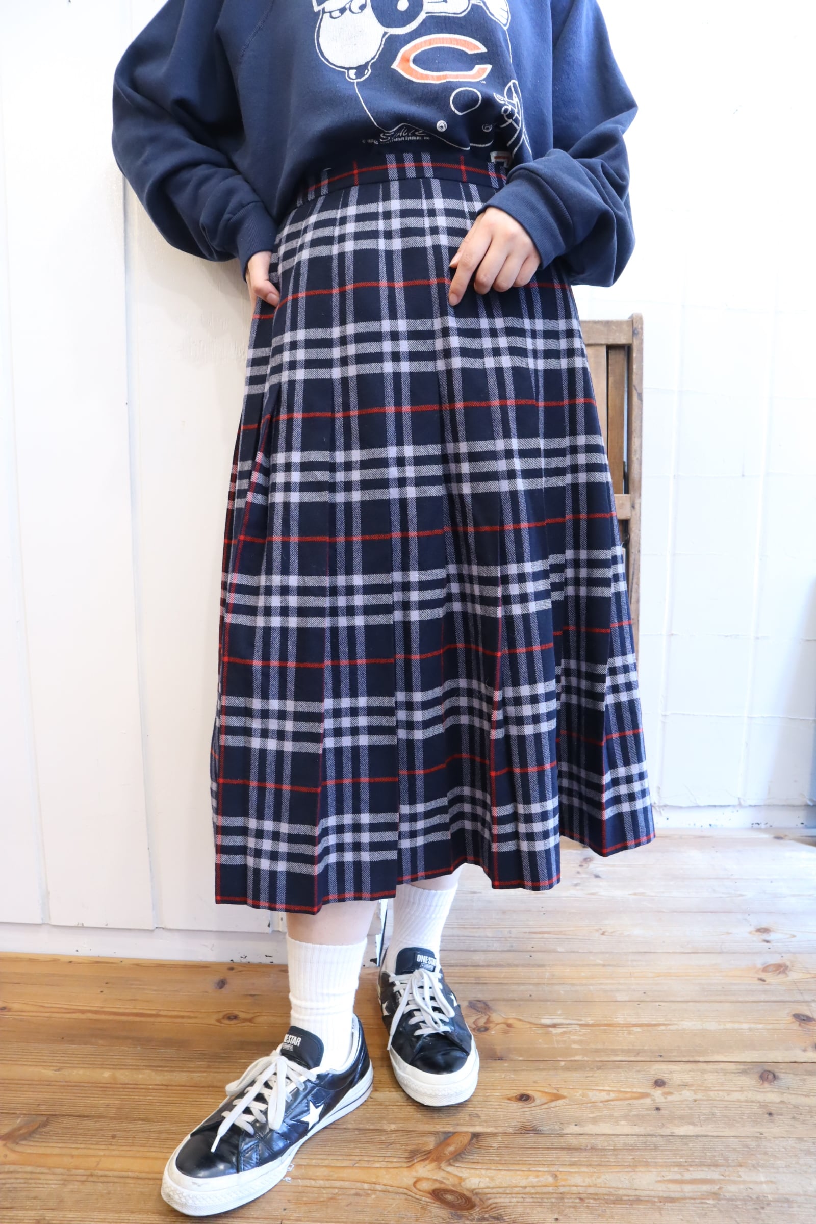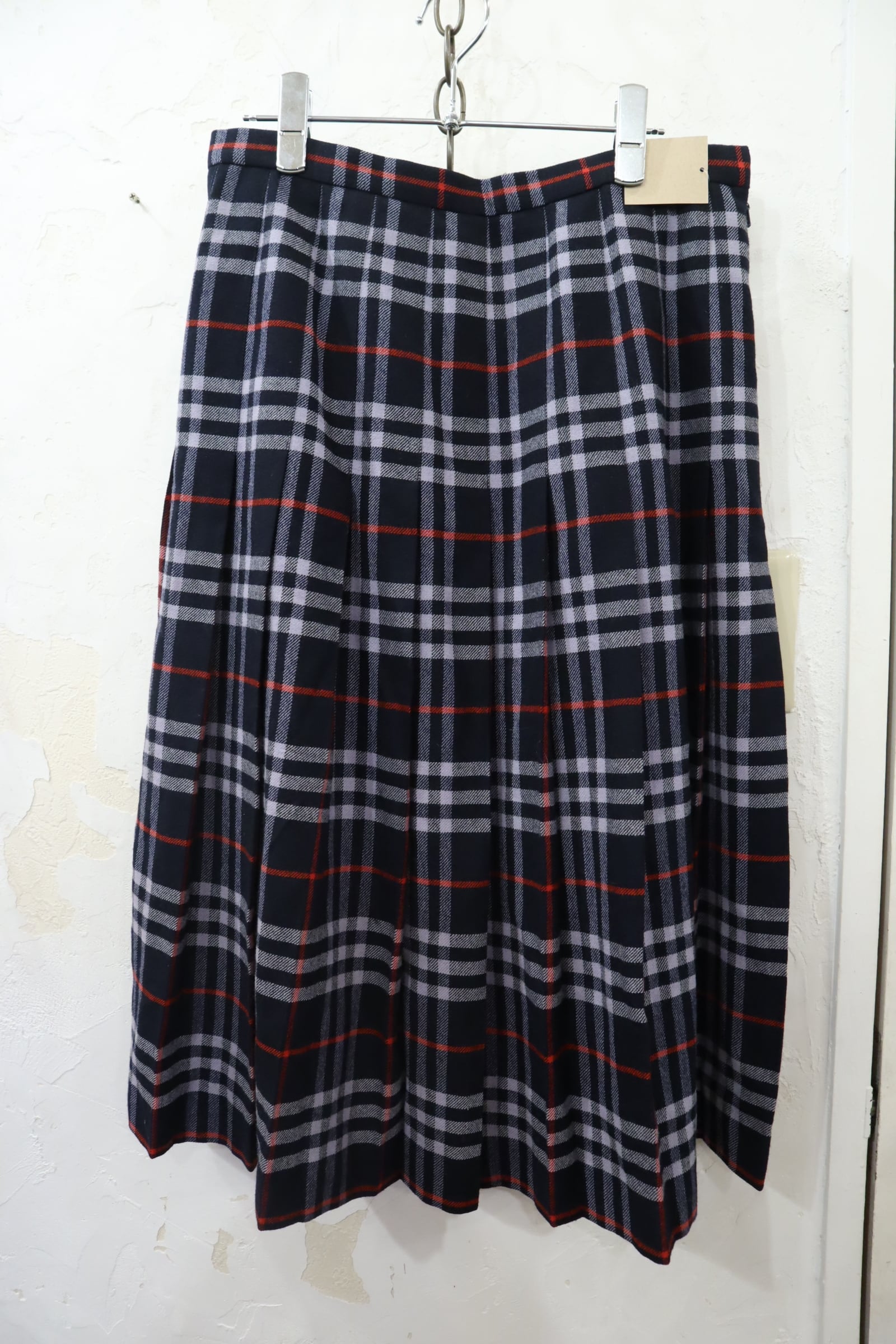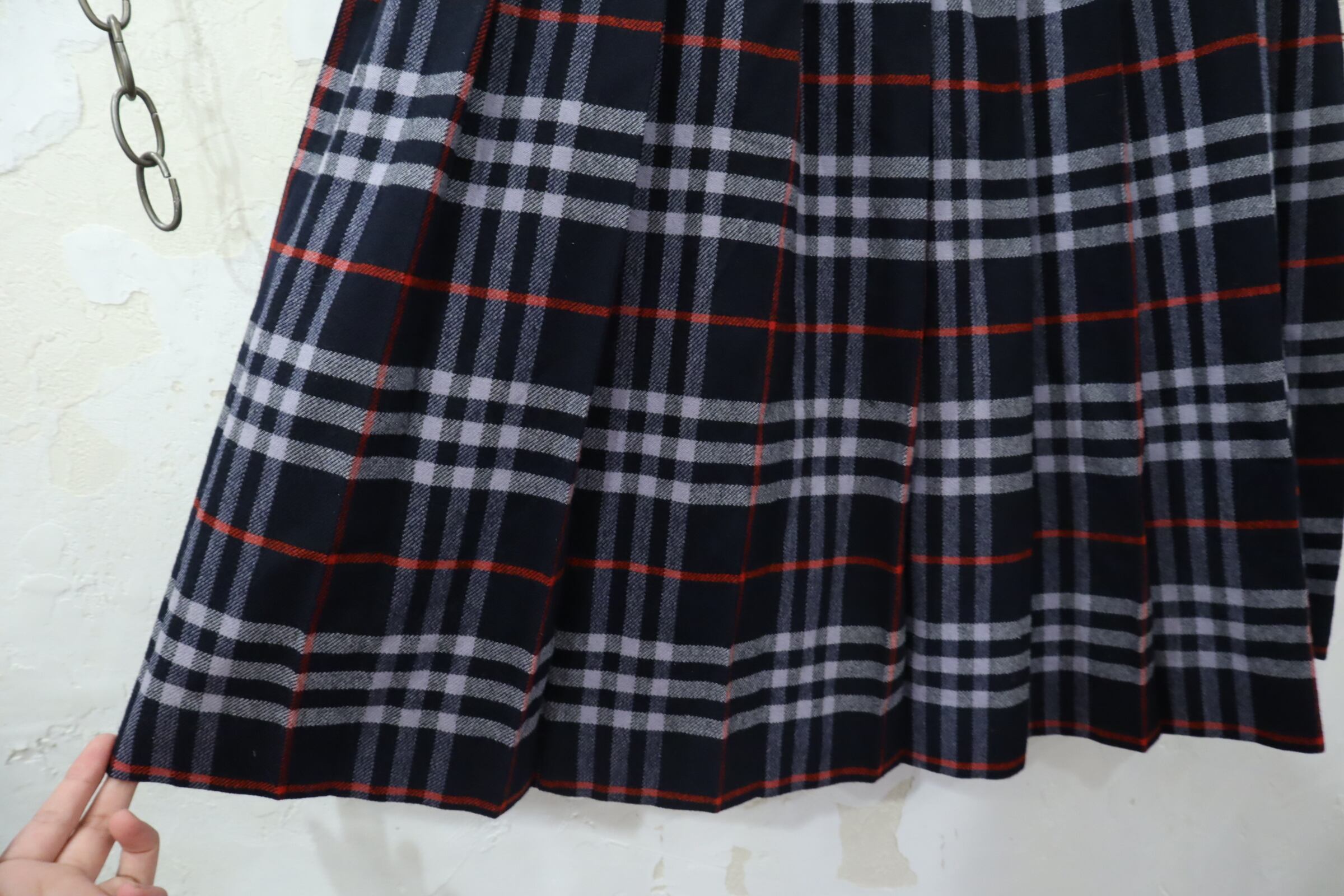 Burberry navy×red×gray plaid pleats wool skirt [k-4084]
