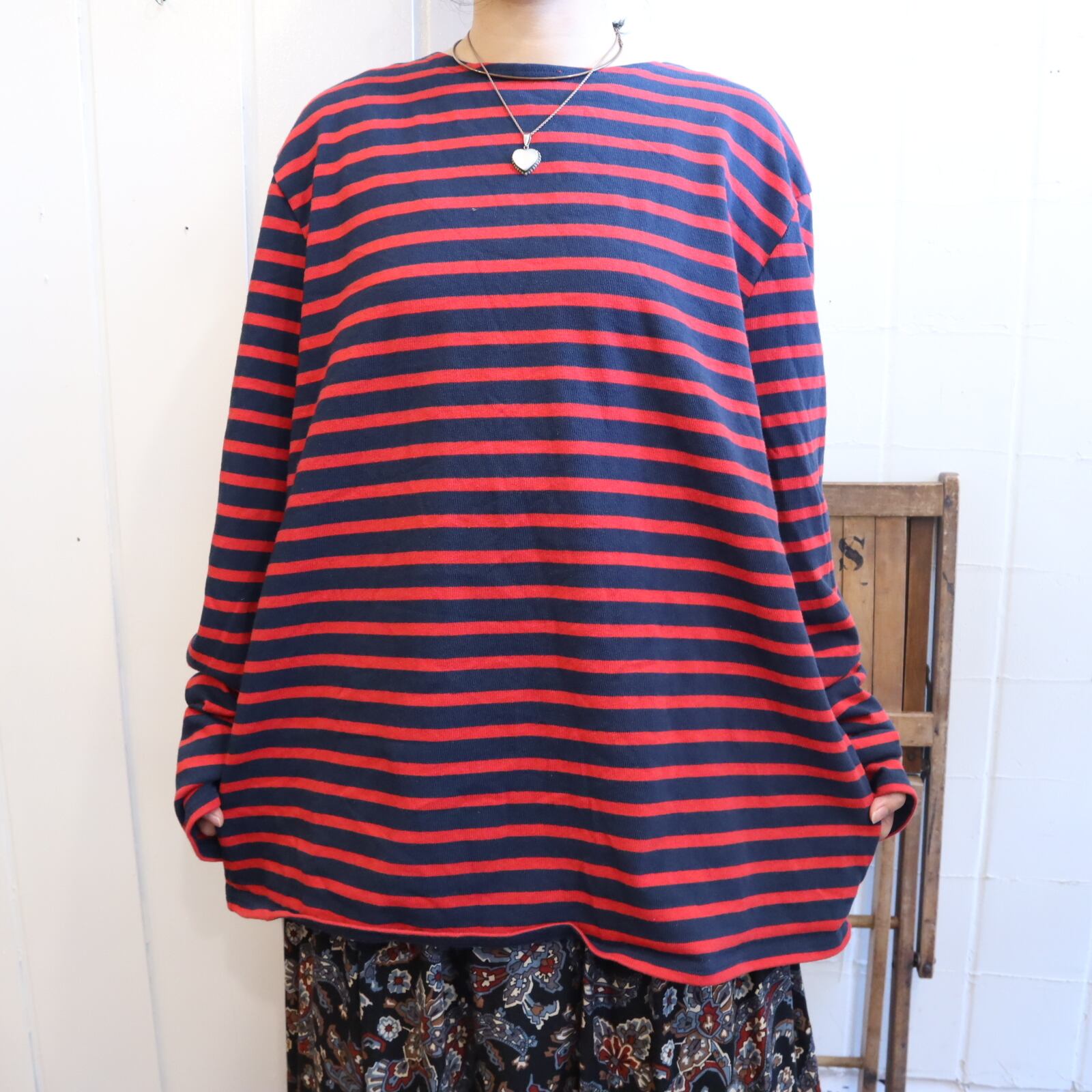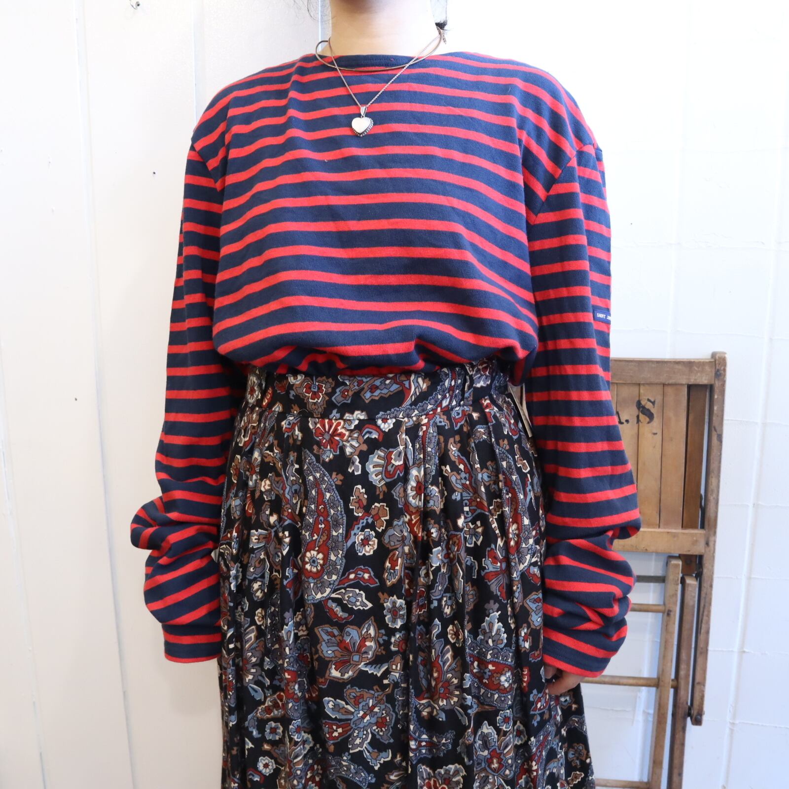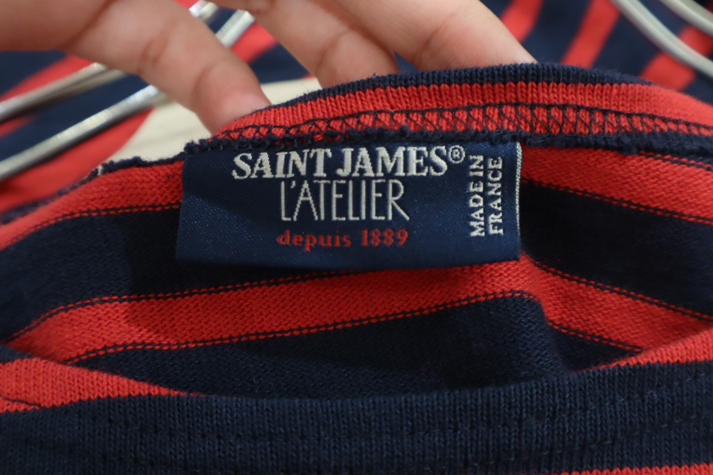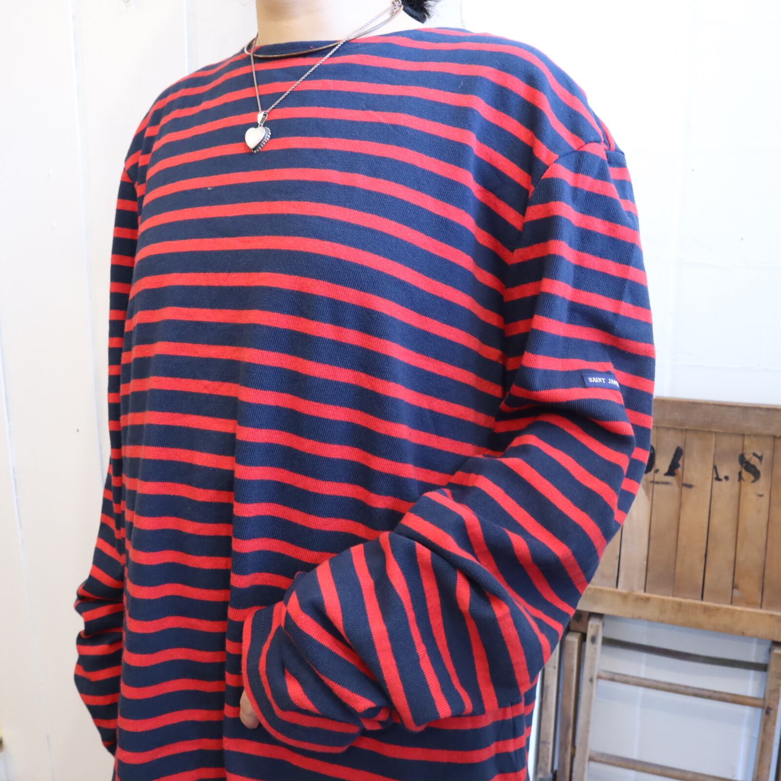 SAINT JAMES red×navy border tops [k-4086]