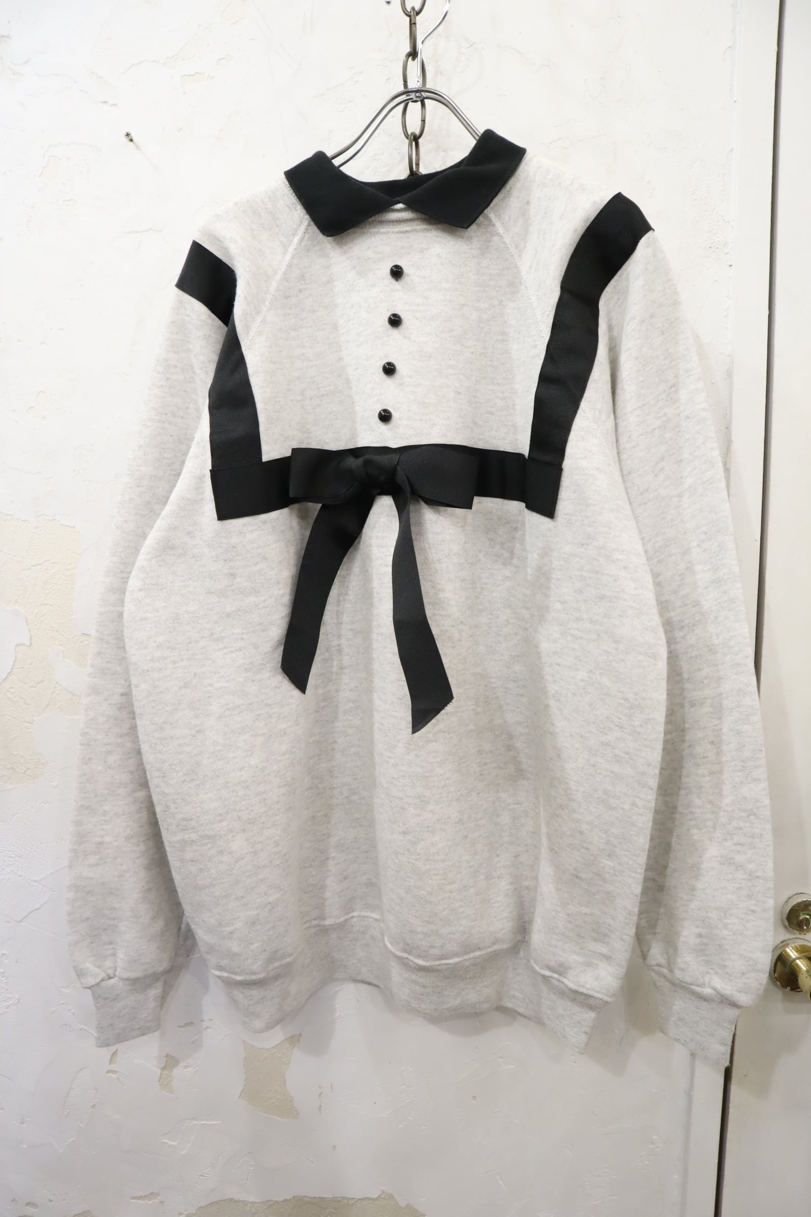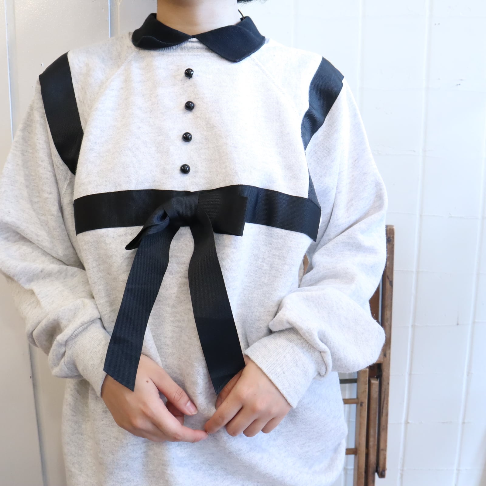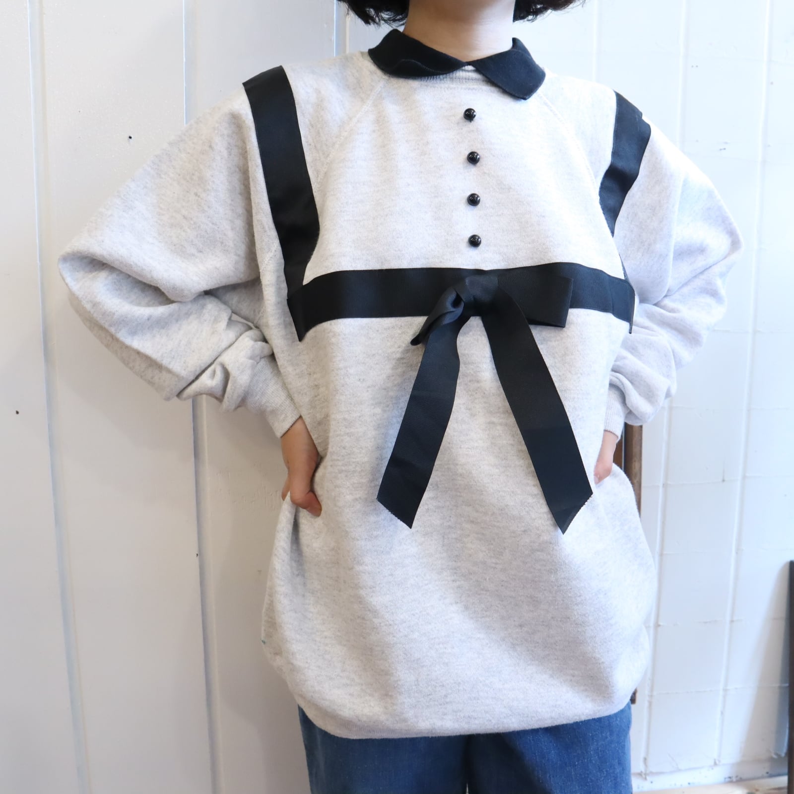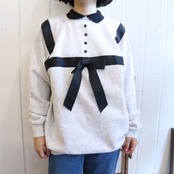 リボンや襟の付いたデザインが個性的で可愛いスウェットです。