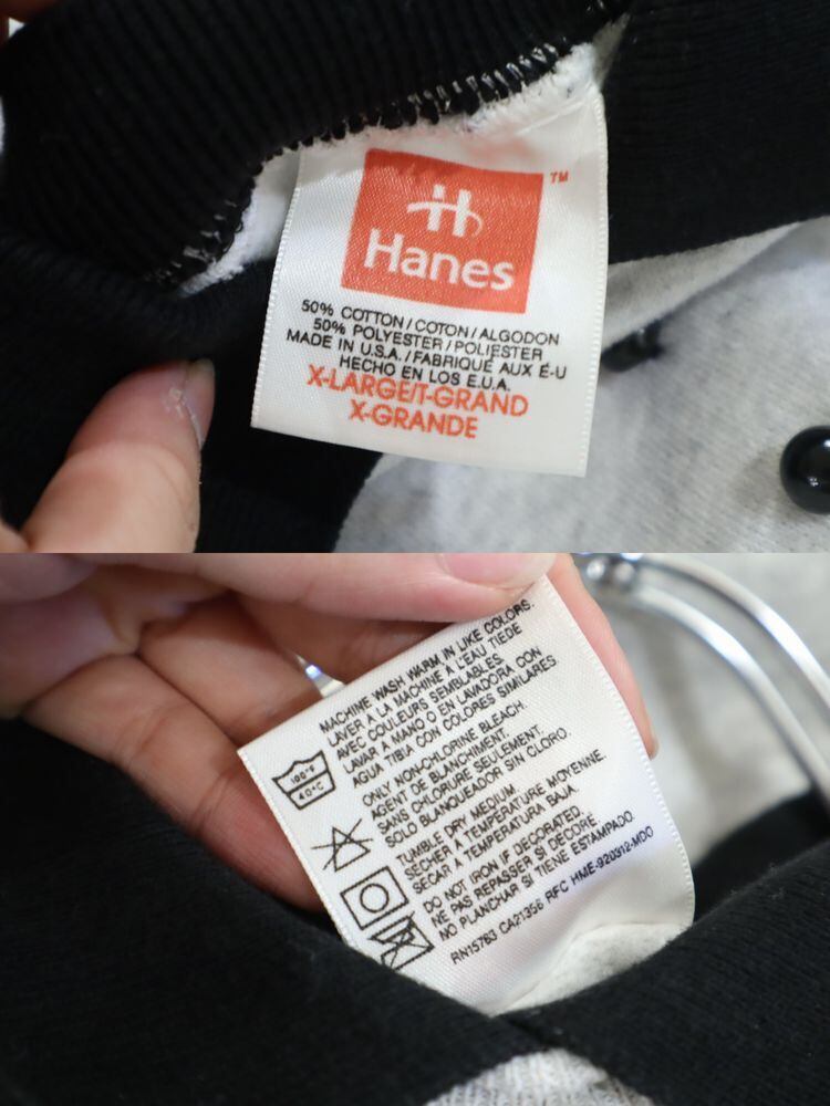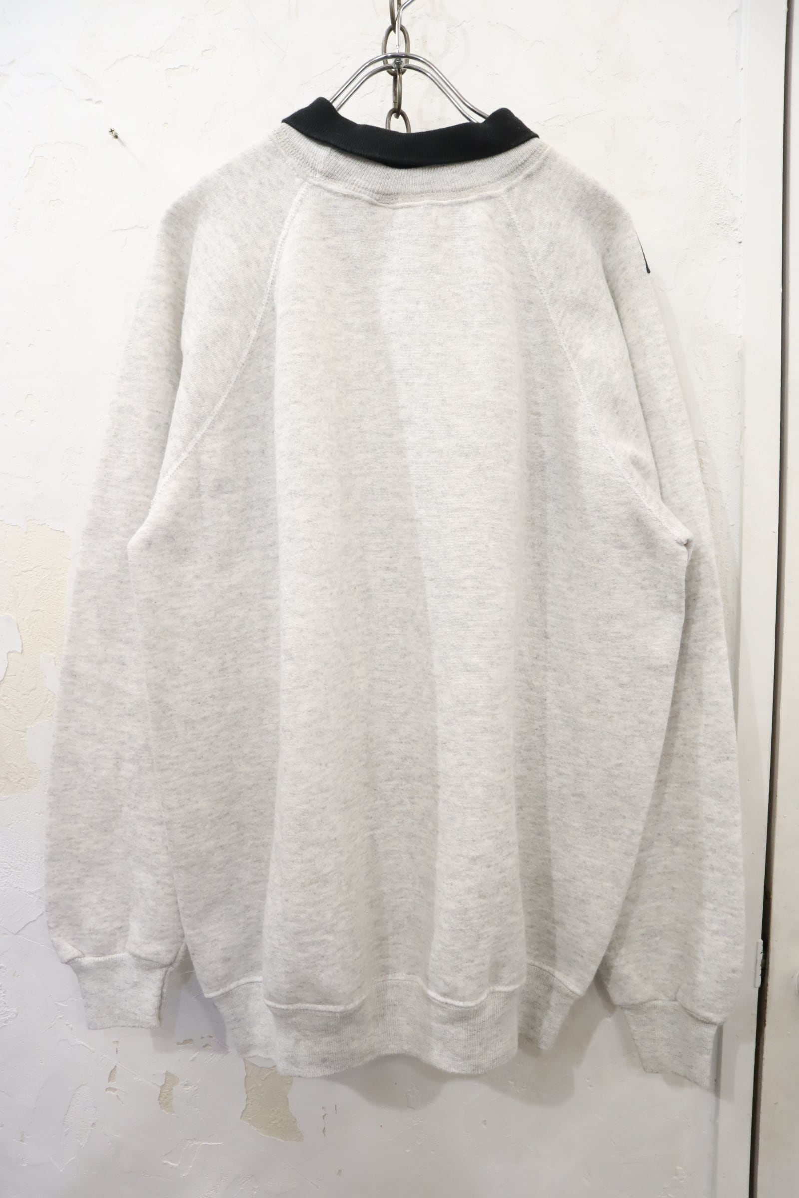 90s Hanes lightgray×black collar&ribbon sweat [l-4105]