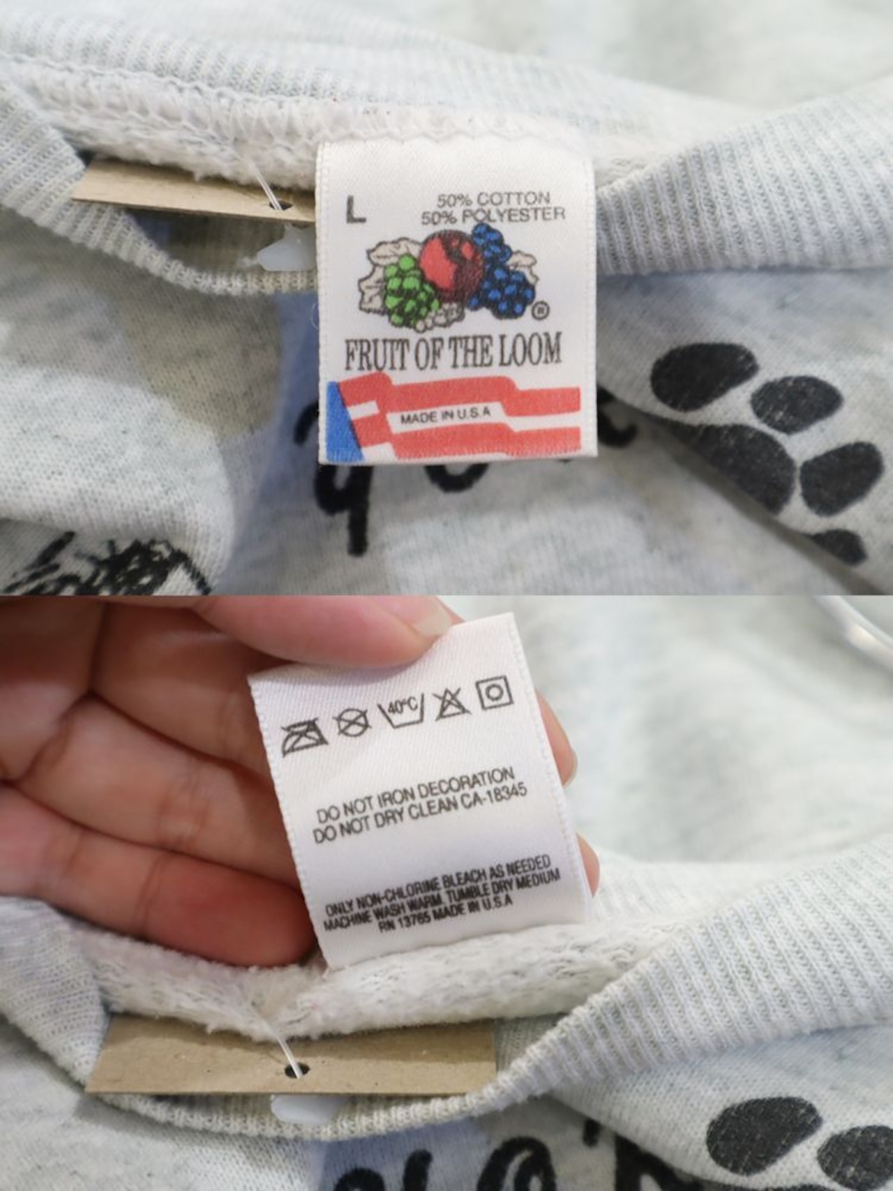 90s FRUIT OF THE LOOM lightgray×black dog sweat [l-4106]
