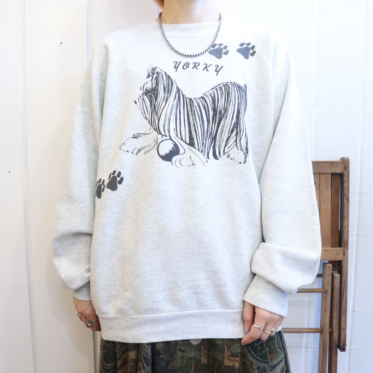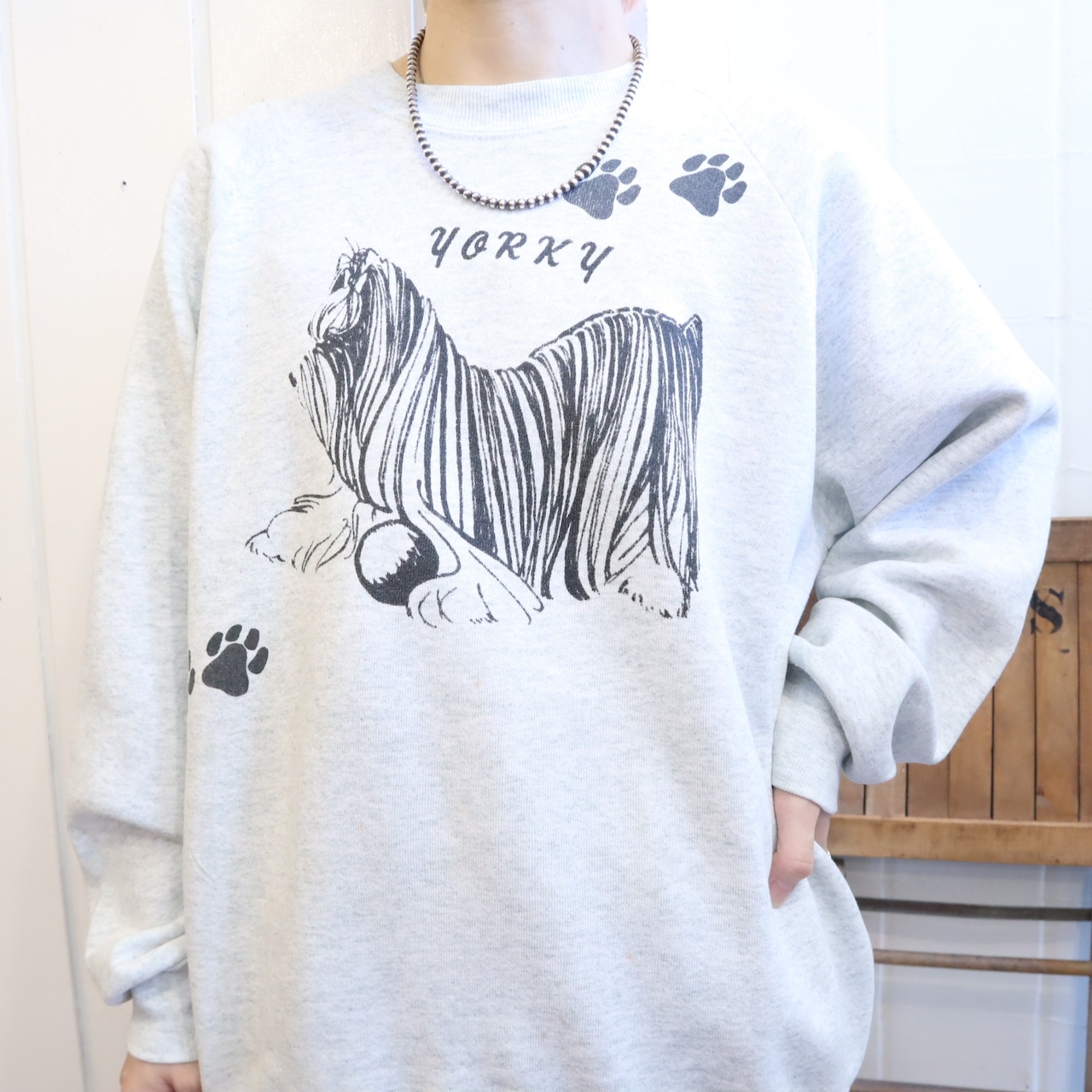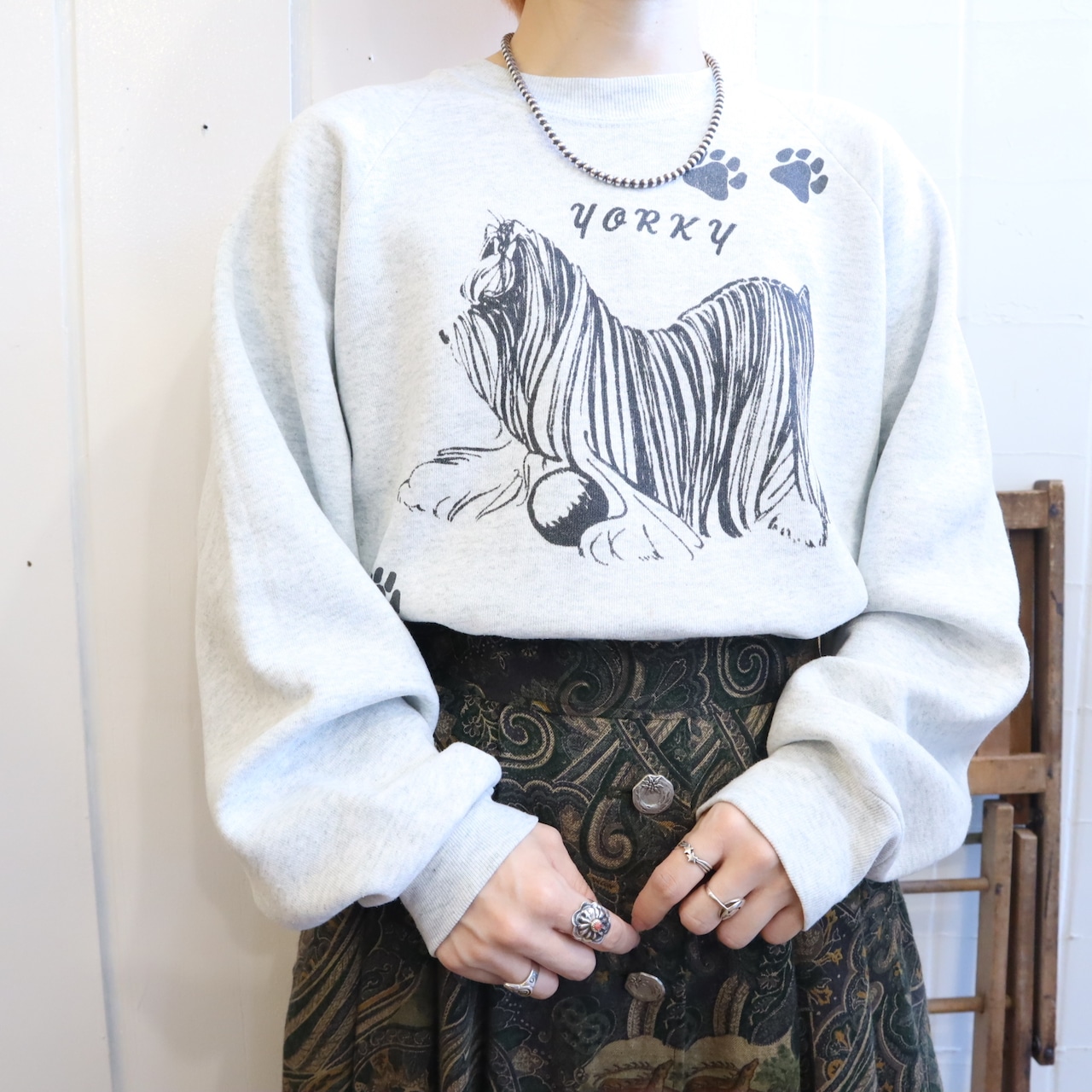 ペンで描いたようなタッチのヨークシャーテリアが雰囲気があって可愛いスウェット。