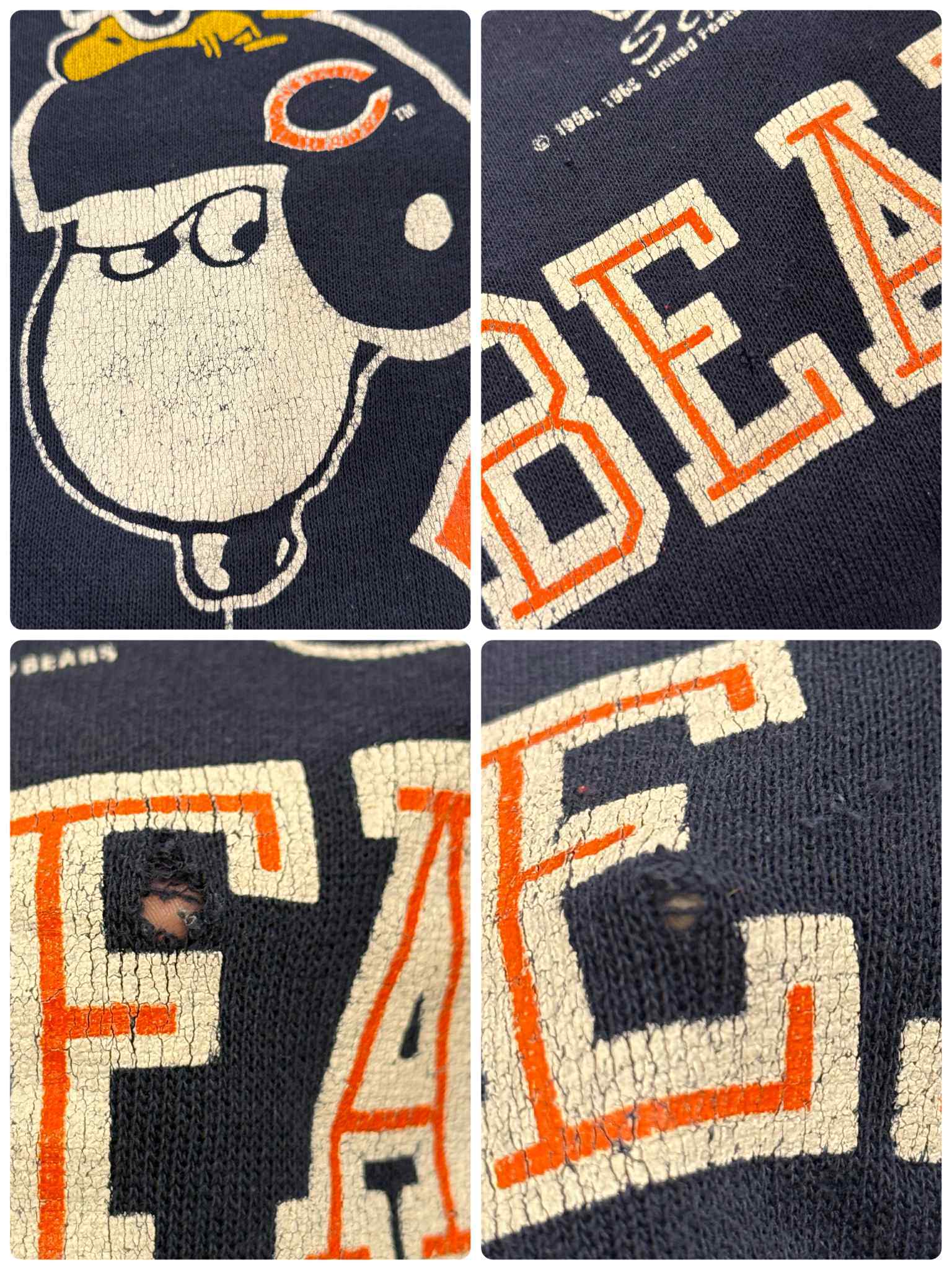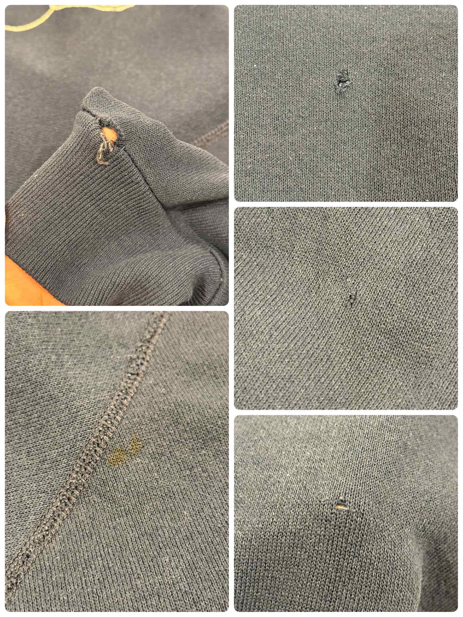 ボディに一部シミ、いくつか小穴・キズ、プリントにひび割れがございますが、古着の味として着て頂けるかと思います。