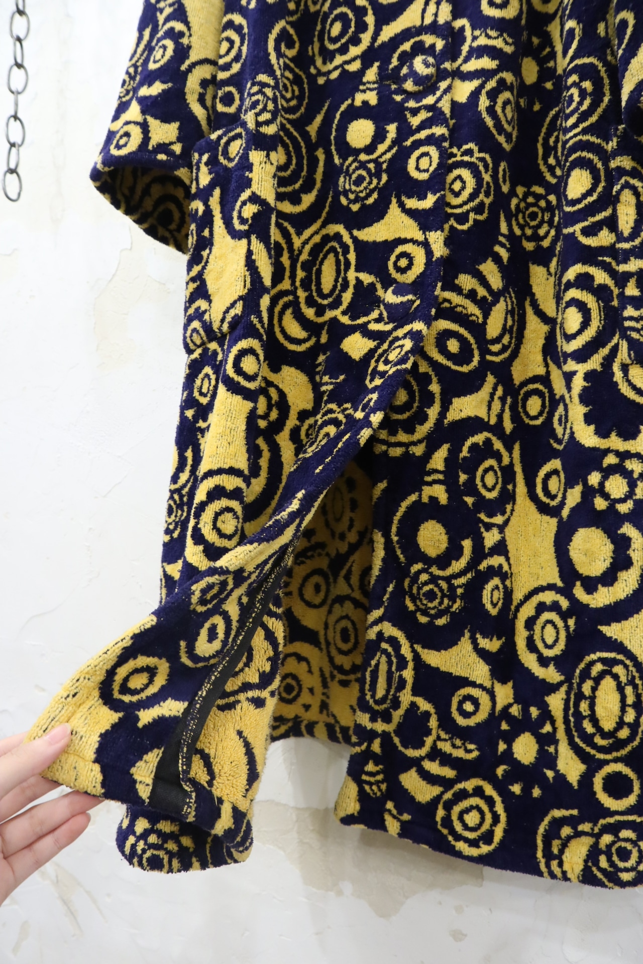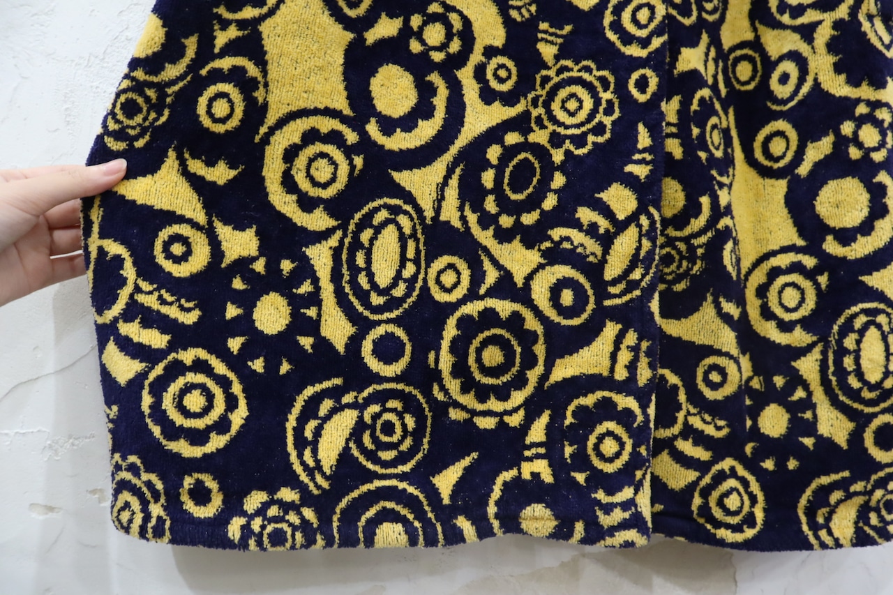 navy×yellow flower pattern pile gown [l-4111]