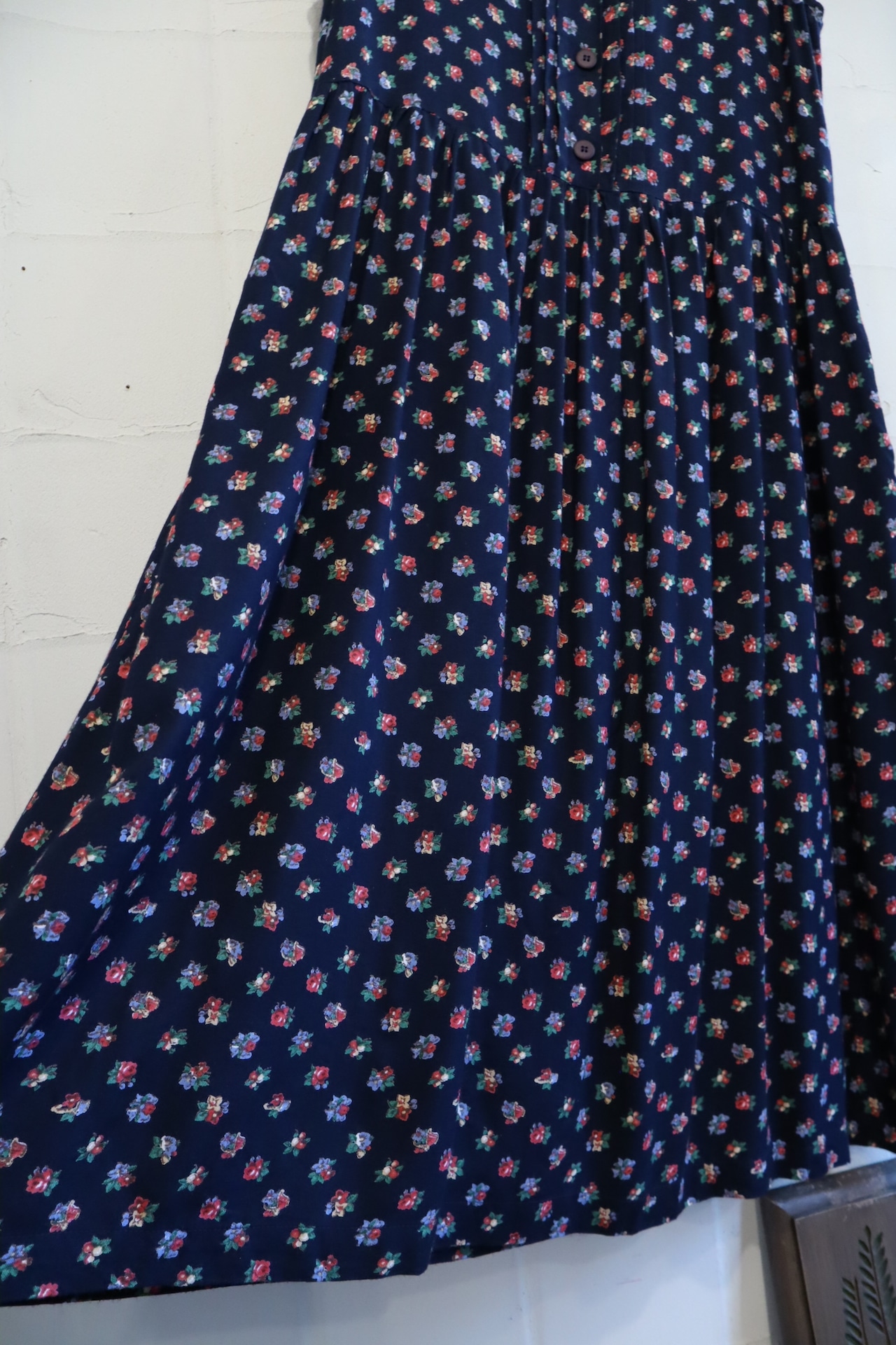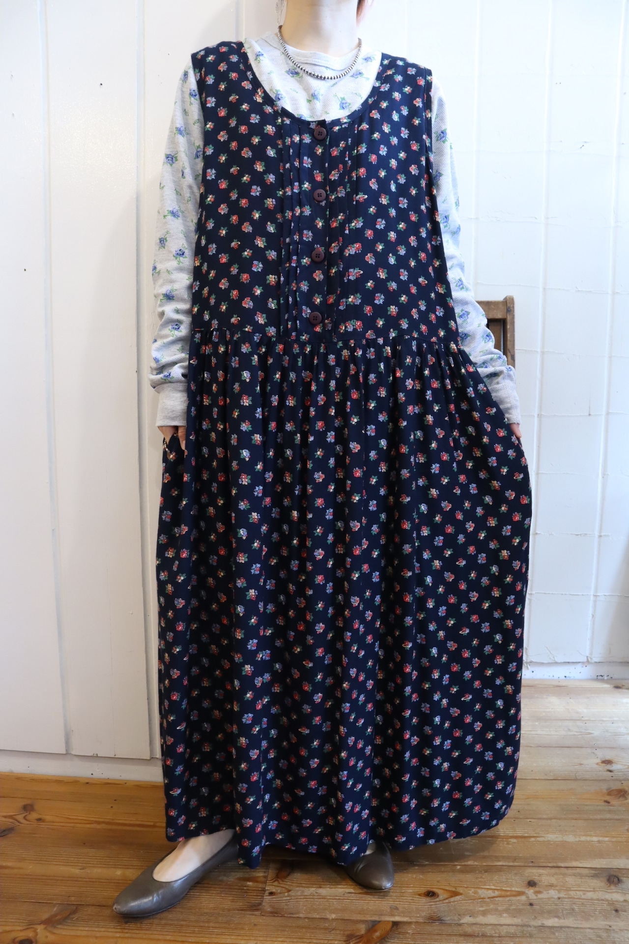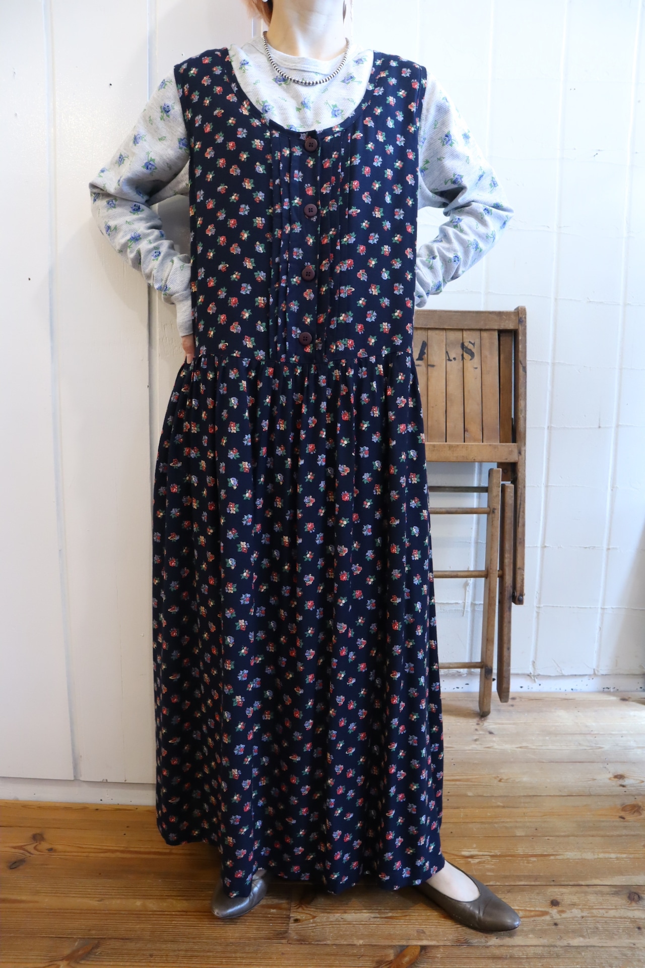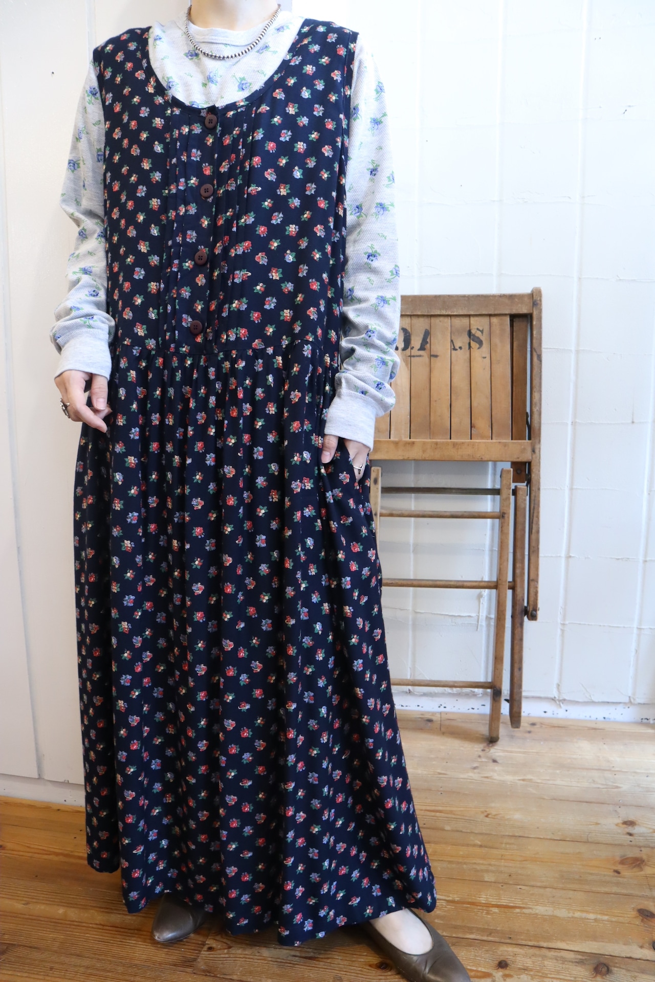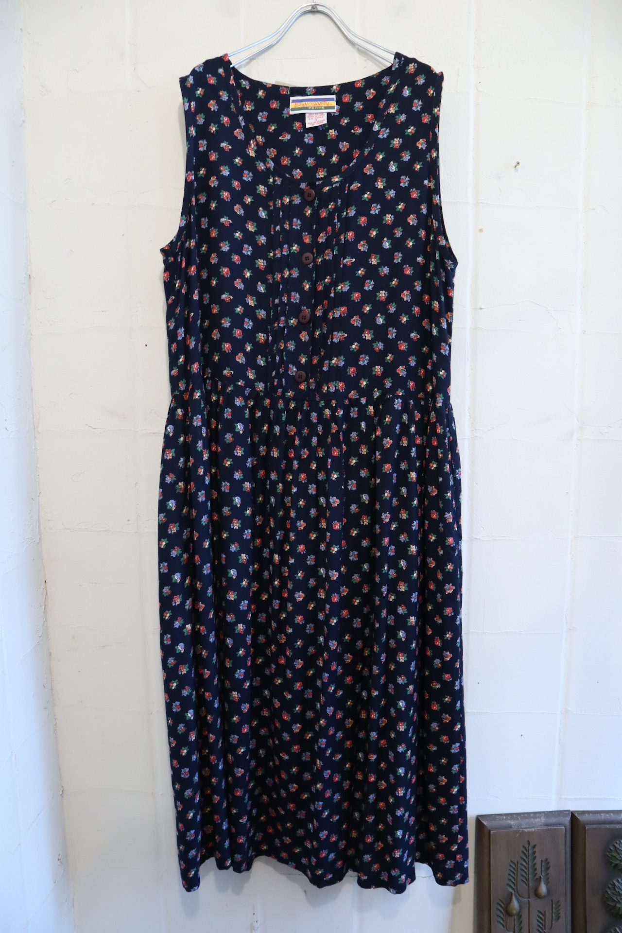 navy×pinkred front half button sleeveless rayon dress [l-4113]