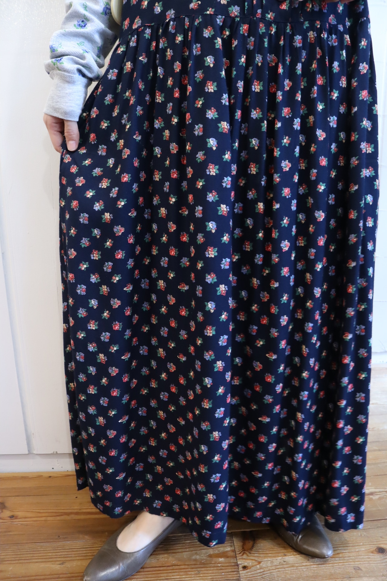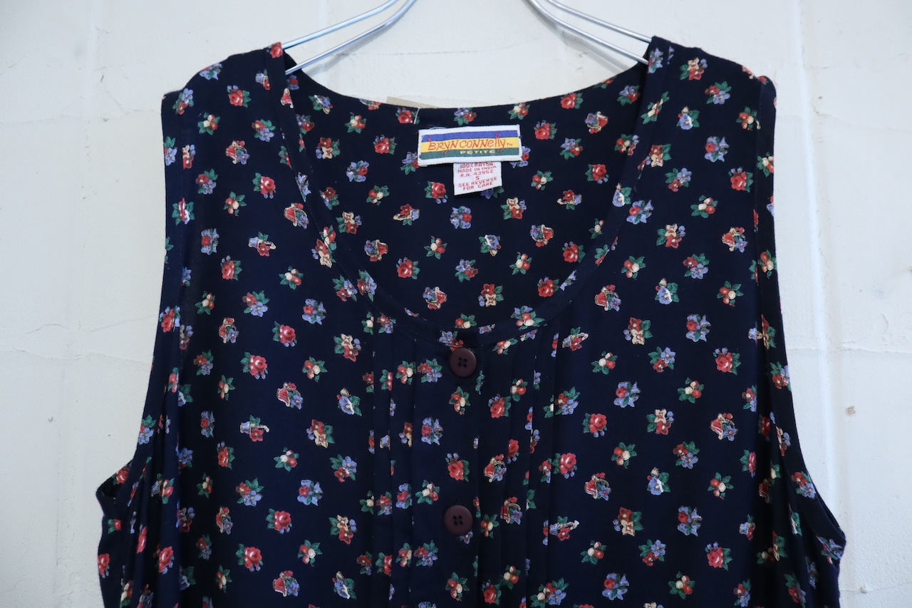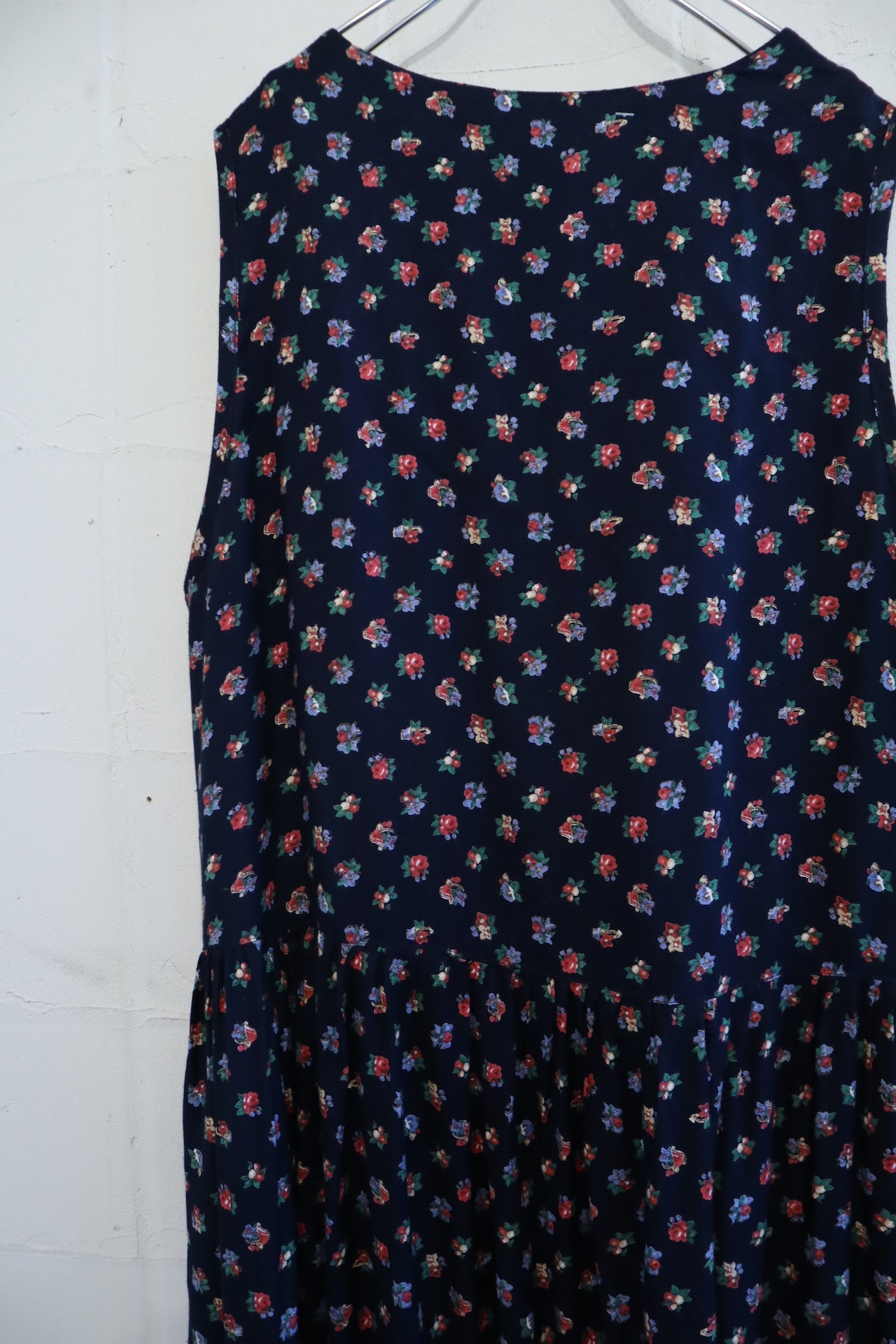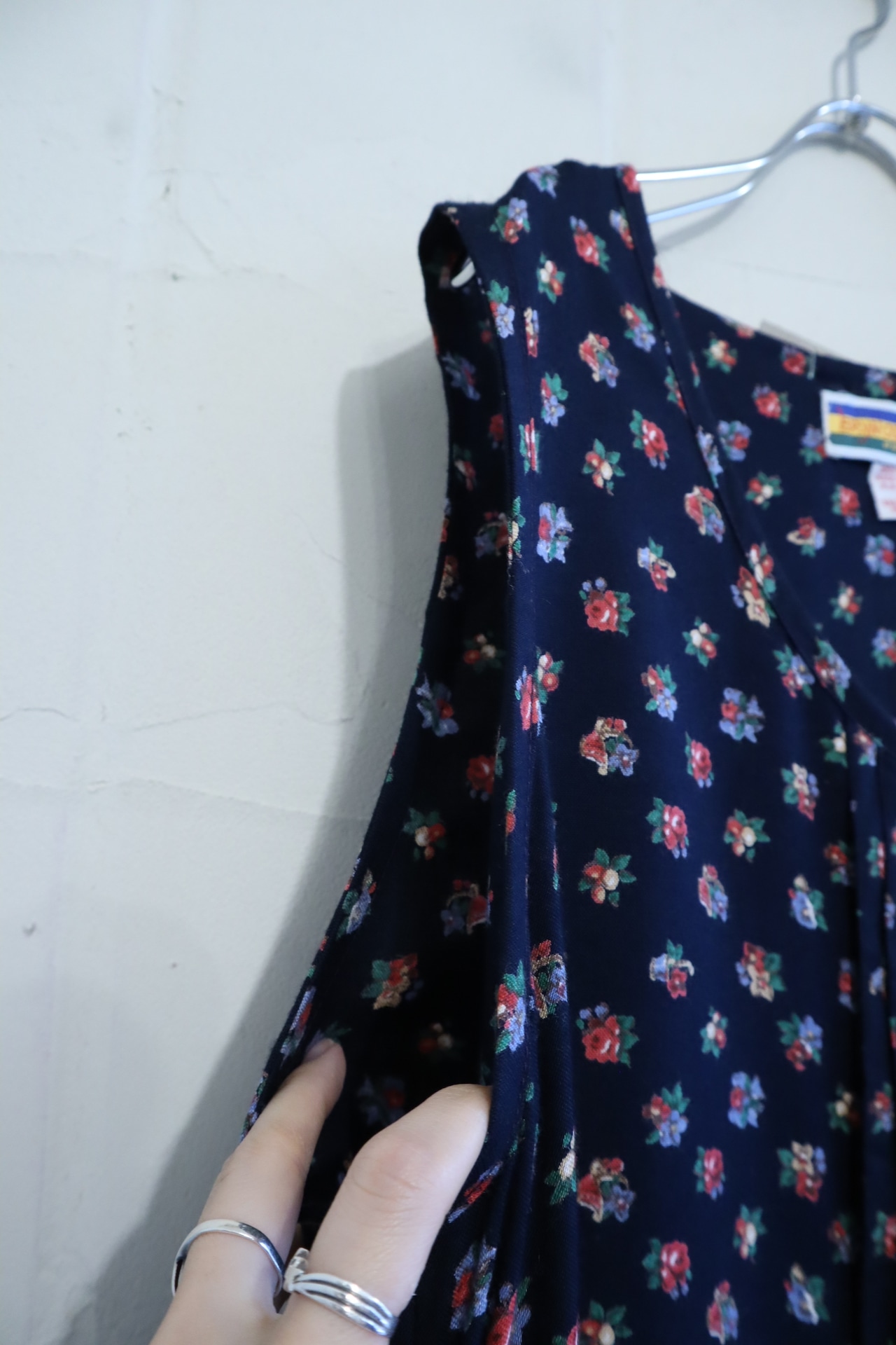 とろみのあるレーヨン素材でラフに着こなせるのが嬉しい花柄ノースリーブドレス。
