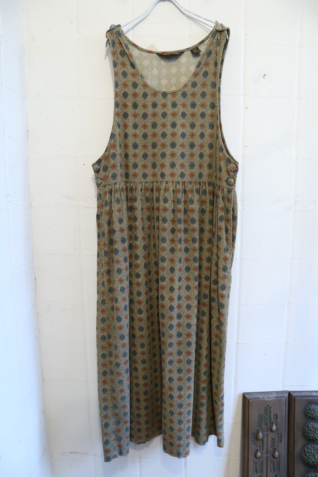 Eddie Bauer khaki×orange corduroy over dress [l-4114]