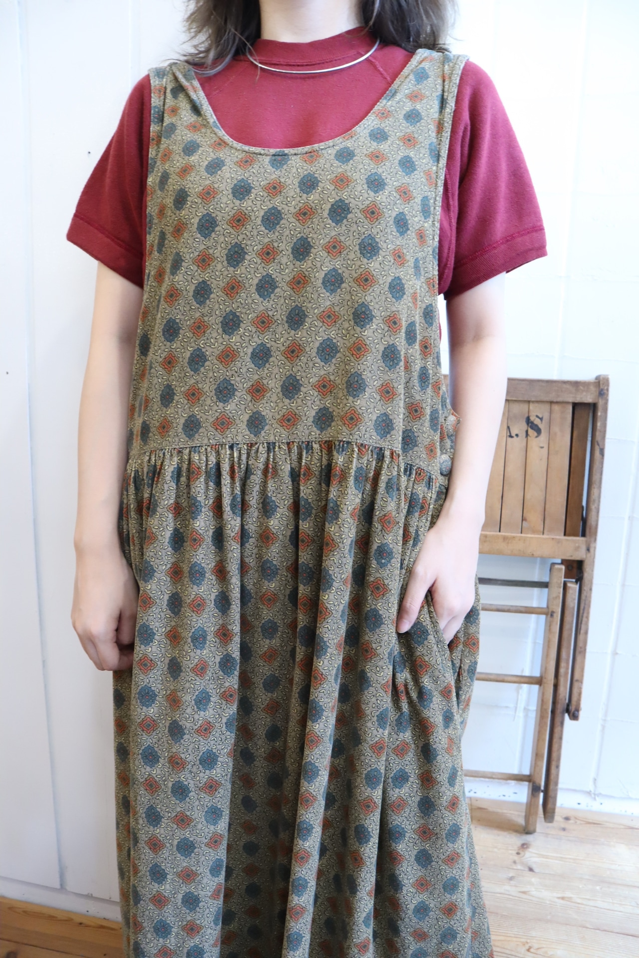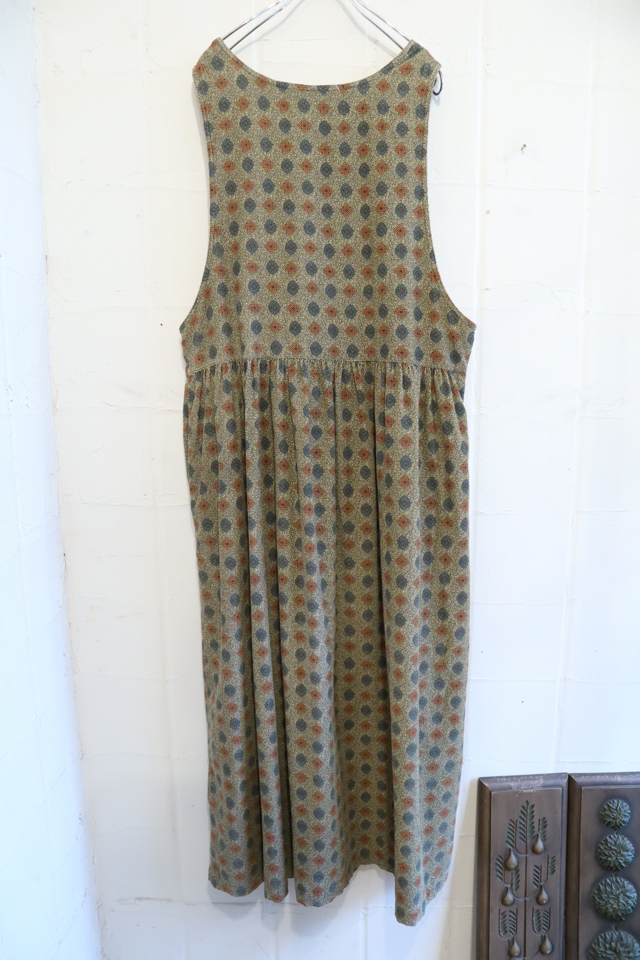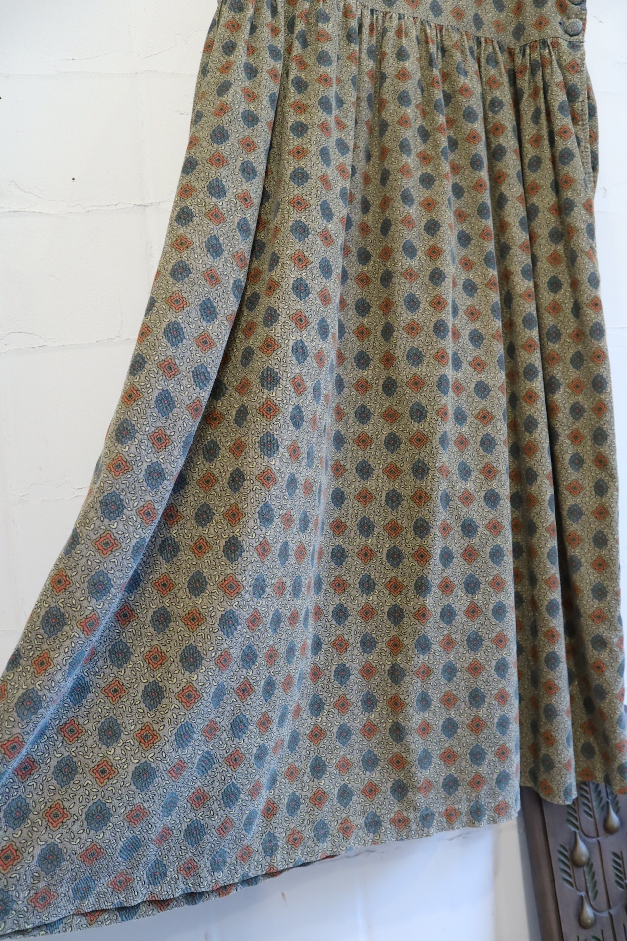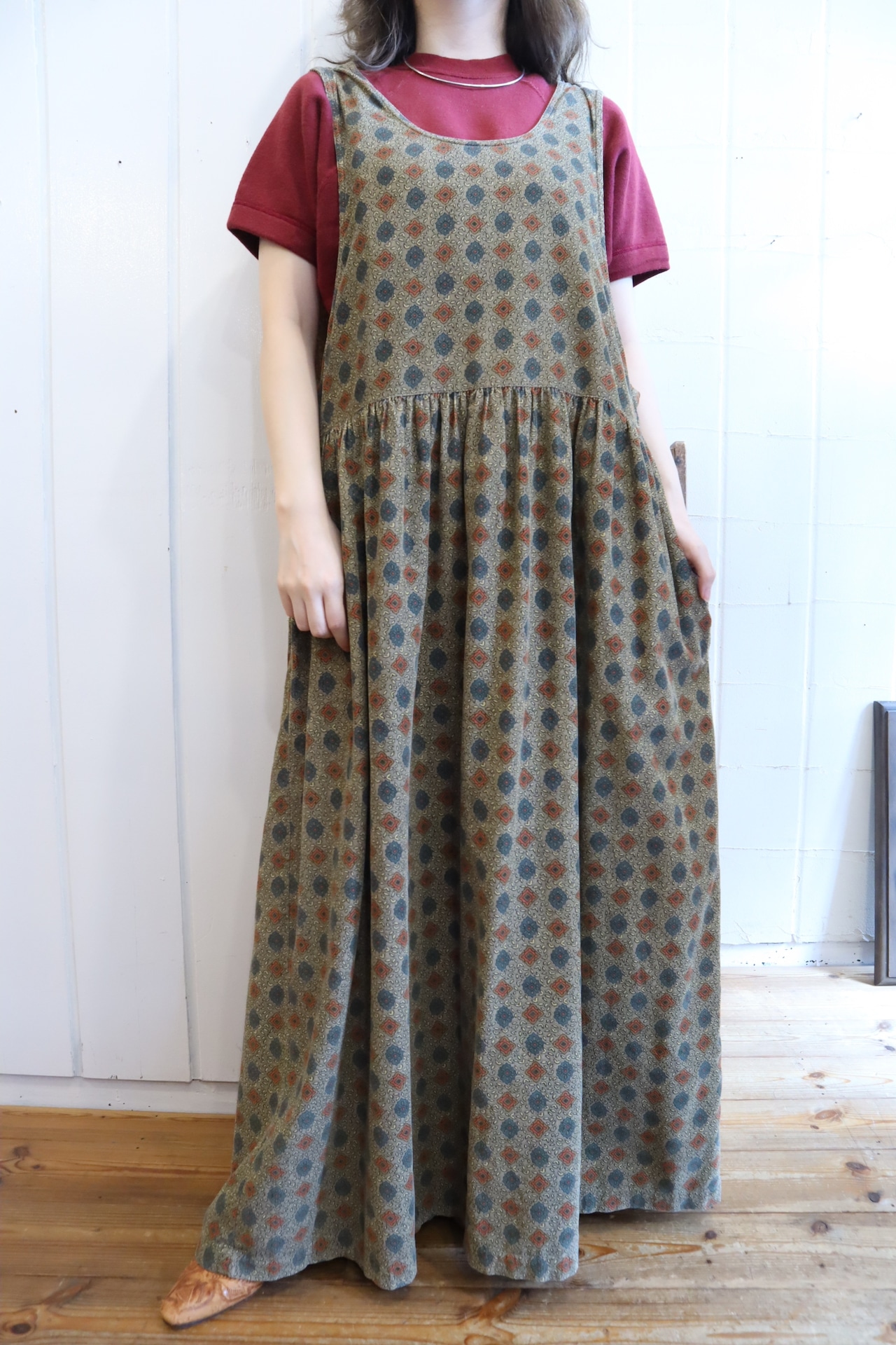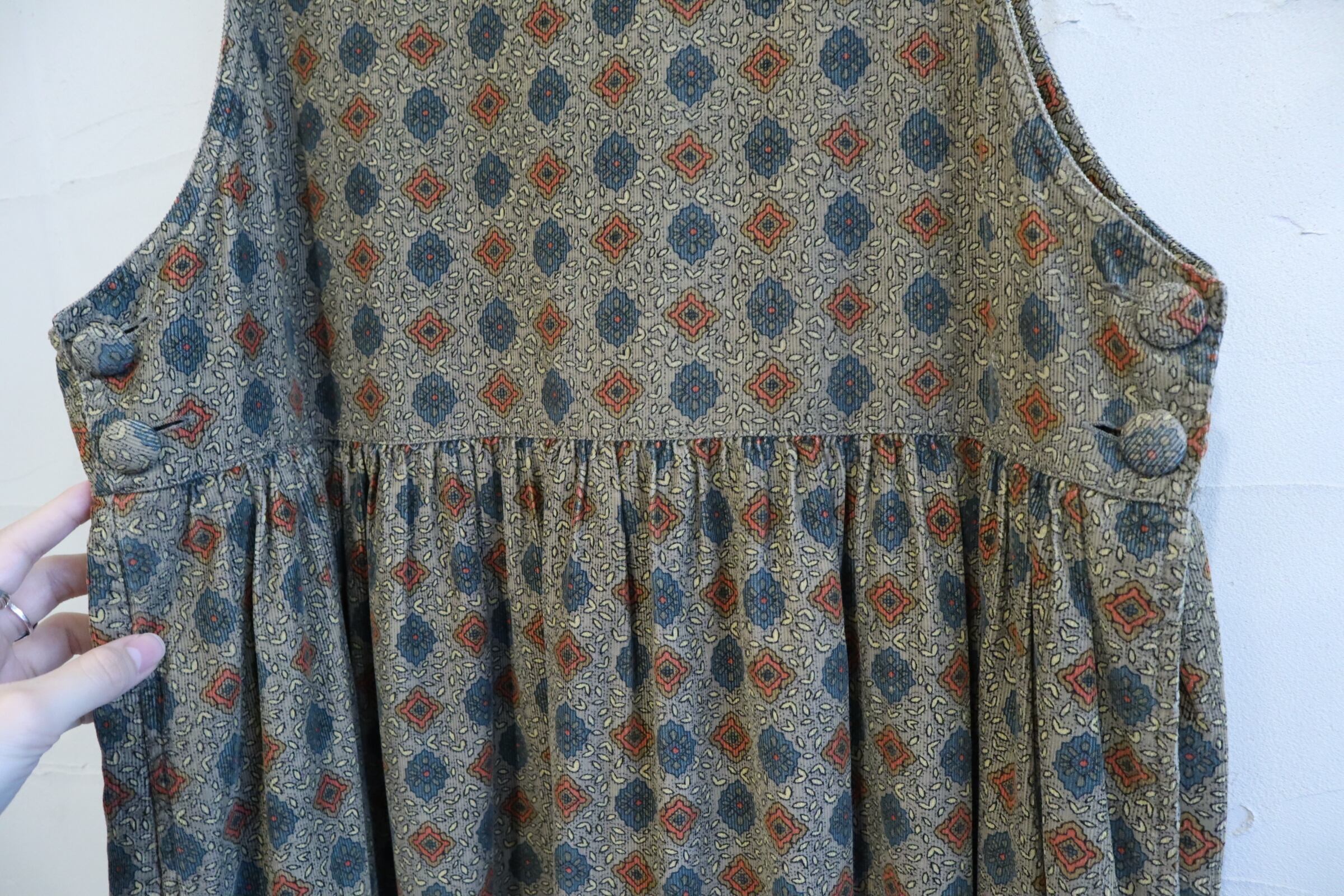 額縁のようなテキスタイルが可愛いコーデュロイオーバードレス。