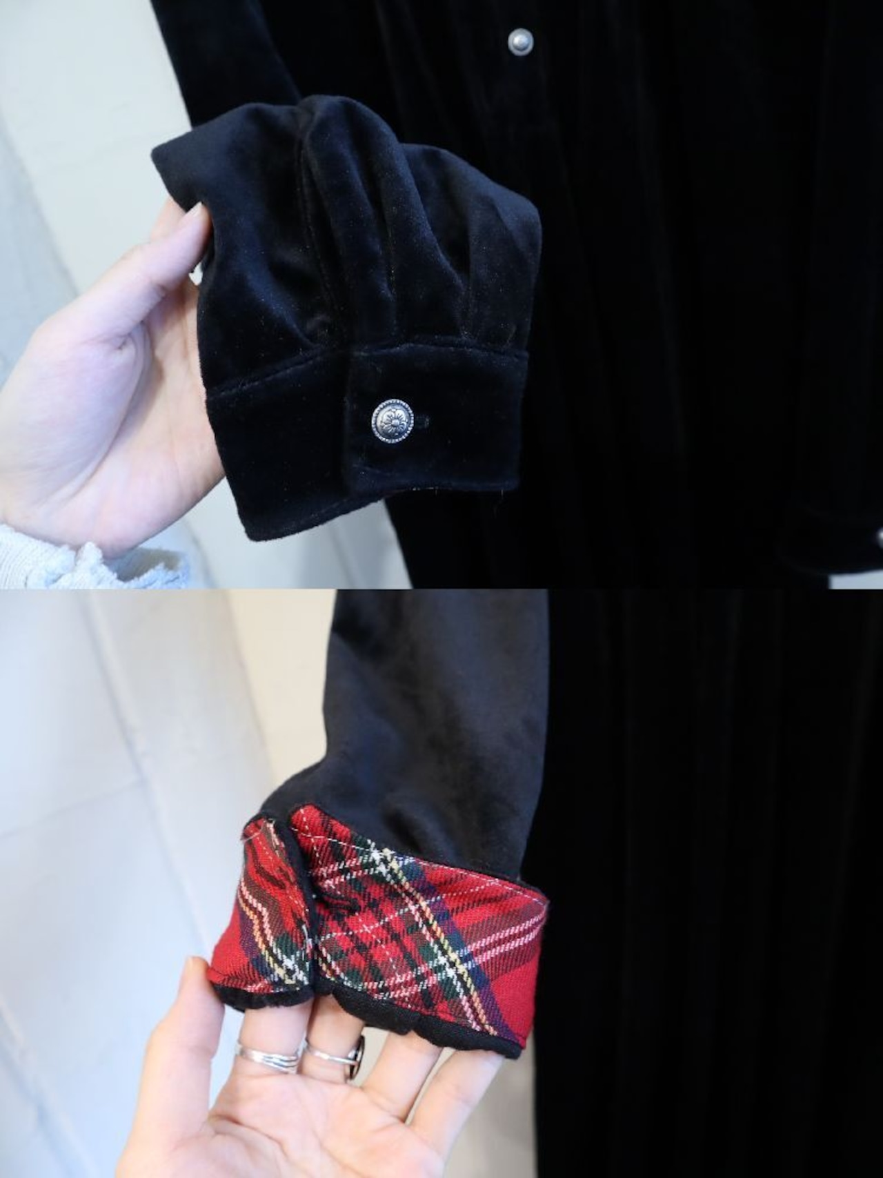袖口を折って内側のチェック柄を見せるのも可愛いポイントです♡