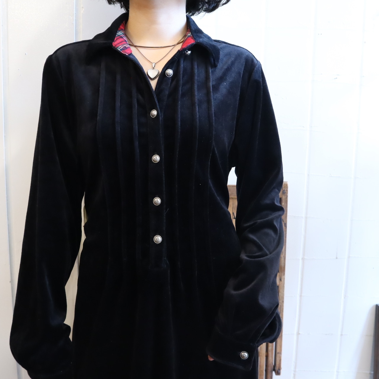 シンプルだからこそ、幅広く着回せるベロアドレス。