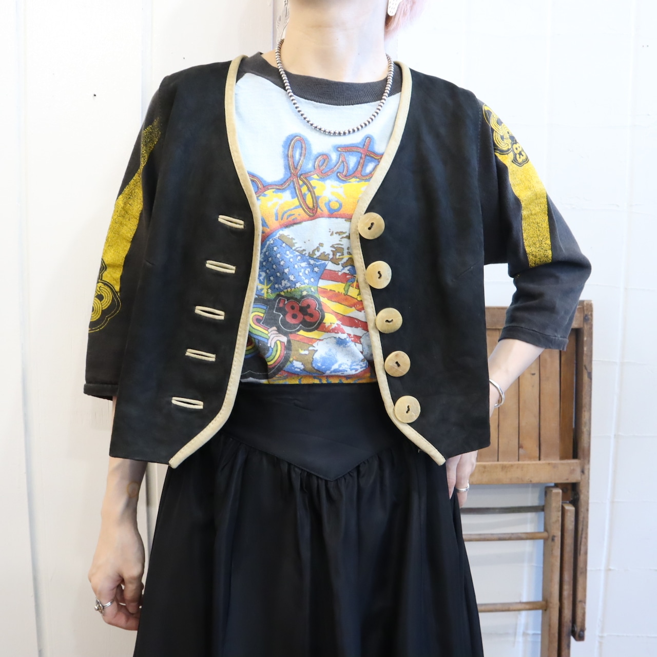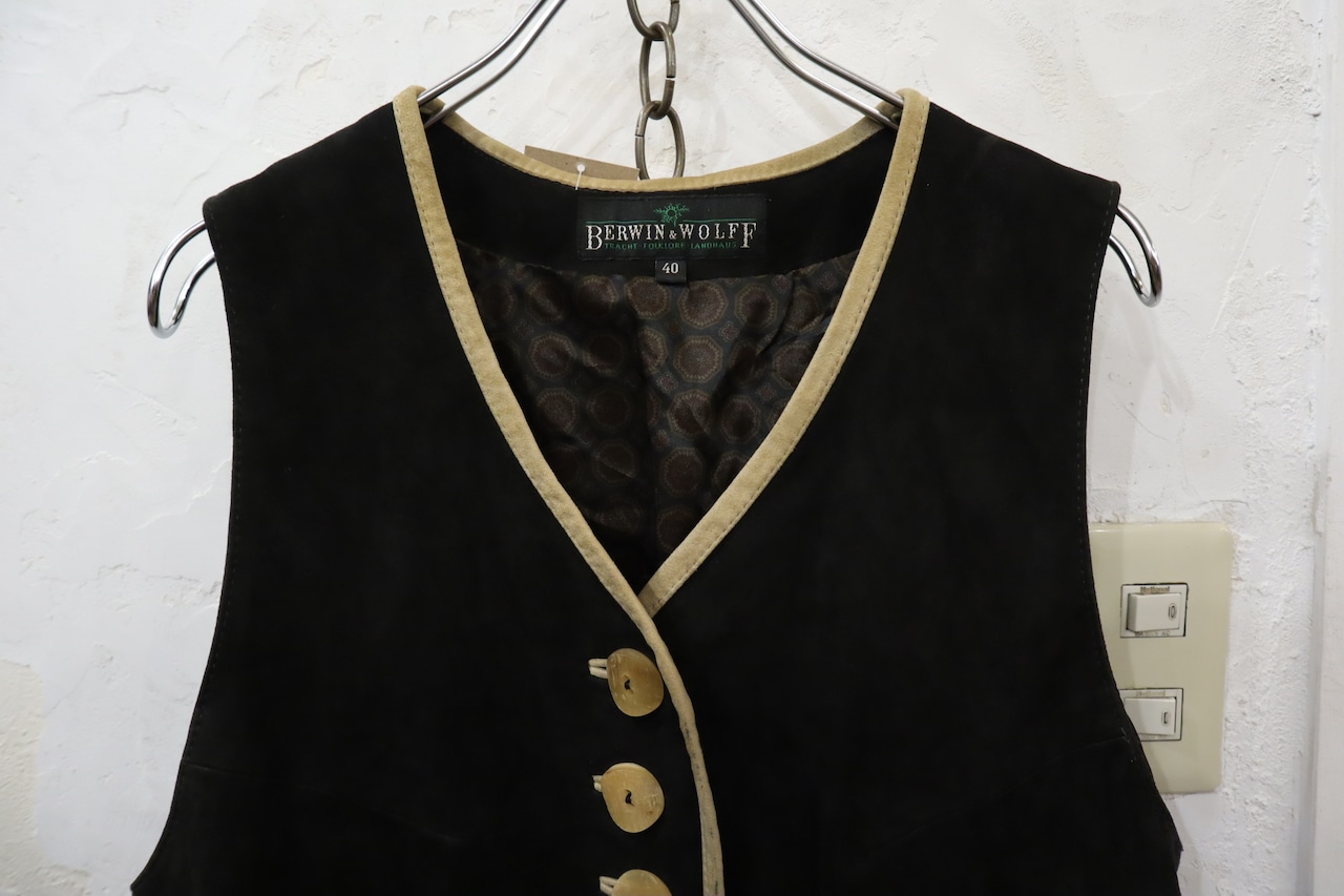 black×yellowbeige plain tyrol leather vest [l-4117]