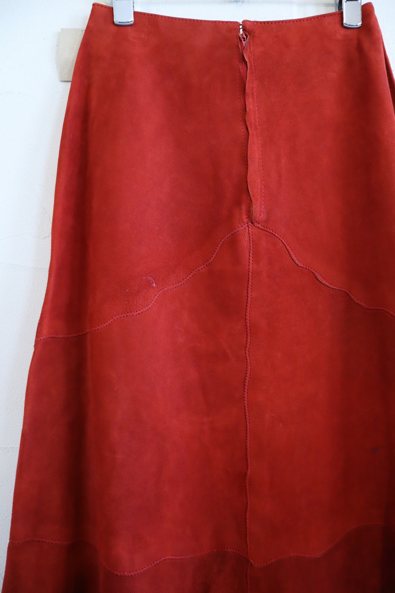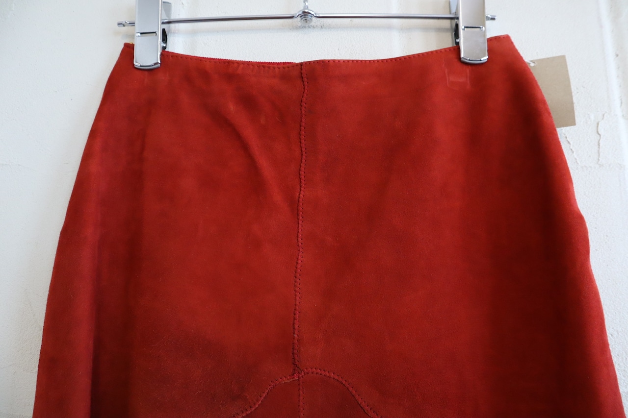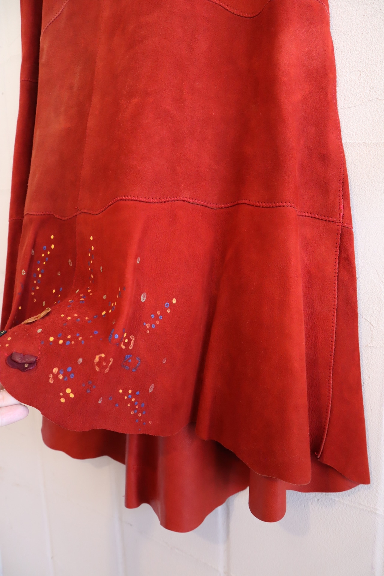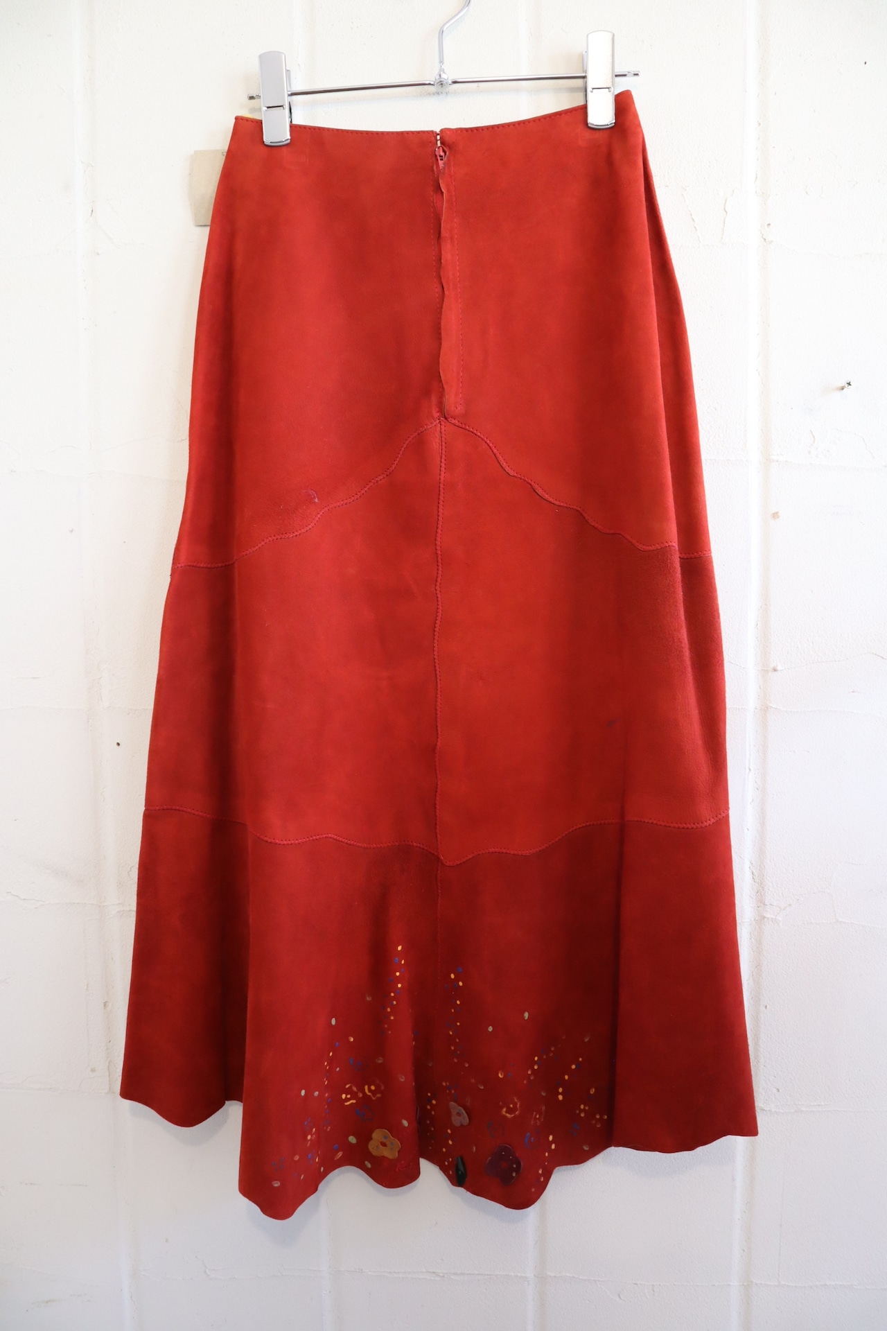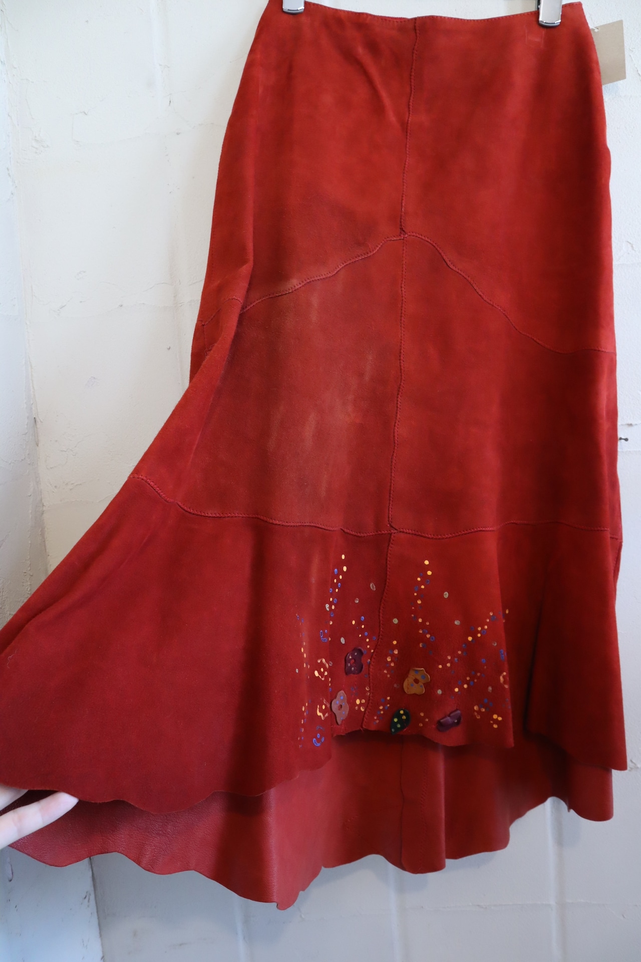 後ろがやや長くなったシルエットやさりげないペイントデザインが可愛いレザースカート*