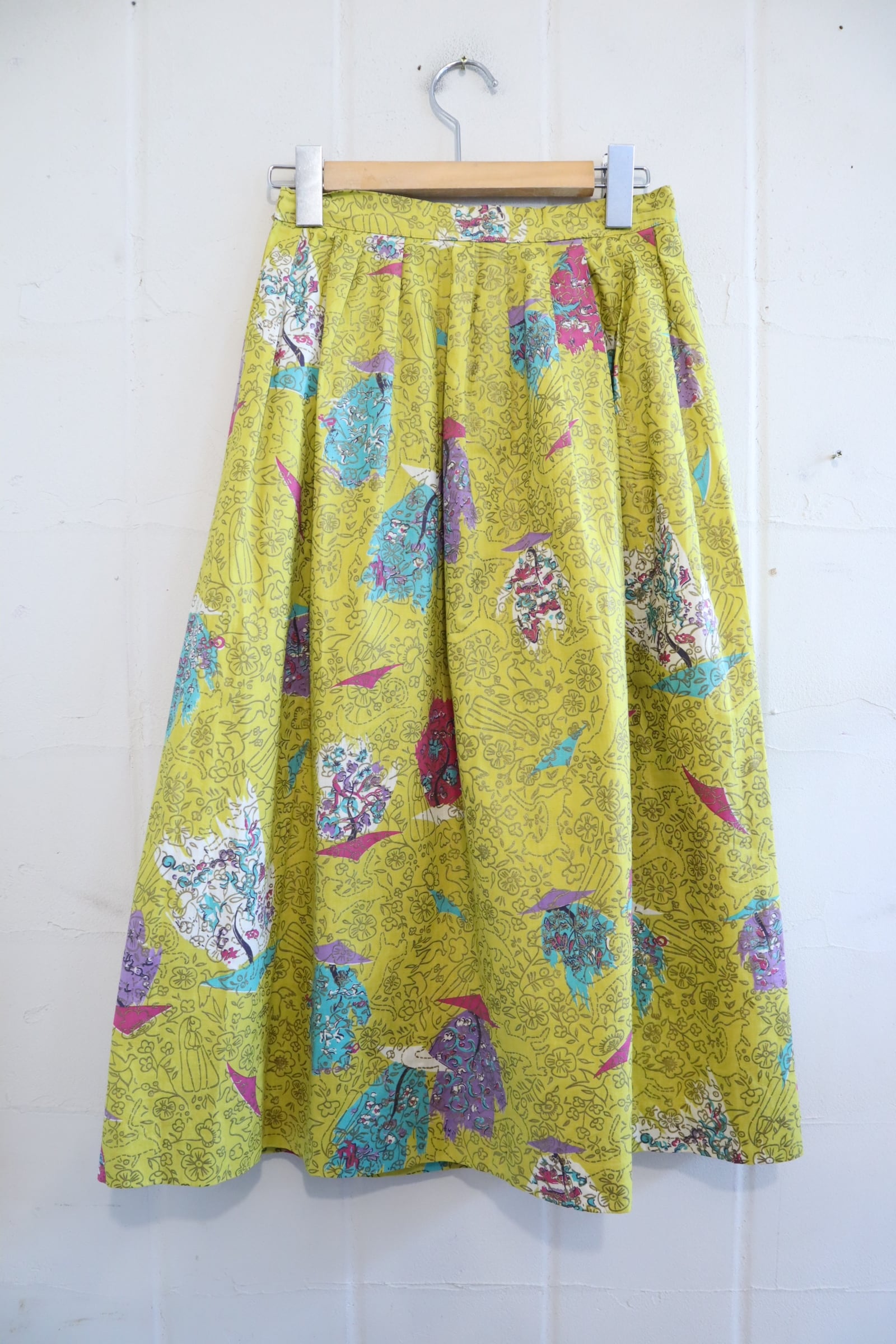 緑茶のような、黄緑味のあるイエローカラーが可愛い50-60sスカート♡