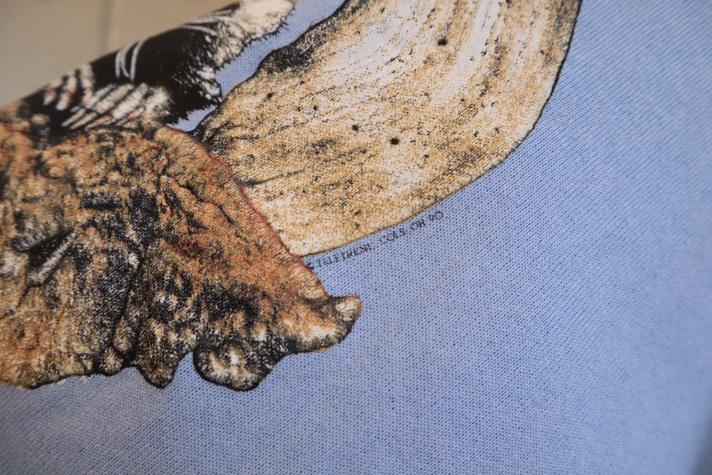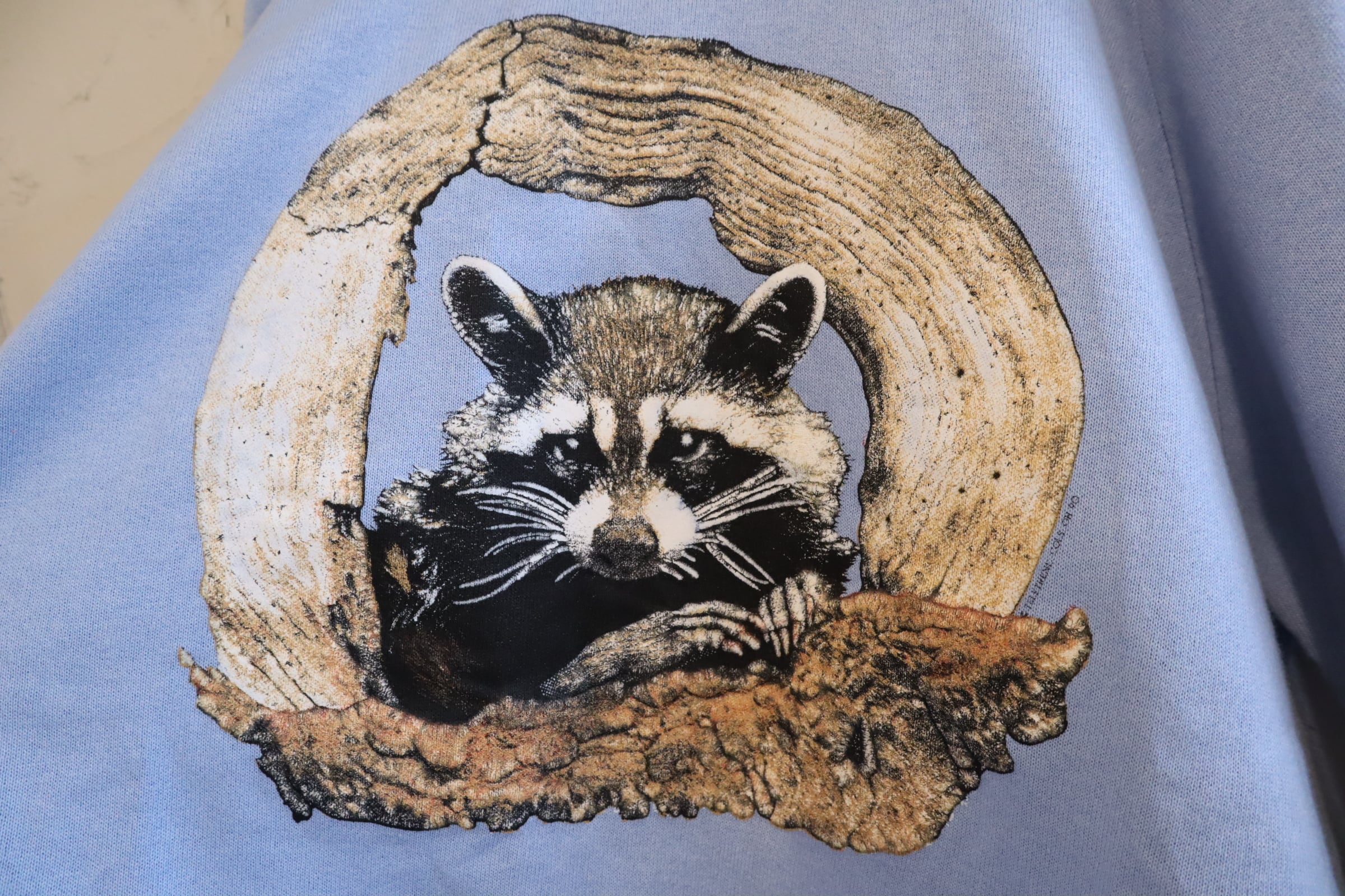 -90s lightblue×brown raccoon print sweat [l-4148]