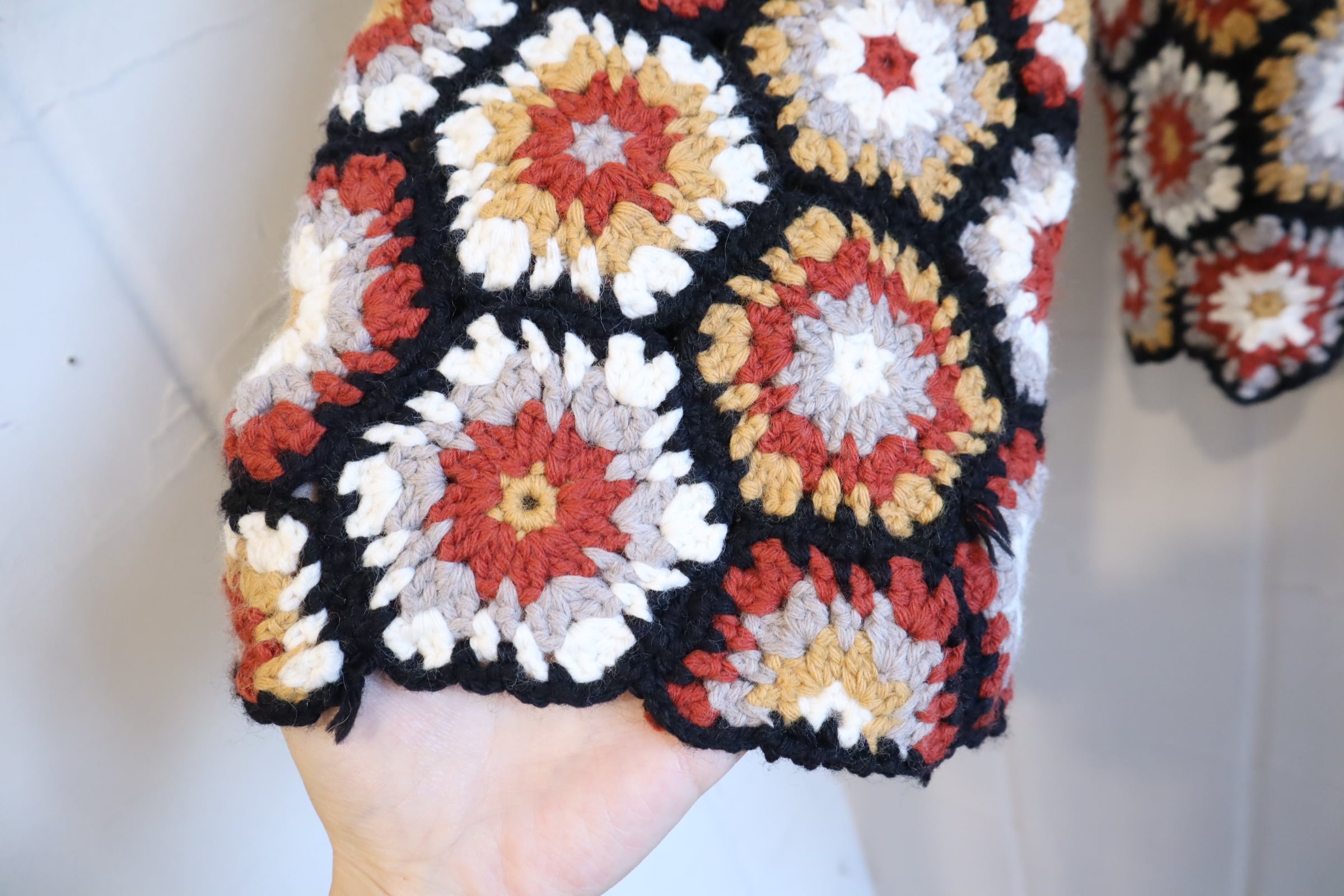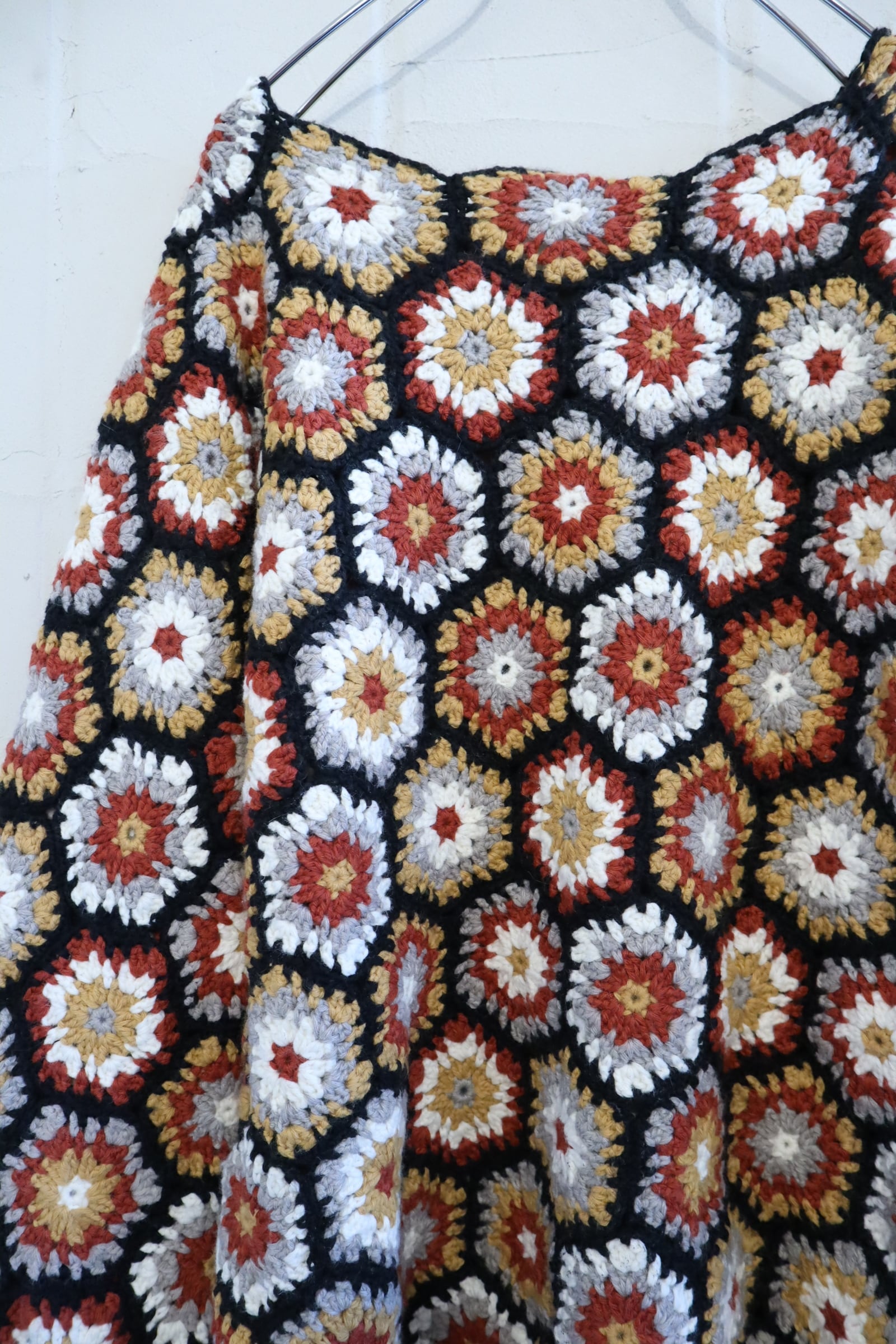 black×brickred×mustard hexagon granny knit pullover [l-4149]