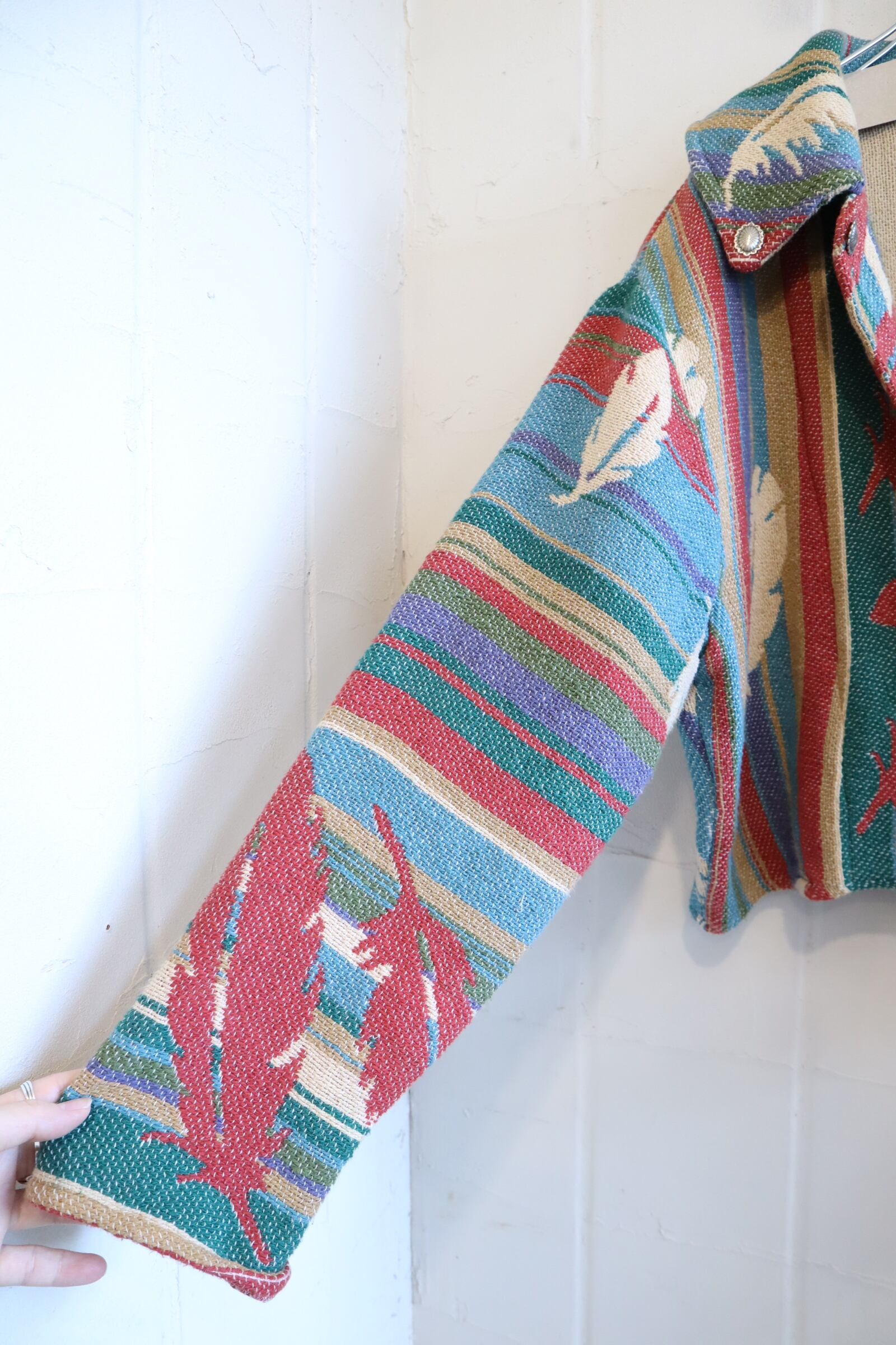 made in USA lightblue×red feather&stripe gobelin jacket [l-4156]