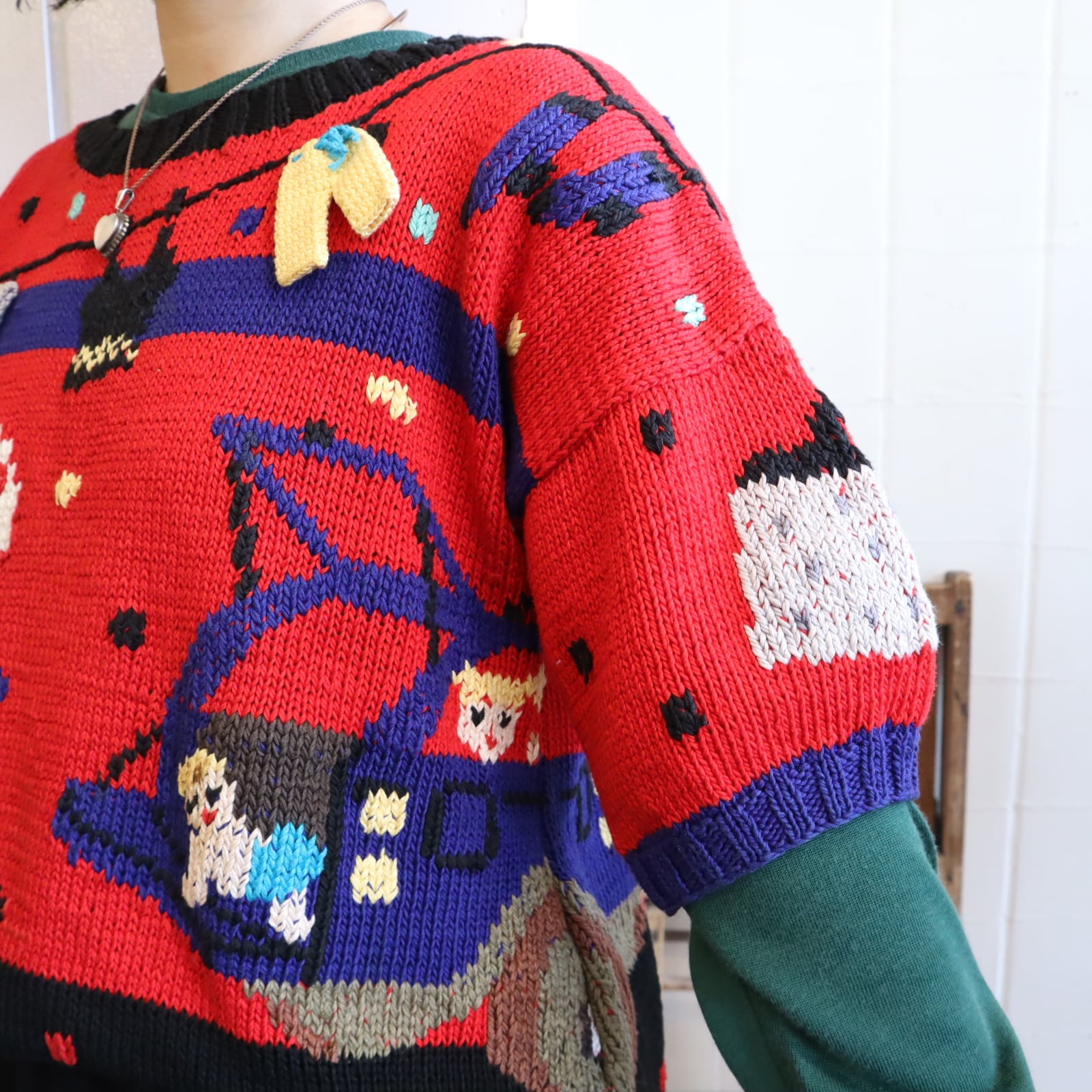 red×black×colorful design cotton knit [l-4159]