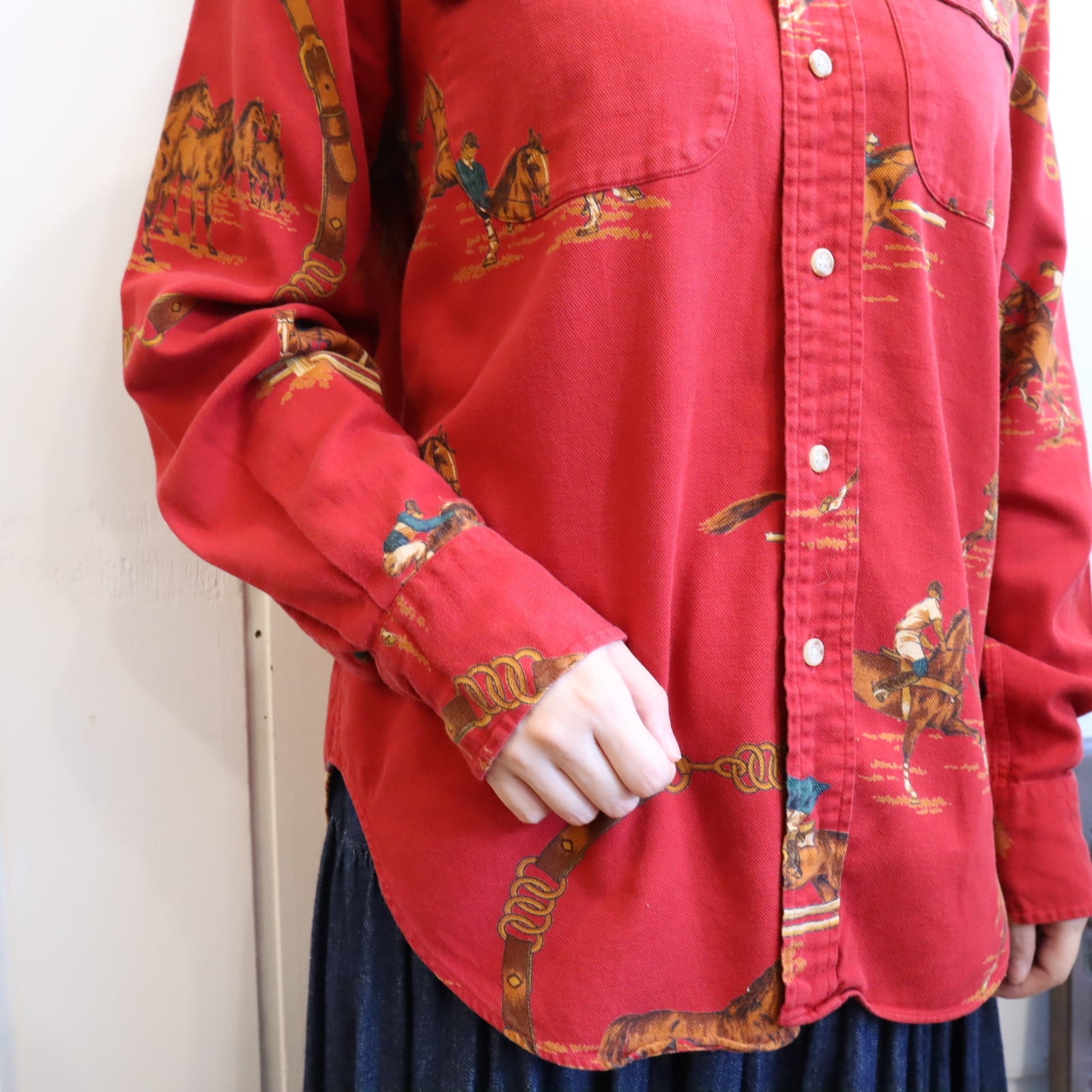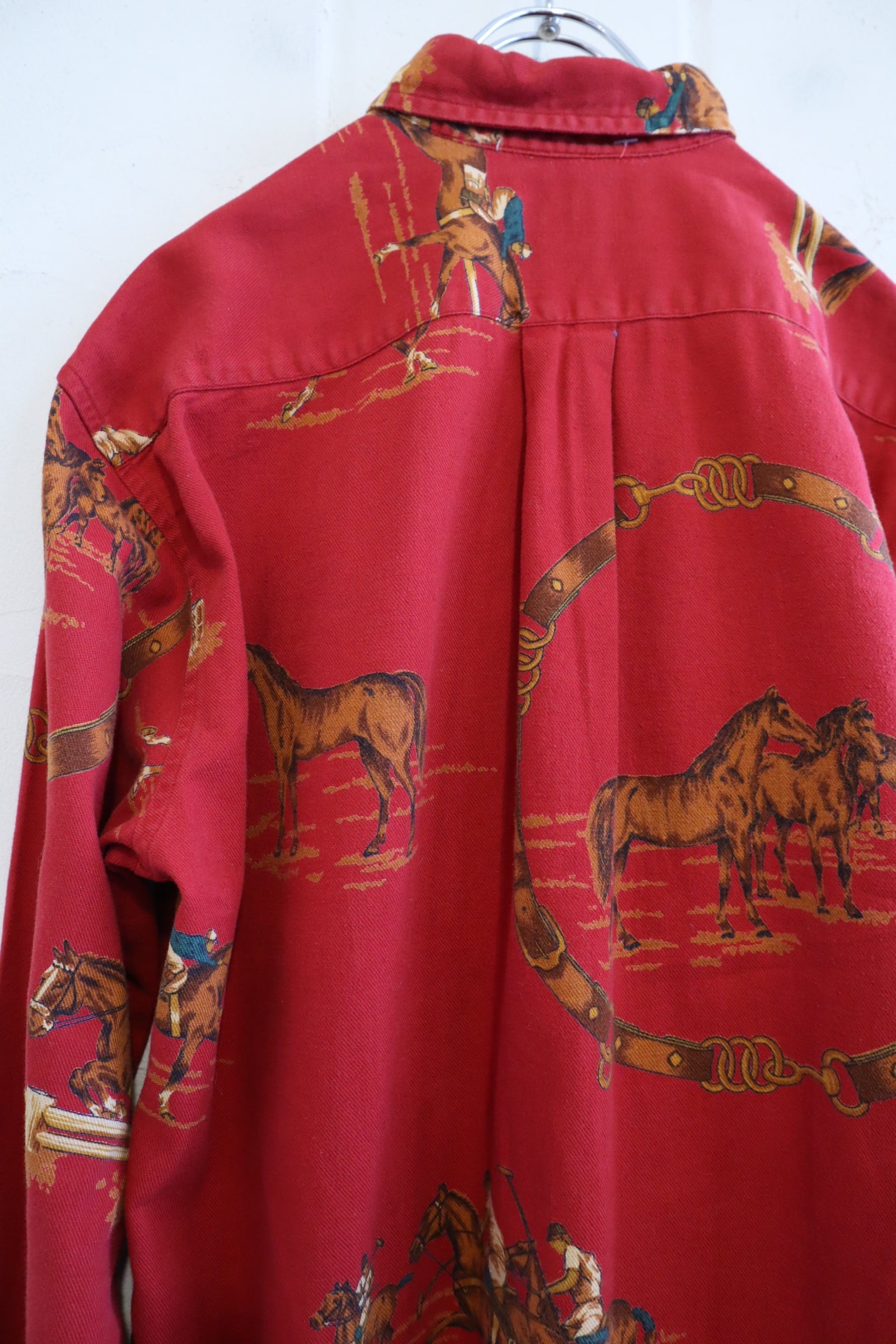 Ralph Lauren red×brown jockey pattern shirt [l-4170]